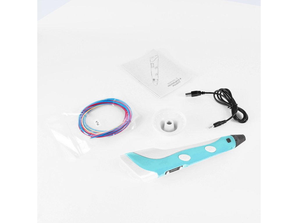 Součástí balení je 9 metrů filamenu PLA, takže můžete začít tvořit hned po rozbalení. Také získáte USB kabel pro napájení a samozřejmě samotné 3D pero.