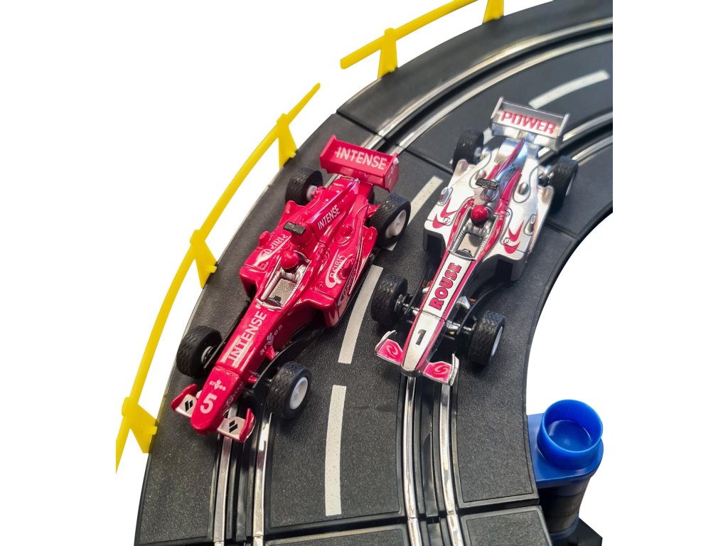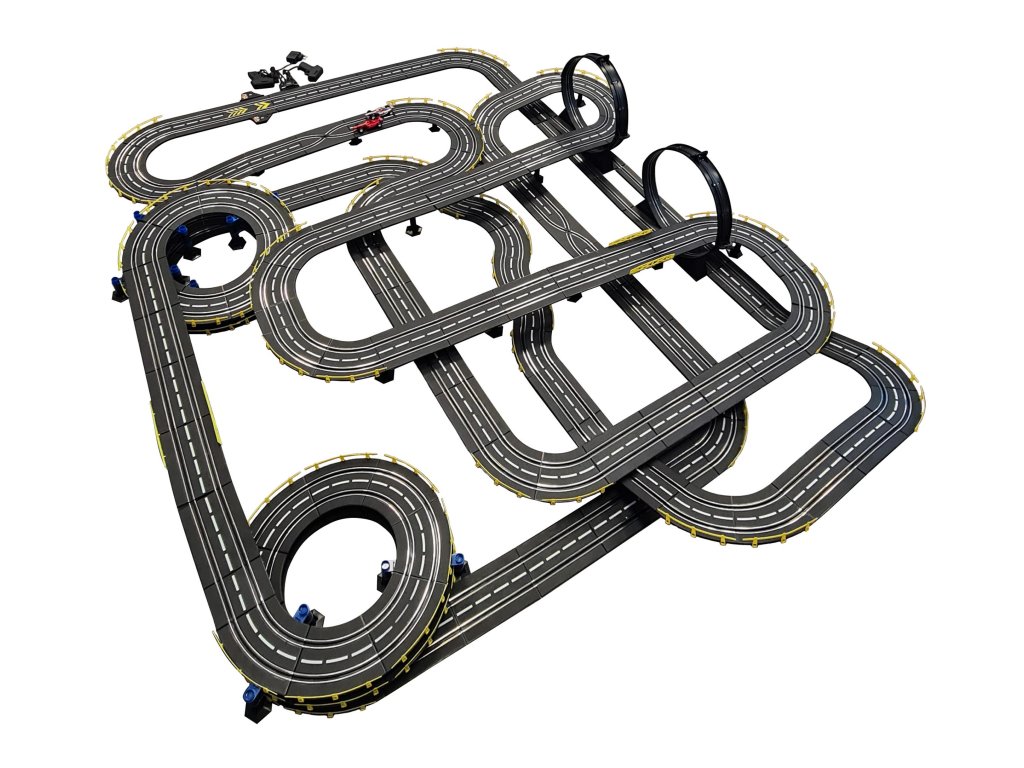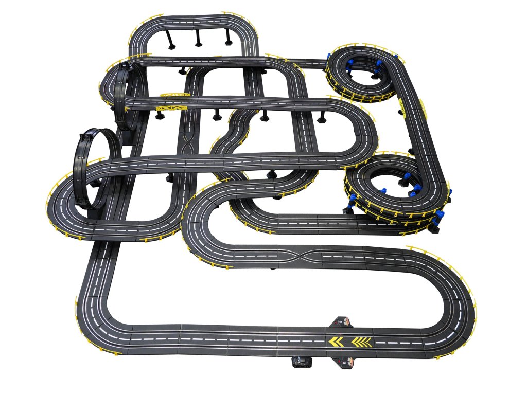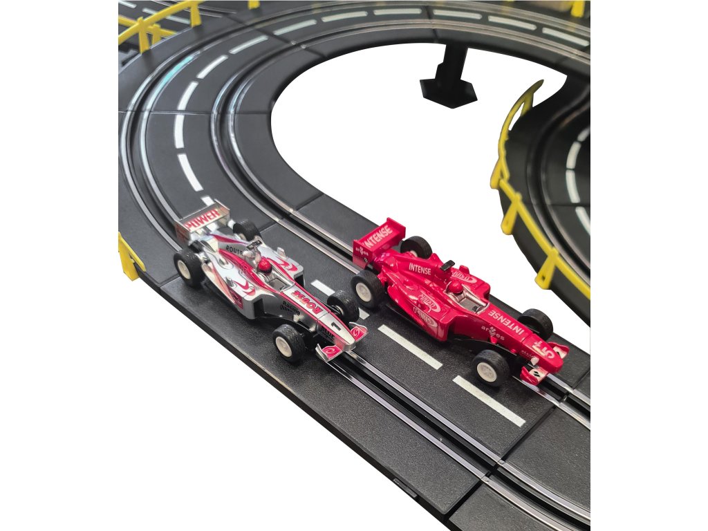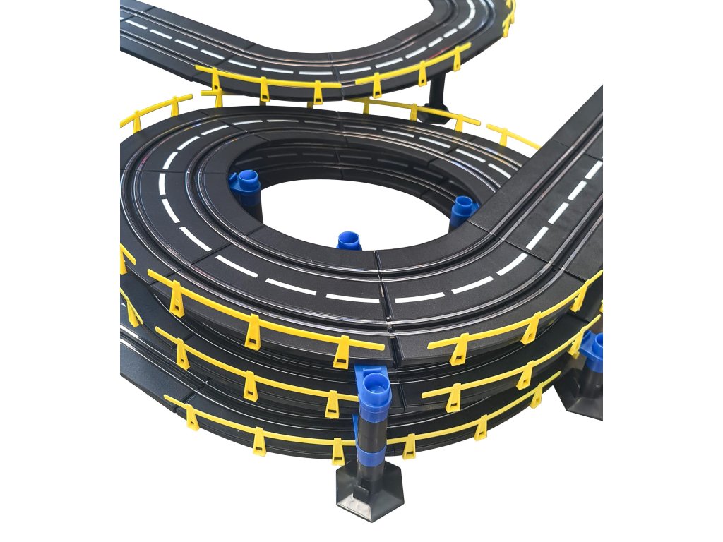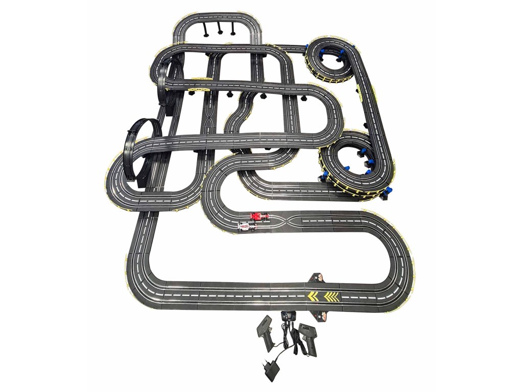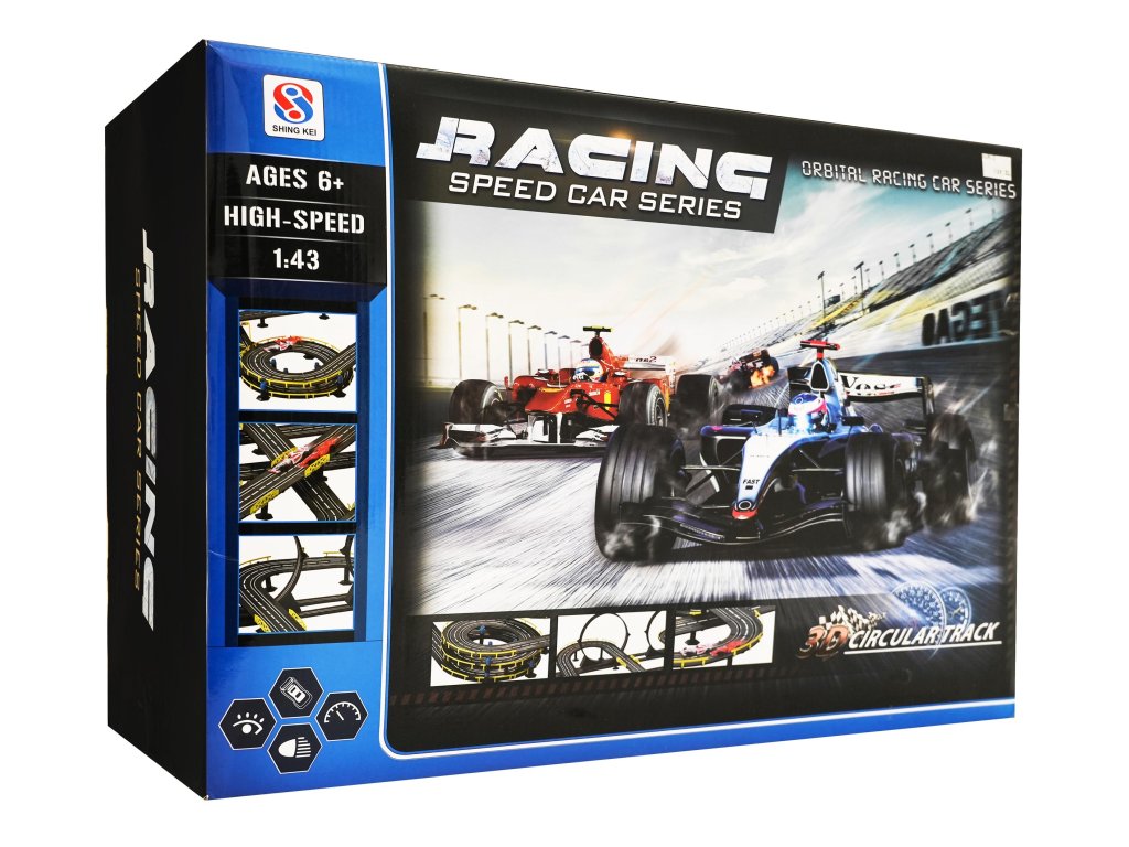 Závodní dráha Racing Speed Car 1:43 je perfektní hračka pro malé závodní nadšence. Tato gigantická dráha nabízí vzrušující zážitky se dvěma dálkově ovládanými auty, která mohou závodit současně. Dráha obsahuje různé prvky, včetně ostrých zatáček s ochrannými bariérami, dlouhých rovných úseků a dvou smyček o 360 stupňů. Díky své celkové délce 2800 cm zajišťuje hodiny nekonečné zábavy. Vysoce kvalitní materiály zajišťují pevnost a odolnost dráhy, takže zvládne i ty nejdivočejší závody. Ovládání je snadné díky dvěma samostatným dálkovým ovladačům, které umožňují měnit směr a rychlost každého vozu. Tento závodní set je ideální volbou pro děti od 6 let a poskytuje zábavu jak při hře samotné, tak i při sestavování dráhy. Sada obsahuje všechny potřebné prvky pro stavbu dráhy, dvě závodní auta s gumovými pneumatikami a dálkové ovladače.