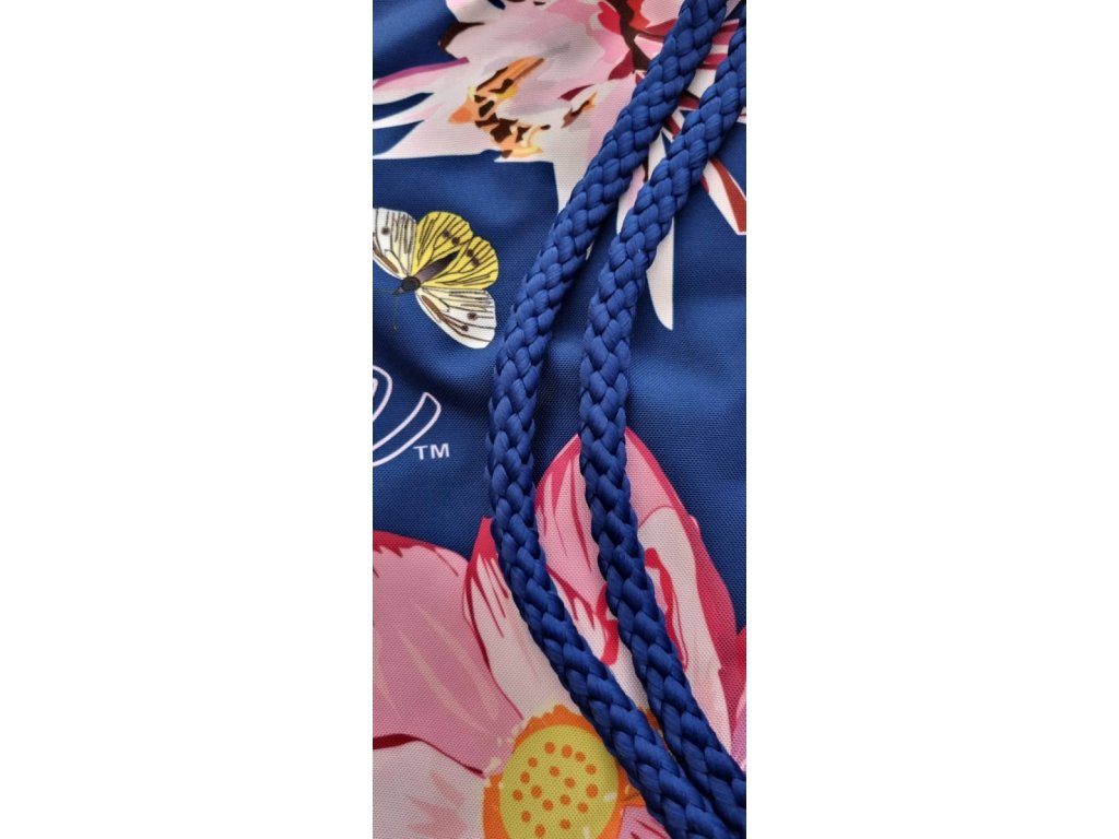 Tlusté, spletené stahovací šňůrky umožňují nošení tašky na zádech nebo přes rameno.