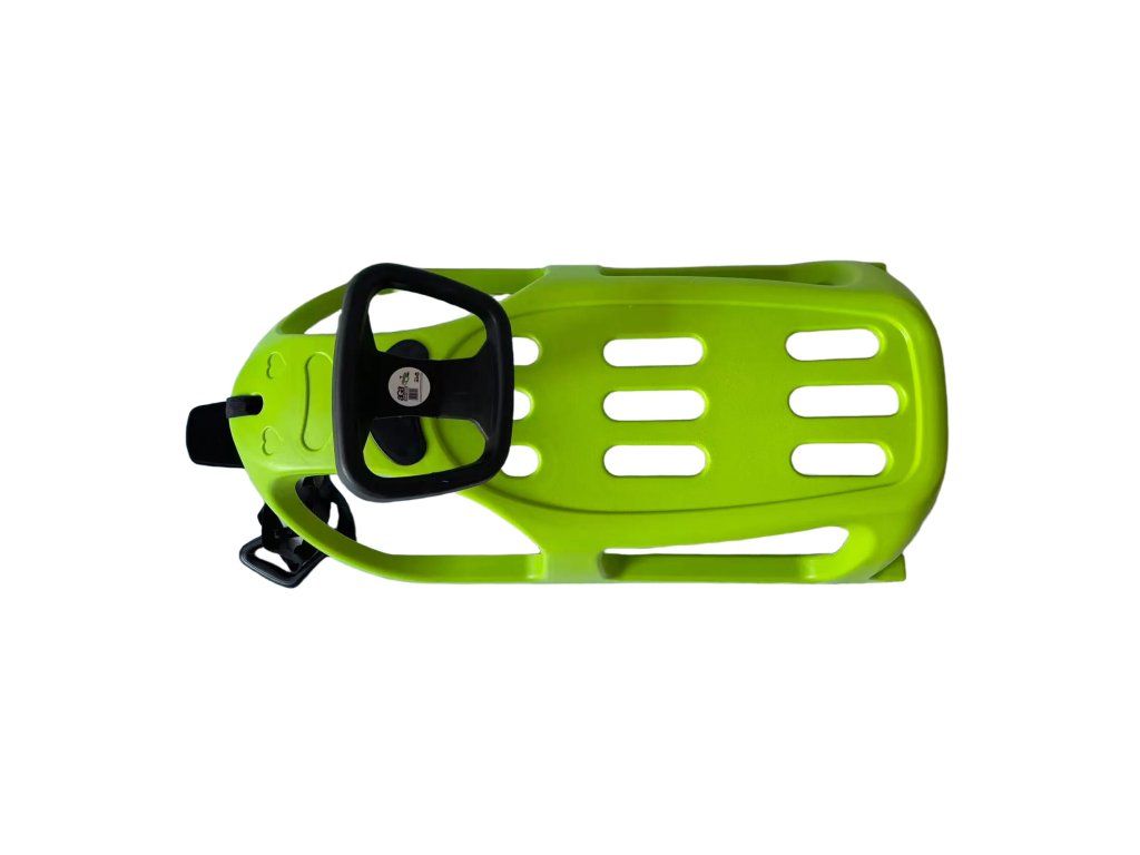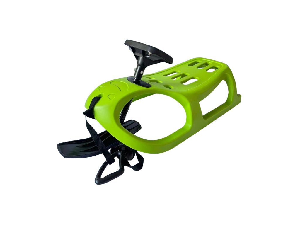 Sáně jsou vyrobené z vysoce odolného plastu a opatřené ocelovými skluznicemi, které zajišťují perfektní skluz po sněhu. Sáňky se jednoduše ovládají díky střední vodící lyžině která, je ovládatelná volantem.