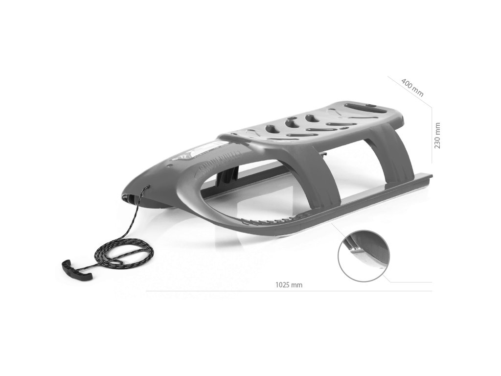 Sáně jsou vyrobené z vysoce odolného plastu a opatřené ocelovými skluznicemi, které zajišťují perfektní skluz po sněhu.