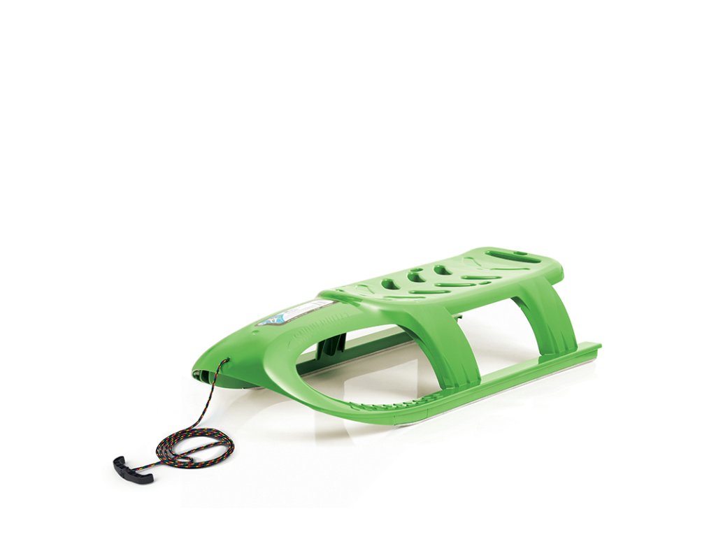 Sáně jsou vyrobené z vysoce odolného plastu a opatřené ocelovými skluznicemi, které zajišťují perfektní skluz po sněhu.