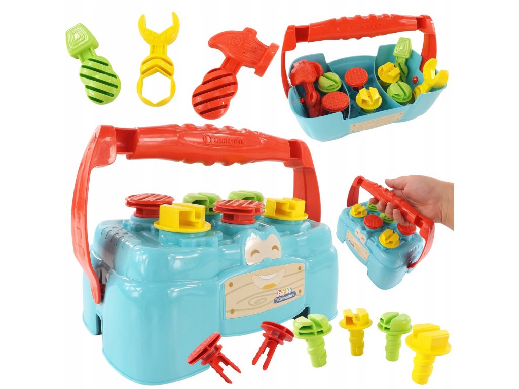 Stolík se sadou nářadí pro malé nadšence, pro malé kutily. Senzační sada nářadí s rukojetí. Dokonale reprodukované nástroje a jejich funkce seznámí Vaše dítě se světem kutilství. Pomůže tátovi v dílně a s jednoduchými domácími pracemi. Hračka učí logické myšlení, zásady fungování nástrojů, rozvíjí manuální dovednosti a motorickou koordinaci, a co je nejdůležitější, rozvíjí představivost. Všechny nástroje jsou velké, což také umožní Vašemu dítěti citit se jako oparvdový kutil. Koneckonců, všechny nástroje mohou být hozeny do stolíku a udržují pořádek. Stolík má rukojeť pro pohodlné přenášení z místa na místo. 3 nástroje se 6 doplňky pro zábavu, pro zlepšení koordinace, logického myšlení a obratnosti. Stolík se změní na krabici na nářadí a příslušenství s praktickou rukojetí, díky níž si ho dítě může vzít kamkoliv.
