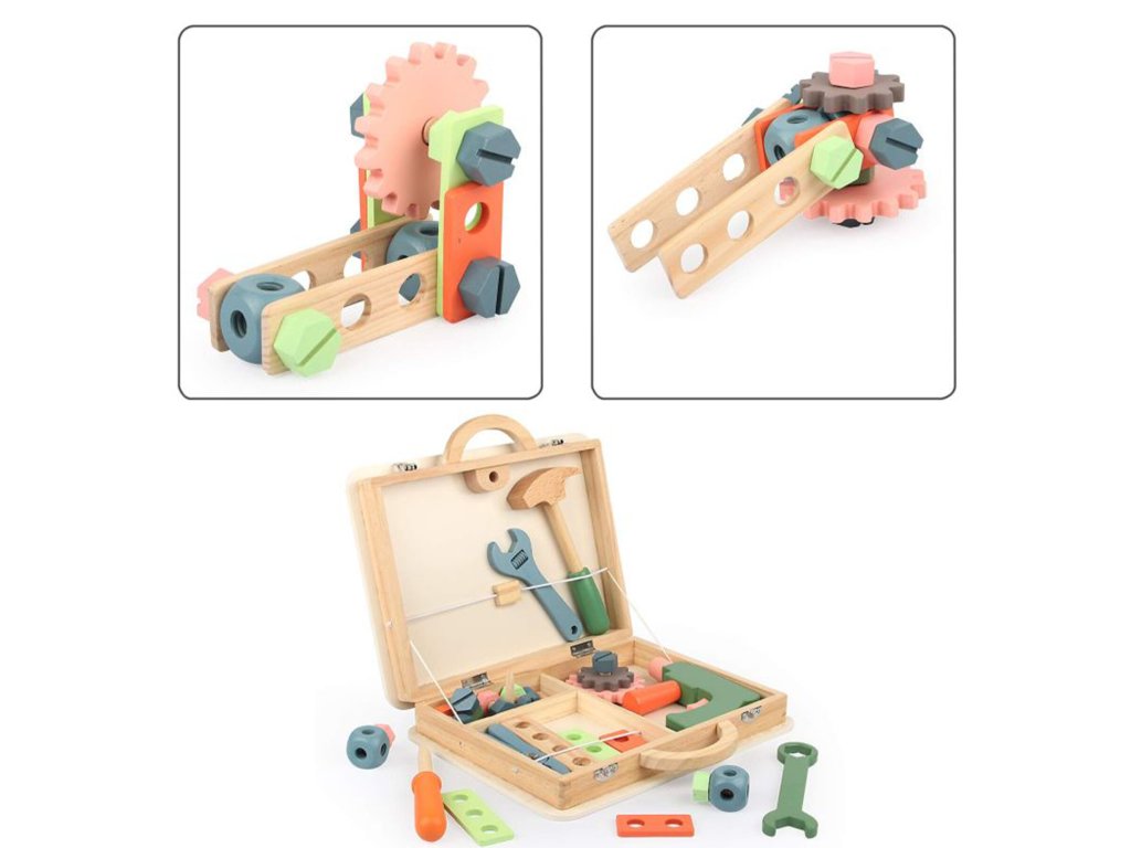 Dřevěný kufřík s nářadím je navržen tak, aby podporoval rozvoj manuálních dovedností a fantazie dětí. Díky různorodosti nástrojů a komponentů mohou děti experimentovat s různými způsoby, jak je použít, a vytvářet tak vlastní projekty. Tento proces nejenže rozvíjí jejich kreativitu, ale také je učí trpělivosti a soustředění.