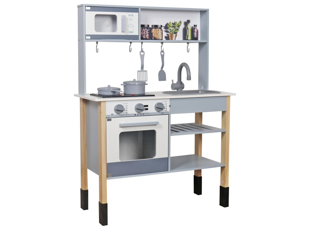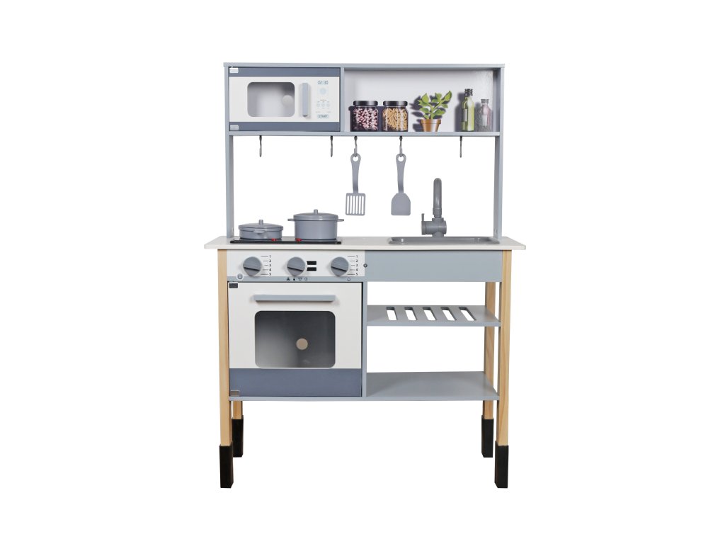 Kuchyňka dokonale napodobuje vaření ve skutečné kuchyni. Předtím, než svého prcka necháte pomáhat ve skutečné kuchyni, naučte jej základy s touto dřevěnou kuchyňkou.