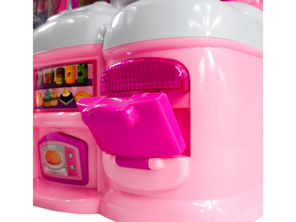 Tento model dětské kuchyňky je vybaven funkčními prvky a doplňky.