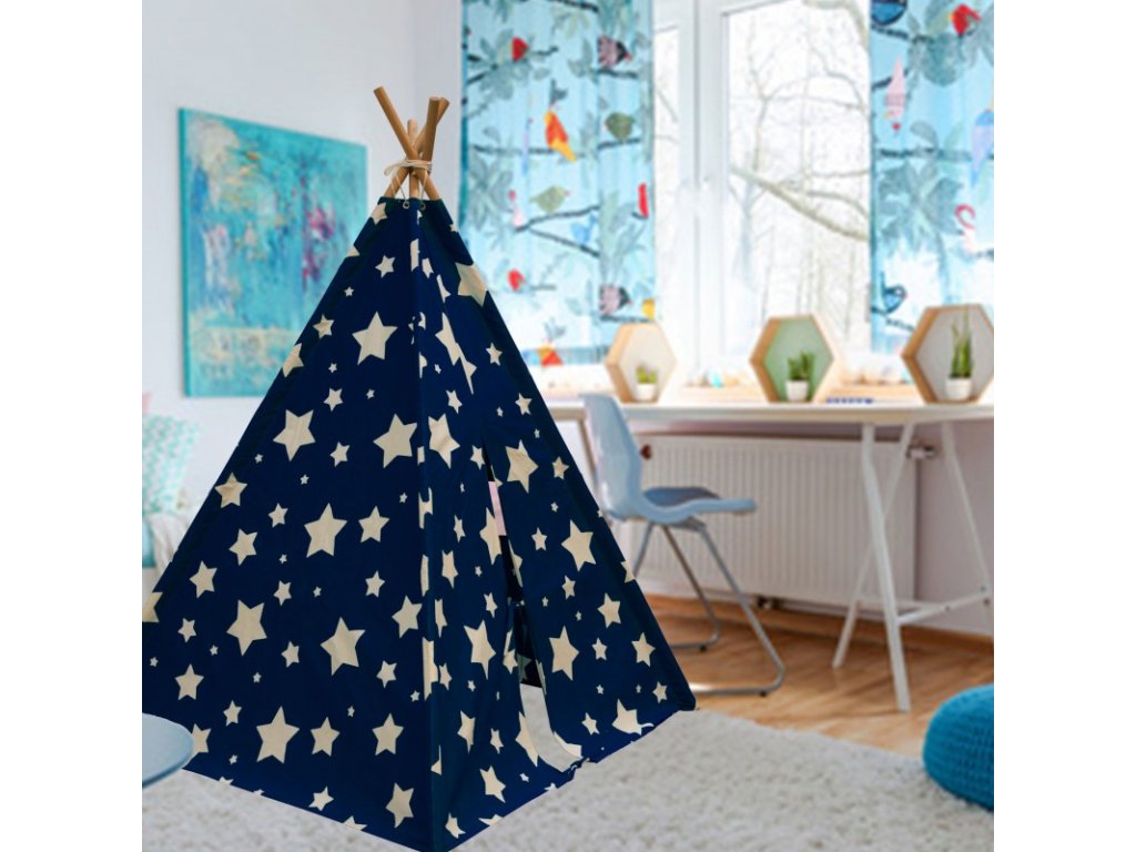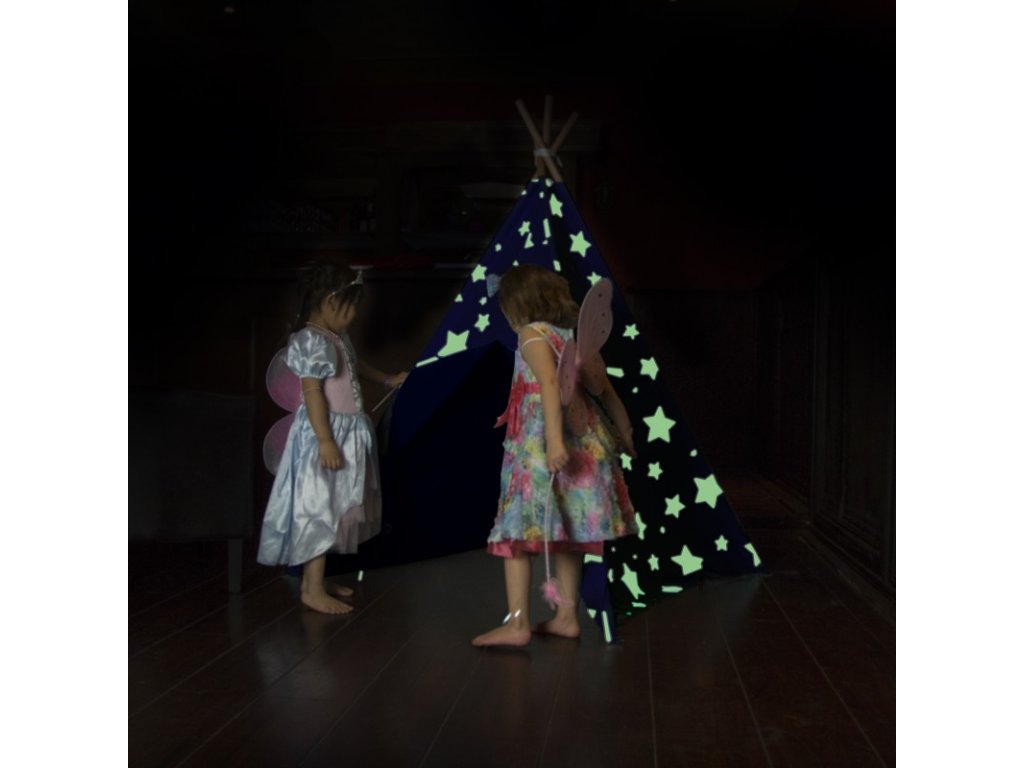 Fosforové hvězdy vytvoří v teepee noční oblohu, kterou si vaše děti rychle oblíbí. Tento stan poskytne dětem útulný koutek pro jejich hraní.