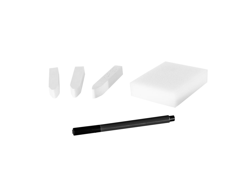 - Sada obsahuje - otočnou tabuli, 3 bílé křídy, 1 fix, a houbu