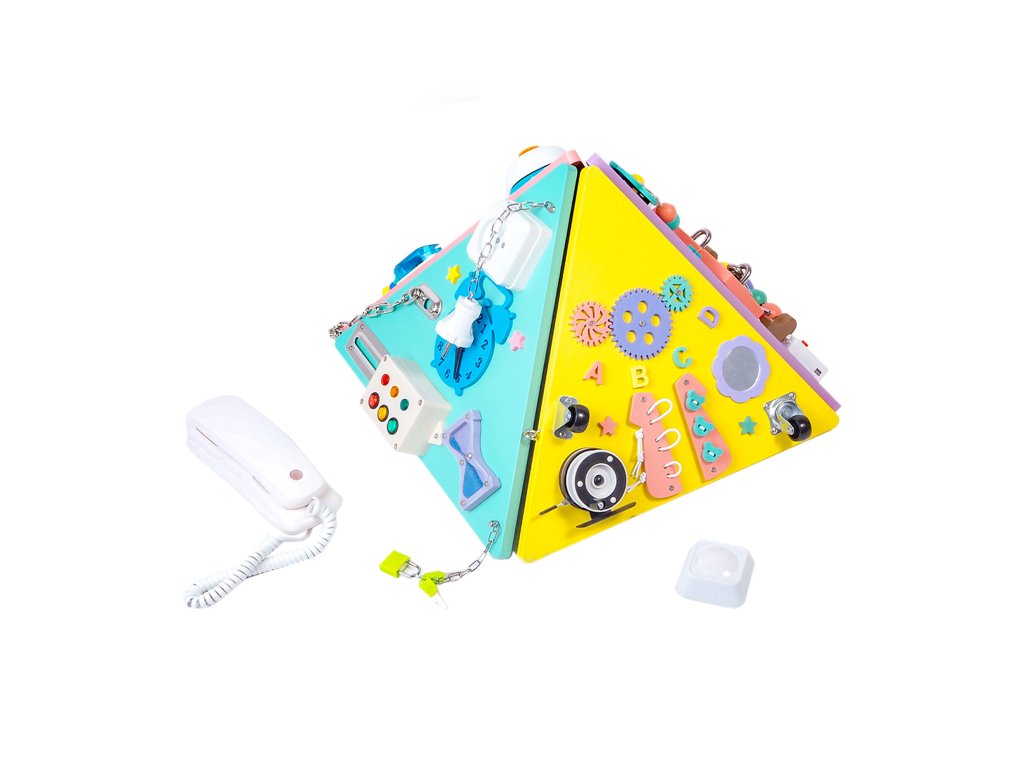 Chlapci i dívky si vyzkouší svoji šikovnost při různých didaktických hrách, které nabízí každá stěna pyramidy. Těšit se mohou na zrcátko, přesýpací hodiny, točící ozubené kolečka, botičku s tkaničkami, ručičkové hodinky, fidget spinner, zip, spínače, knoflíky a mnoho dalšího.