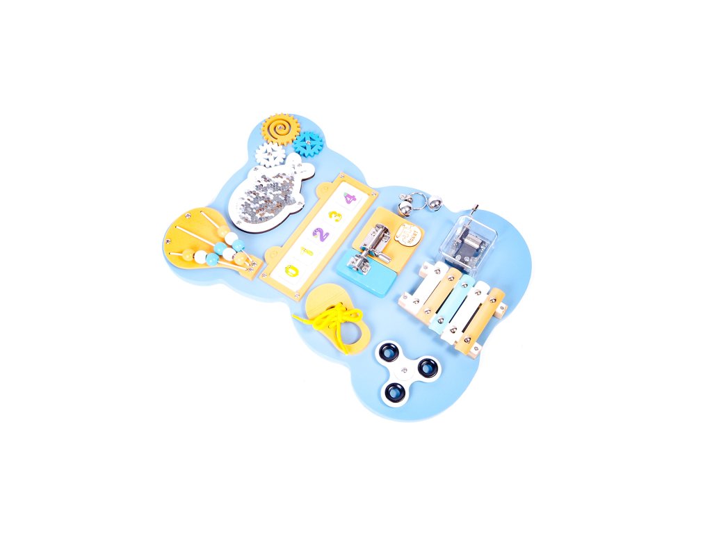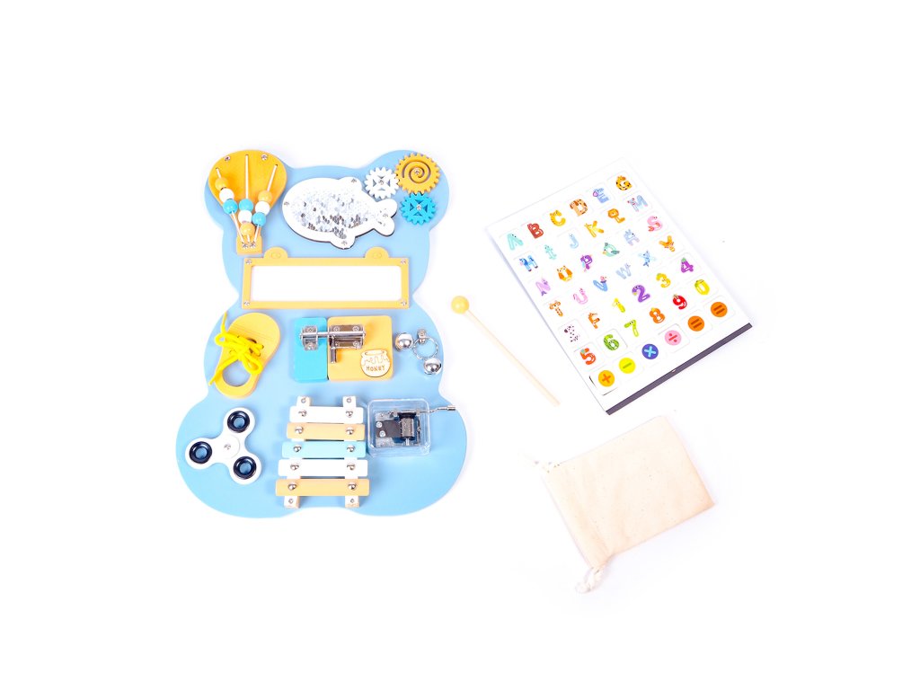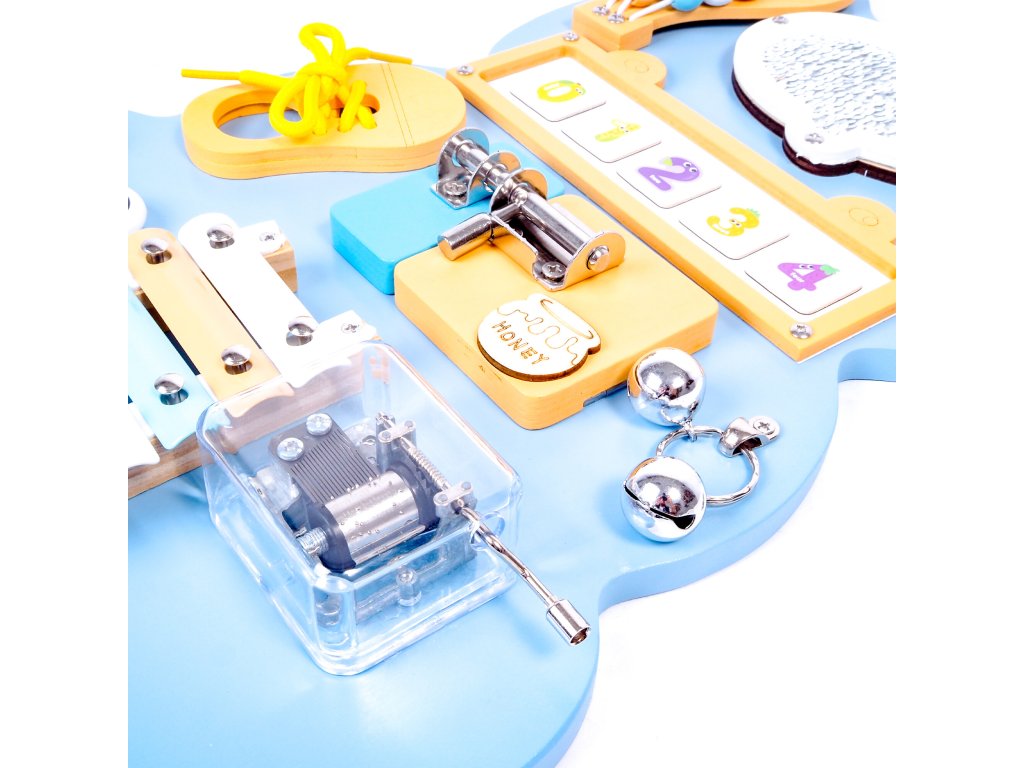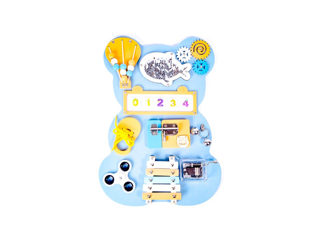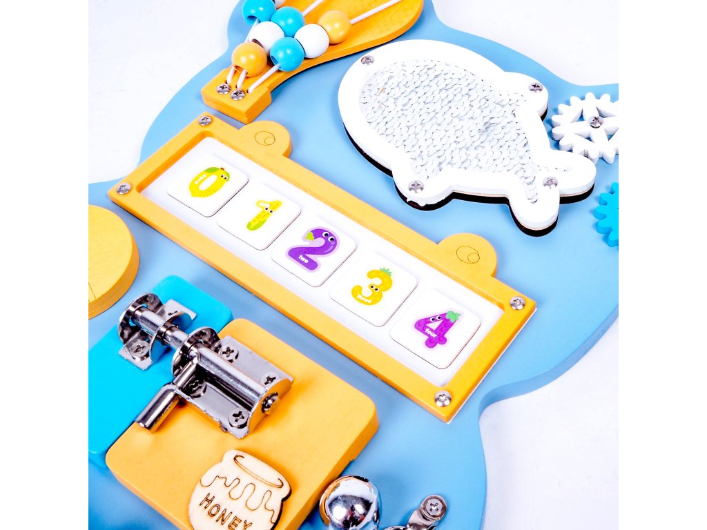 Edukační deska pro děti ve tvaru medvídka je skvělý způsob kde se děti přirozenou cestou pomocí hry vzdělávají, rozvíjejí dovednosti, tvořivost, kreativitu, logické myšlení, trpělivost a jemnou motoriku.