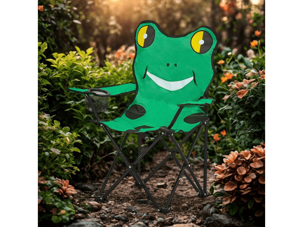 Skládací křesílko s dětským motivem si vaše děti zamilují. Je vyrobené z kovové rozkládací konstrukce s polyesterovým potahem ve tvaru zvířátka.