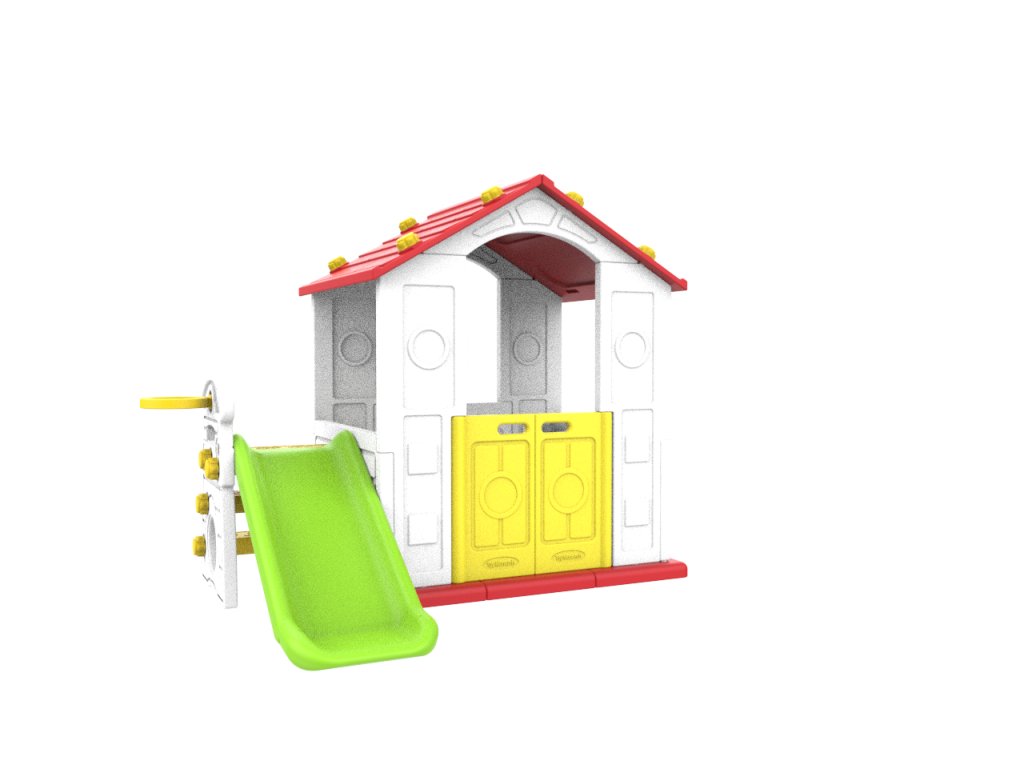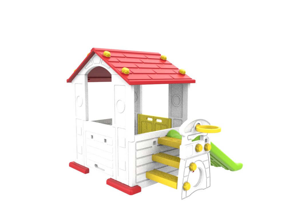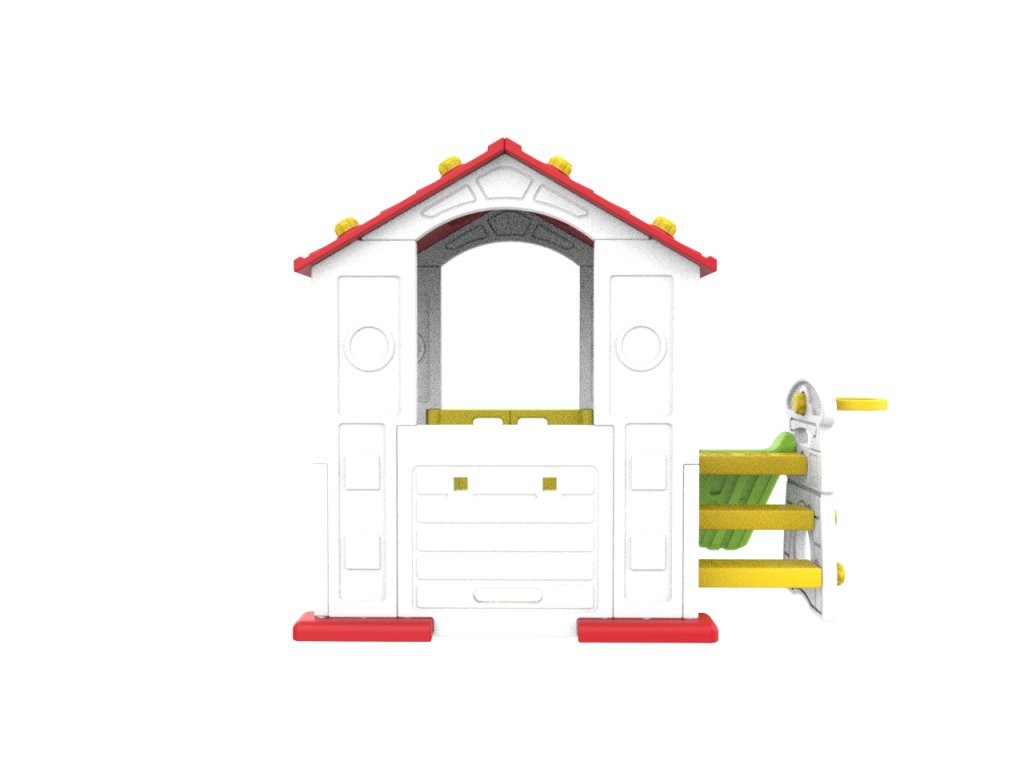 Prvky dětského domečku jsou vyrobeny z vysoce kvalitního materiálu HDPE. Všechny stěny a komponenty jsou vyrobeny z dvojité vrstvy plastu. To navíc umožňuje vyplnit stěny pískem nebo kamenivem, což zajišťuje stabilitu konstrukce. Velké komponenty usnadňují montáž.