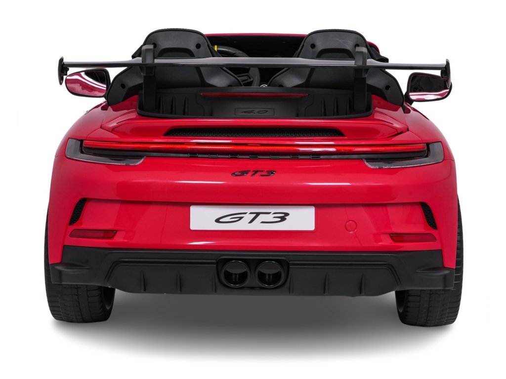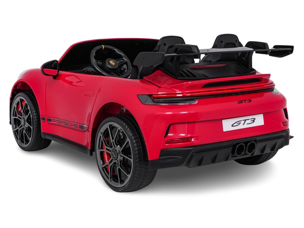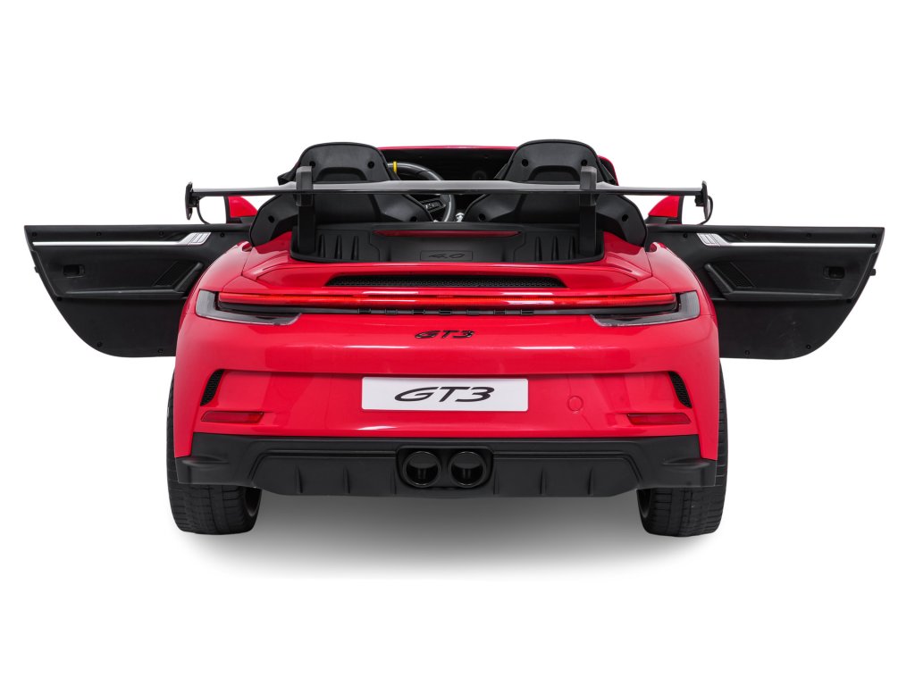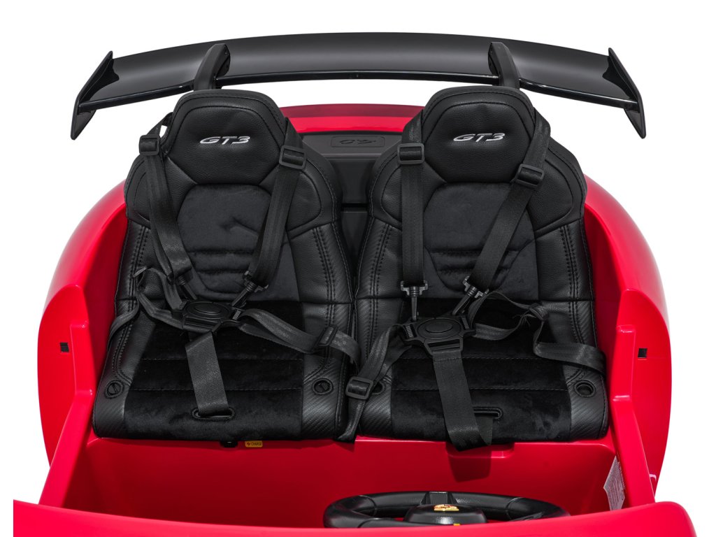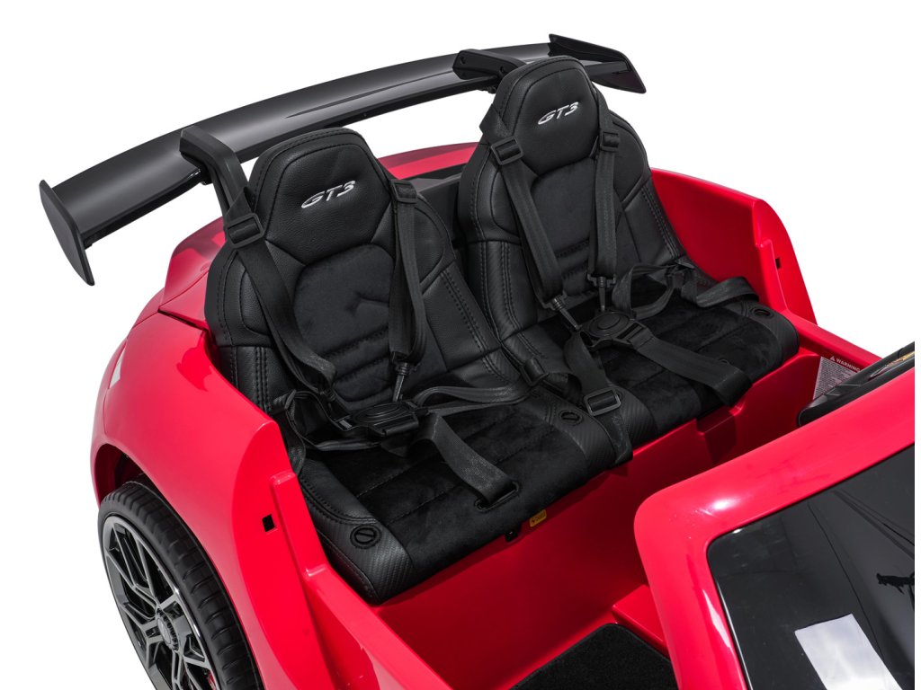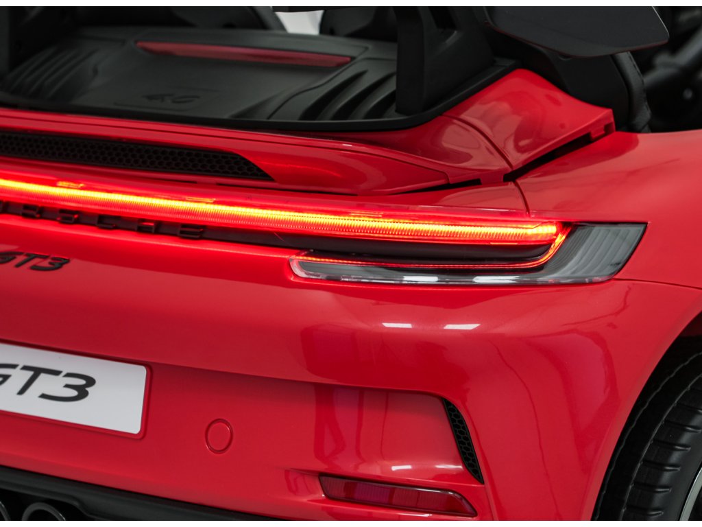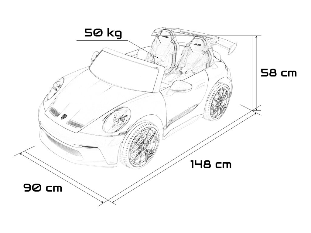 Dětské elektrické autíčko Porsche 911 GT3 je vybaveno motorem o výkonu 4x200W a baterií 24V10Ah. Pohodlnou jízdu Vám zajistí pěnová EVA kola a sedadlo z ekokůže se sametovou úpravou. Autíčko je dále vybaveno dálkovým ovládáním se 3 rychlostmi a bezpečnostním tlačítkem pro zastavení. Přední a zadní LED světla zajistí, že autíčko bude vidět i za šera. Pokud během jízdy rádi posloucháte hudbu, můžete si pustit FM rádio, MP3, hudbu přes Bluetooth nebo USB. Maximální zatížení autíčka je 50kg.