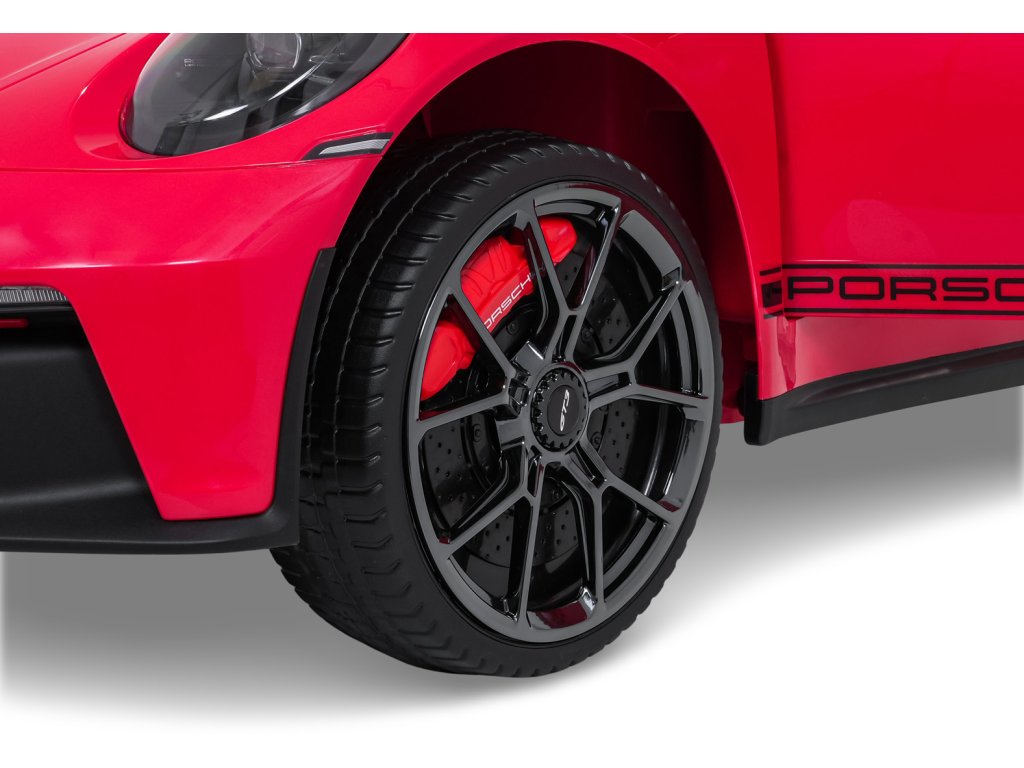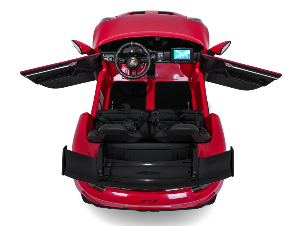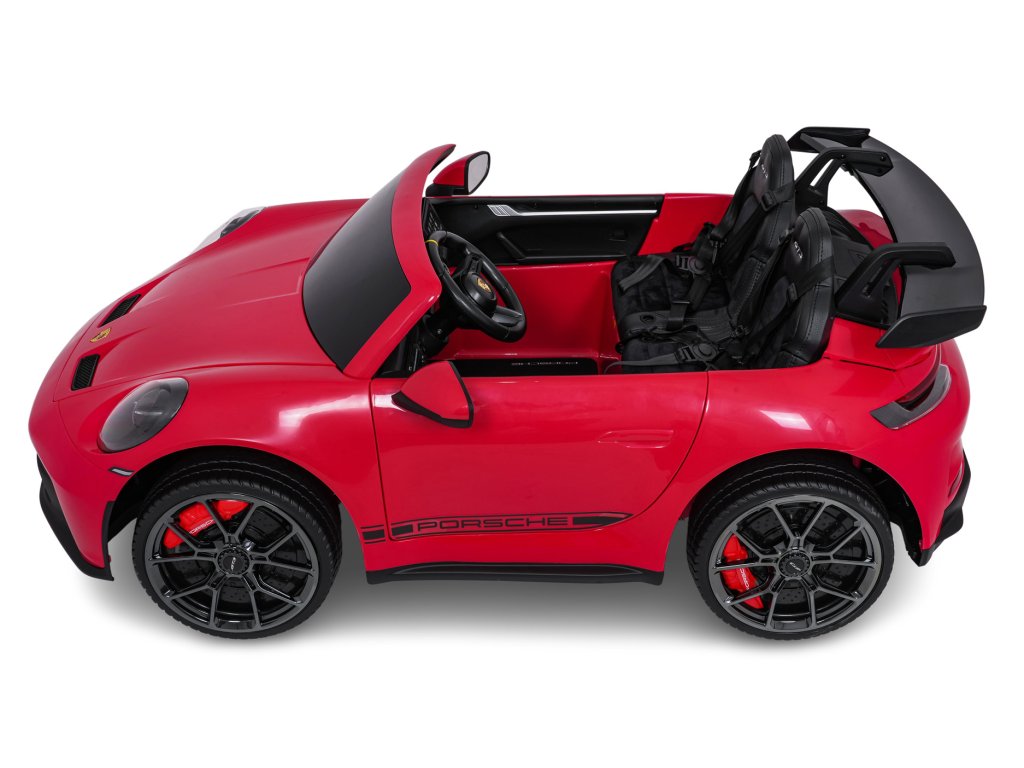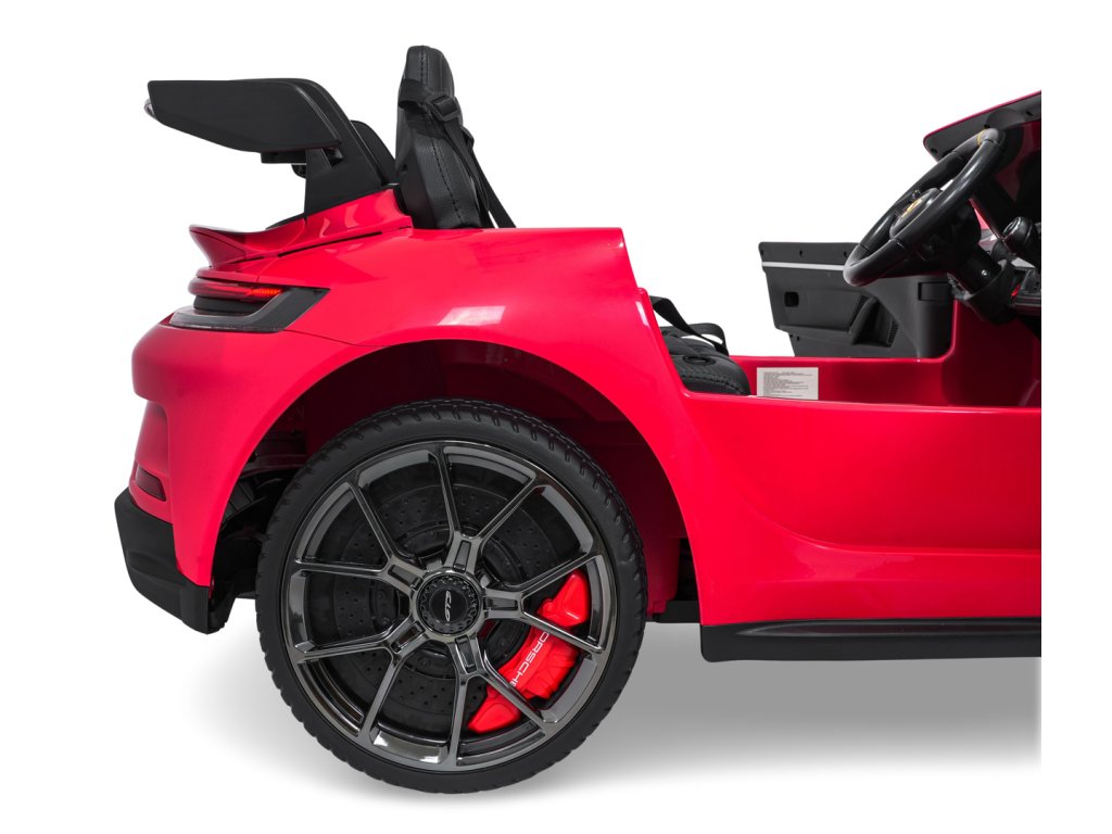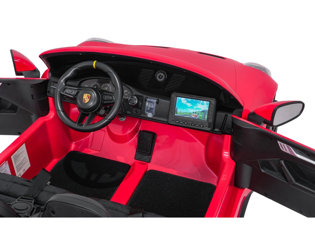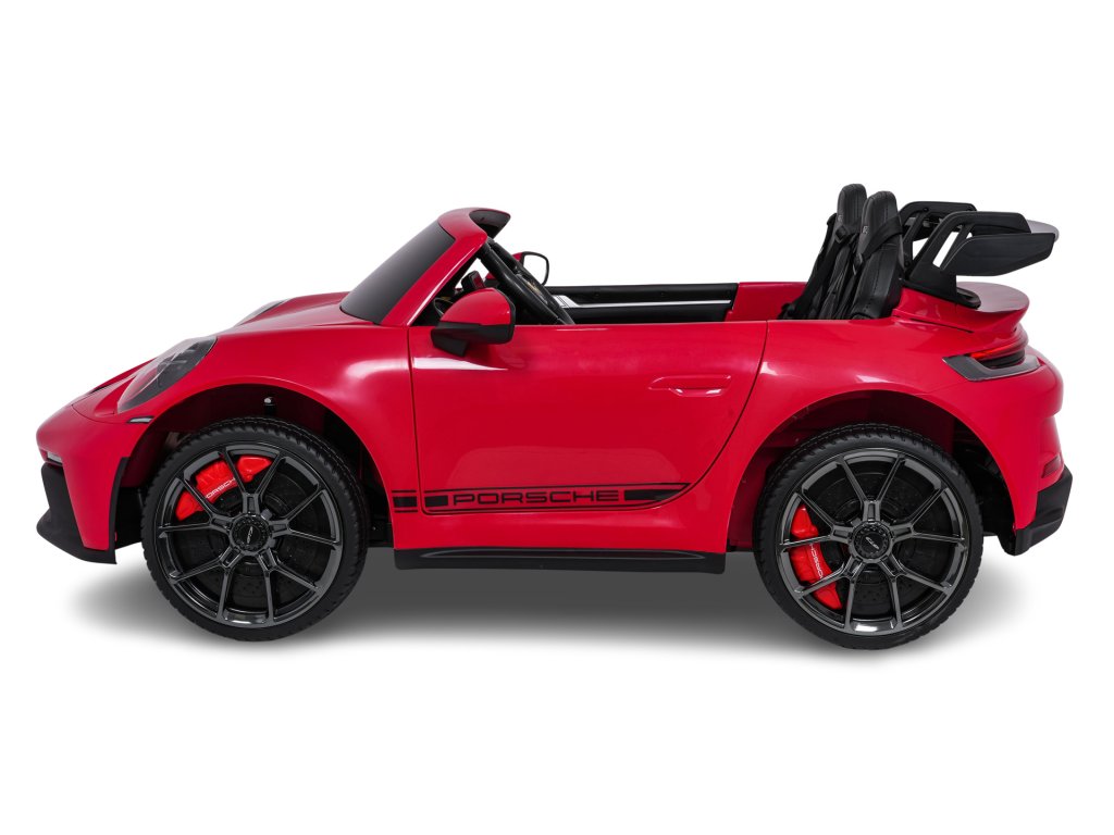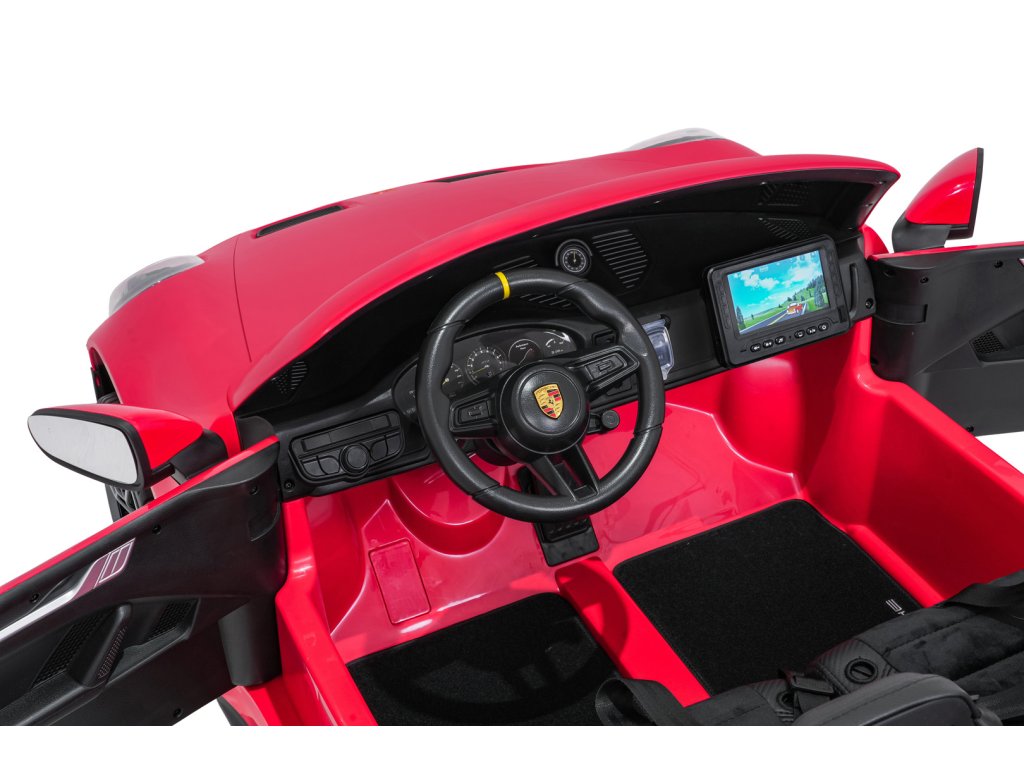 Dětské elektrické autíčko Porsche 911 GT3 je vybaveno motorem o výkonu 4x200W a baterií 24V10Ah. Pohodlnou jízdu Vám zajistí pěnová EVA kola a sedadlo z ekokůže se sametovou úpravou. Autíčko je dále vybaveno dálkovým ovládáním se 3 rychlostmi a bezpečnostním tlačítkem pro zastavení. Přední a zadní LED světla zajistí, že autíčko bude vidět i za šera. Pokud během jízdy rádi posloucháte hudbu, můžete si pustit FM rádio, MP3, hudbu přes Bluetooth nebo USB. Maximální zatížení autíčka je 50kg.