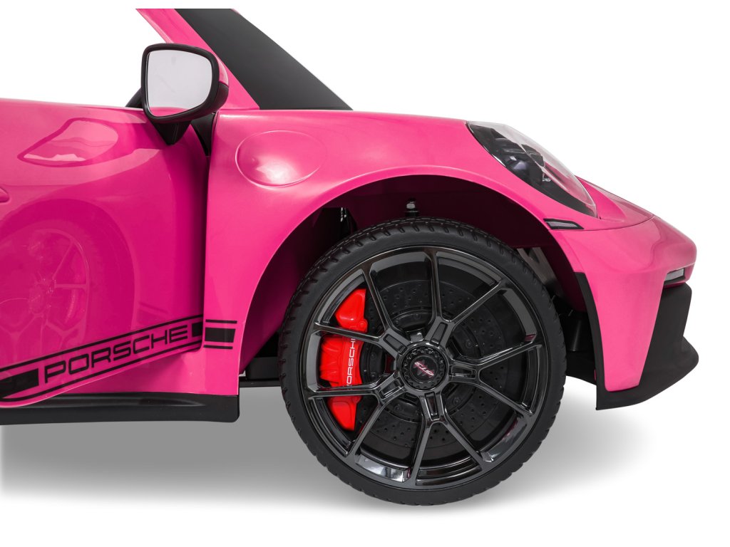 Dětské elektrické autíčko Porsche 911 GT3 je vybaveno motorem o výkonu 4x200W a baterií 24V10Ah. Pohodlnou jízdu Vám zajistí pěnová EVA kola a sedadlo z ekokůže se sametovou úpravou. Autíčko je dále vybaveno dálkovým ovládáním se 3 rychlostmi a bezpečnostním tlačítkem pro zastavení. Přední a zadní LED světla zajistí, že autíčko bude vidět i za šera. Pokud během jízdy rádi posloucháte hudbu, můžete si pustit FM rádio, MP3, hudbu přes Bluetooth nebo USB. Maximální zatížení autíčka je 50kg.