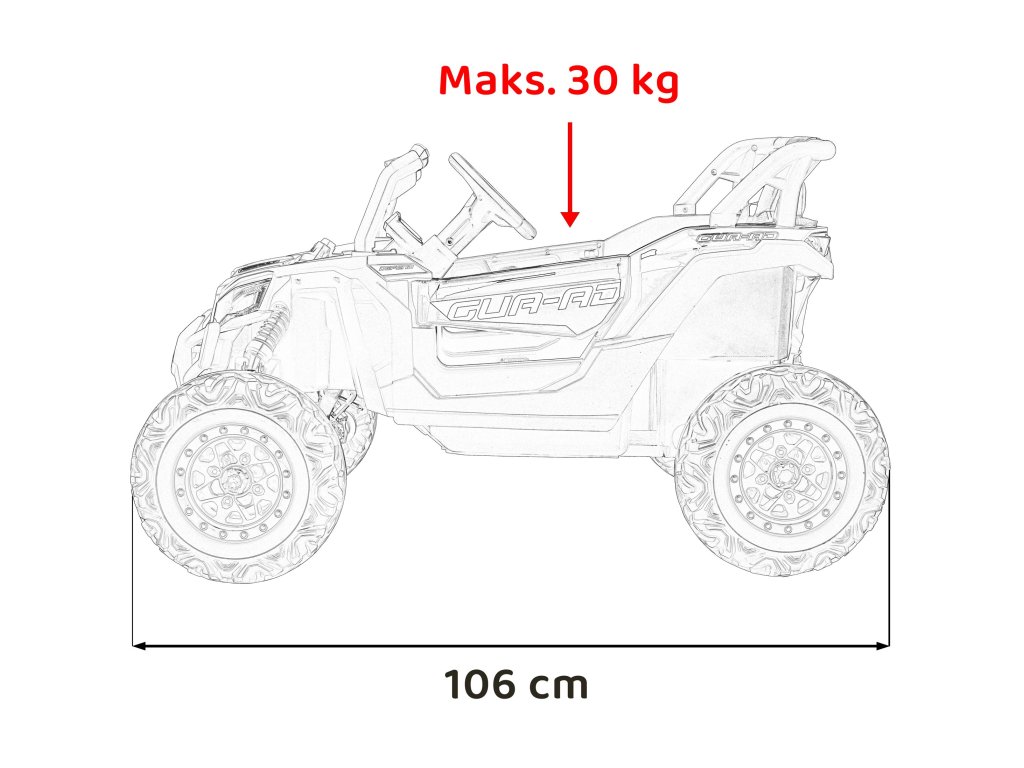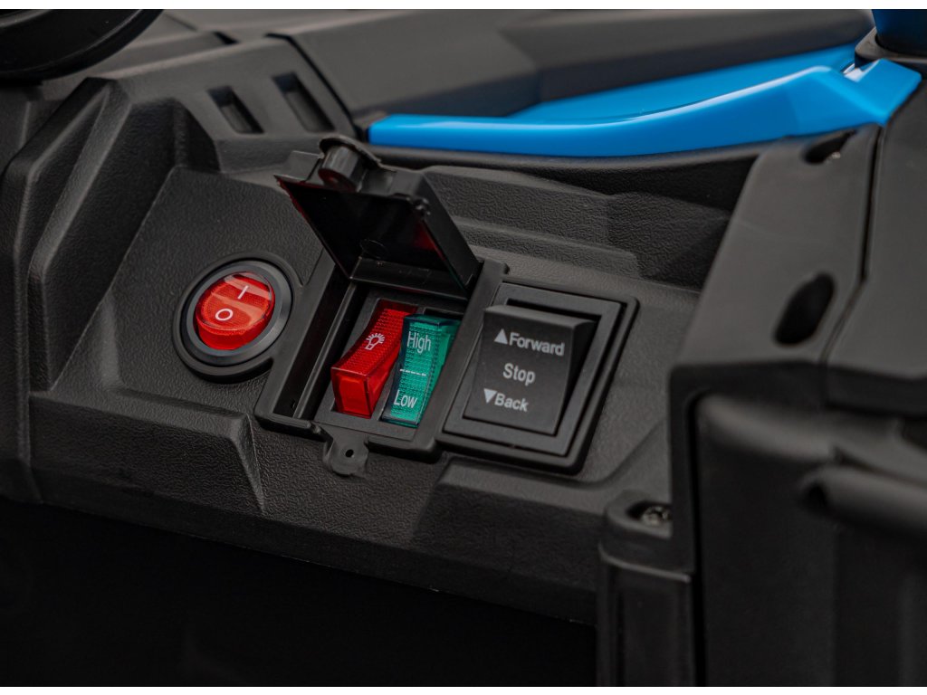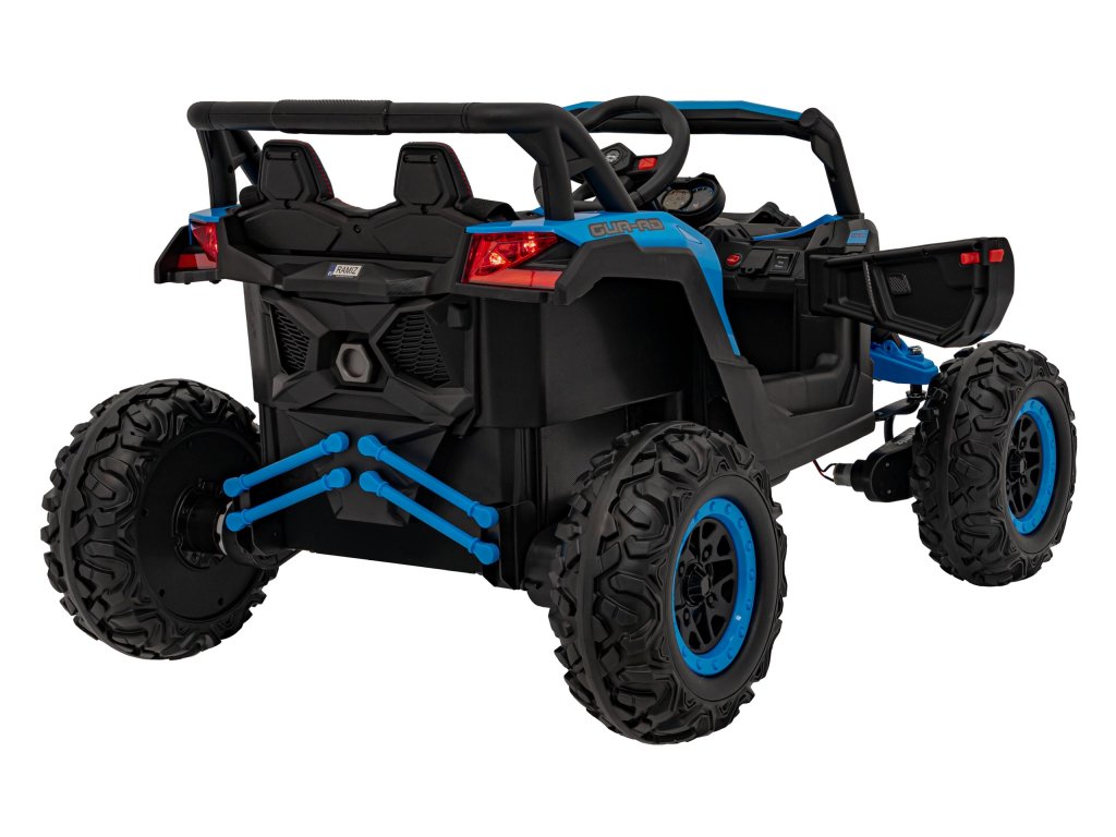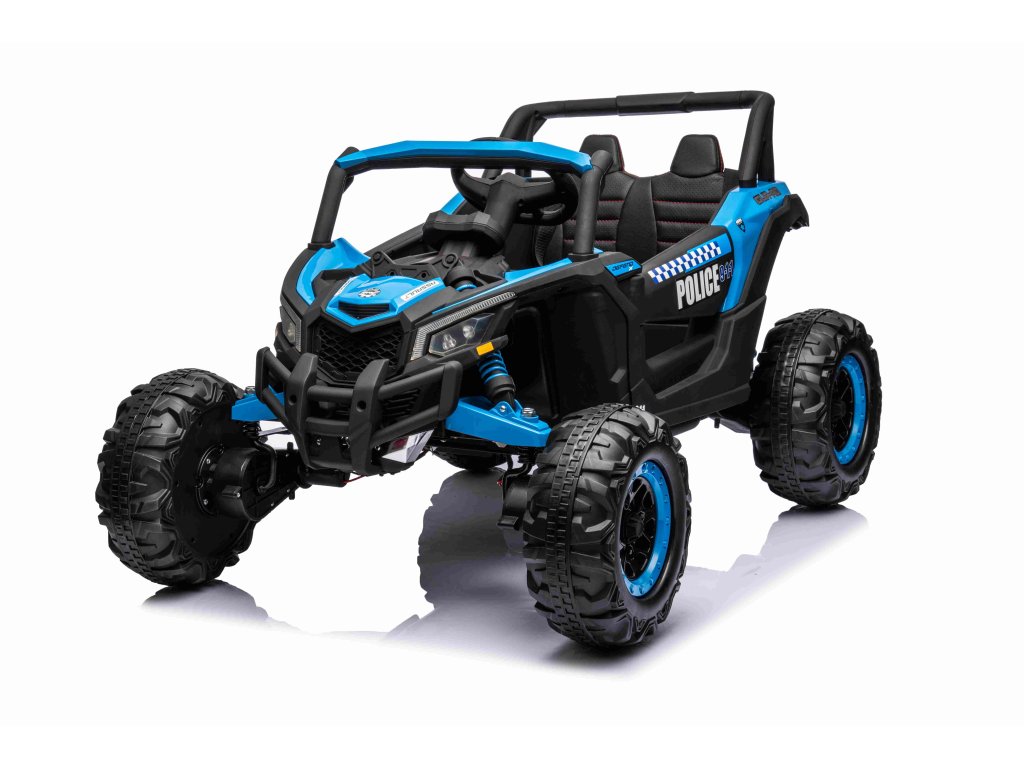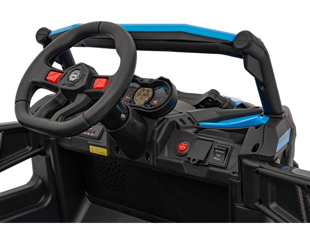 Elektrické autíčko Buggy s motorem o výkonu 4x35W a baterií o výkonu 12V10Ah. Pohodlnou jízdu zajistí kola z EVA pěny a sedadlo z ekokůže. Bezpečnost je zajištěna pomocí předních a zadních LED světel, dálkovým ovládáním s bezpečnostním tlačítkem zastavení a 3 rychlostmi, autíčko je vybaveno bezpečnostními pásy a otevíráním dveří. Jízdu určitě zpříjemní zabudovaný audio panel.
