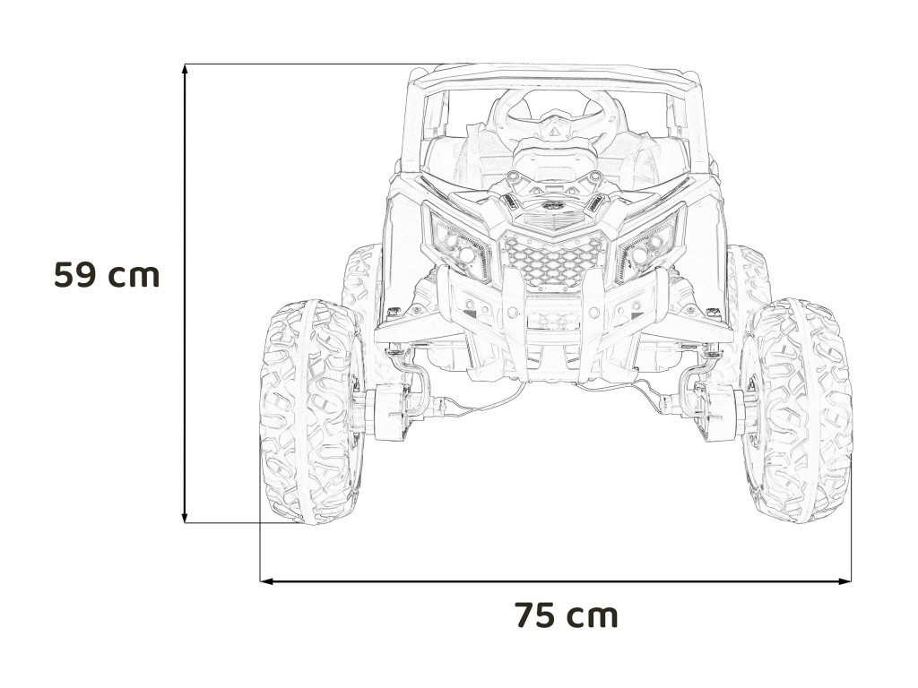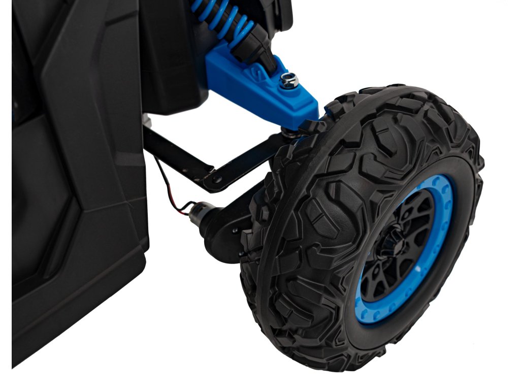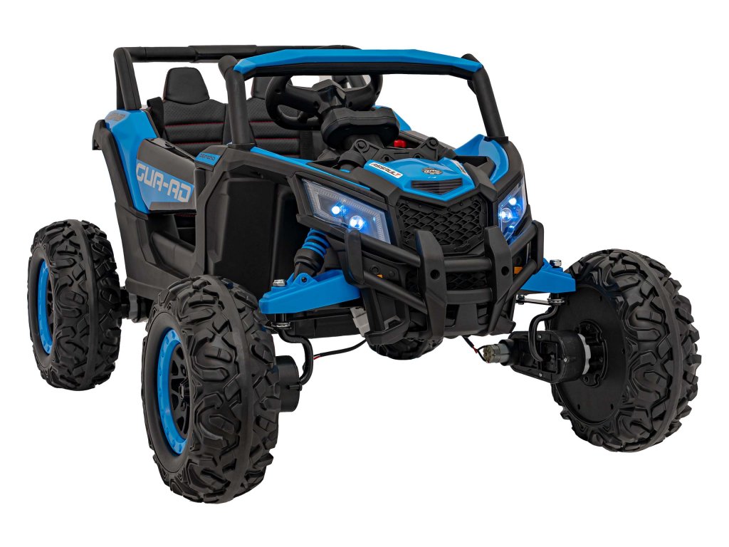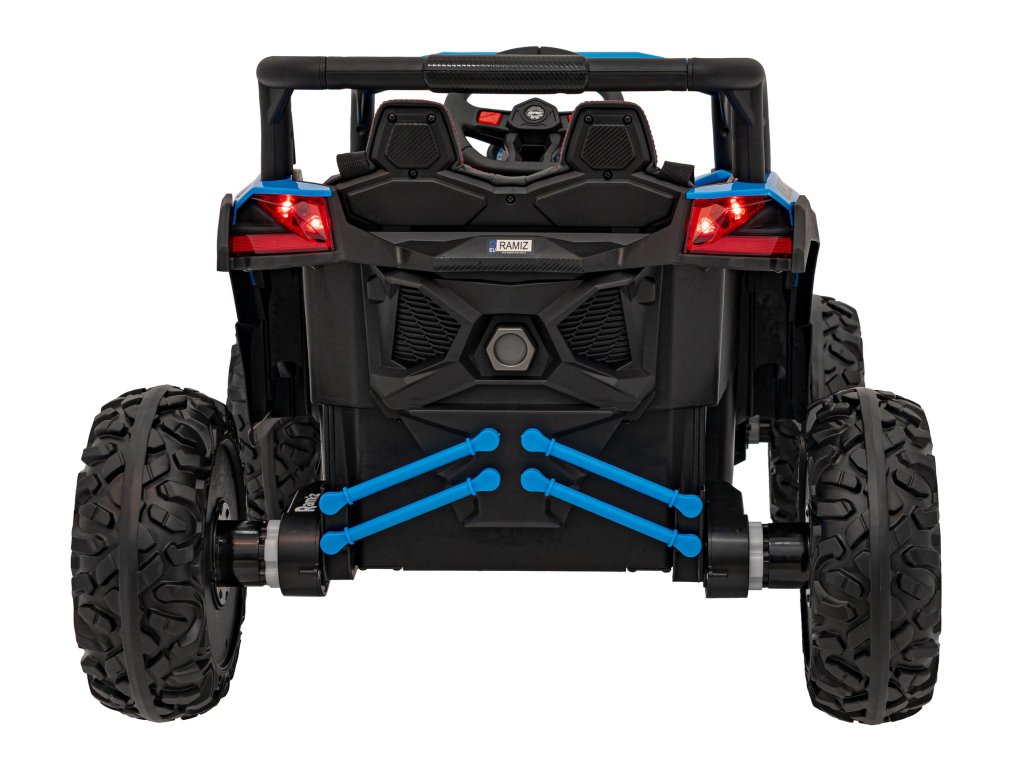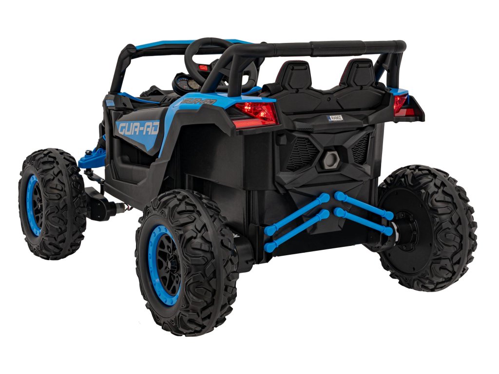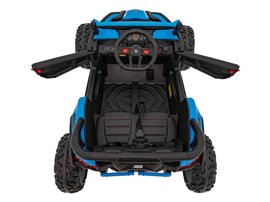 Elektrické autíčko Buggy s motorem o výkonu 4x35W a baterií o výkonu 12V10Ah. Pohodlnou jízdu zajistí kola z EVA pěny a sedadlo z ekokůže. Bezpečnost je zajištěna pomocí předních a zadních LED světel, dálkovým ovládáním s bezpečnostním tlačítkem zastavení a 3 rychlostmi, autíčko je vybaveno bezpečnostními pásy a otevíráním dveří. Jízdu určitě zpříjemní zabudovaný audio panel.