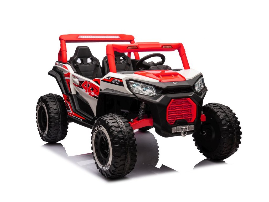Elektrické autíčko s motorem o výkonu 4x45W a baterií o výkonu 24V 8Ah. Autíčko je vybaveno předními a zadními LED světly, měkkými EVA koly a křeslem z ekokůže. Bezpečnost je zajištěna za pomocí bezpečnostních pásů a dálkového ovládání. Jízdu zpříjemní zabudovaný audio systém, který umožňuje přehrávat Bluetooth, USB, MP3 formáty.