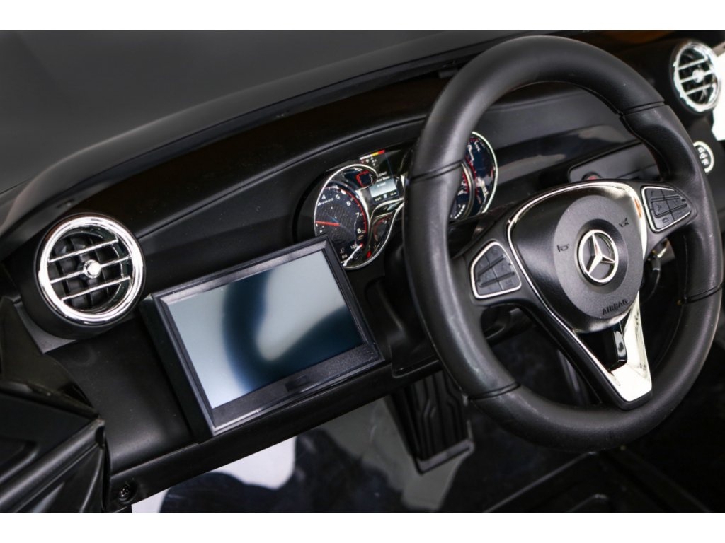 Dětské elektrické autíčko Mercedes-Benz s motorem o výkonu 4x45W a baterií o výkonu 2x12V/7Ah. Autíčko je vybaveno dálkovým ovládáním, audio panelem, který umožňuje přehrávat formáty MP3, MP4 a obsahuje USB vstup. Pohodlí zajistí sedadlo z ekokůže a měkká EVA kola. Autíčko má 2 místa k sezení, je vybaveno předními a zadními světly, bezpečnostními pásy.
