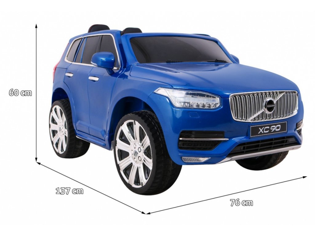 Dětské elektrické autíčko v moderním designu Volvo XC90, s možností ovládání pomocí dálkového ovladače určeného pro rodiče. Autíčko lze řídit dvěma způsoby, bud' pomocí dálkového ovladače, kdy rodič sám volí směr a rychlost jízdy, nebo kdy dítě řídí autíčko zcela samostatně. Rychlost elektrického vozítka se ovládá pomocí nožního akcelerátoru, který je integrovaný společně s brzdou v jednom pedálu, po sešlápnutí akcelerátoru se autíčko rozjede a po uvolnění začne brzdit. Dostatečný výkon motoru, poskytne autíčku minimální dobu jízdy na 1-2 hodiny, ale skutečná doba jízdy bývá i několikanásobně vyšší, záleží na způsobu jízdy a druhu terénu. Nedílnou součástí elektrického autíčka je i elektrická baterie s nabíječkou. Autíčko nesmí být používáno na veřejných komunikacích, parkovištích a na silnicích s prudkým klesáním, předejte tak nechtěným úrazům Vašeho dítěte. Součástí je i krycí plachta na autíčko a USB flash disk s instruktážkím videem ke složení.