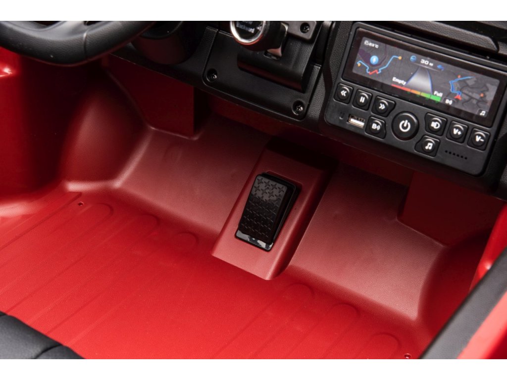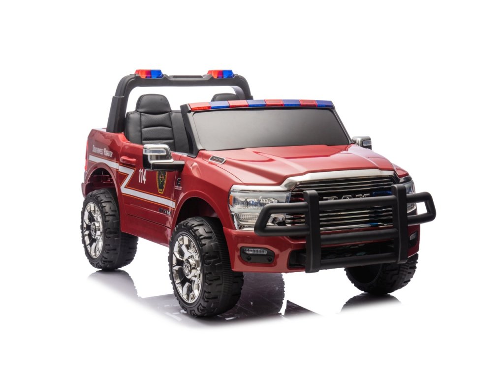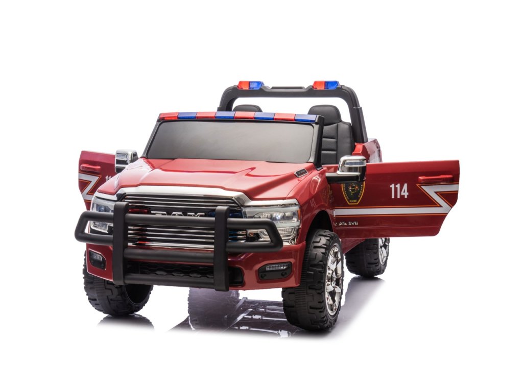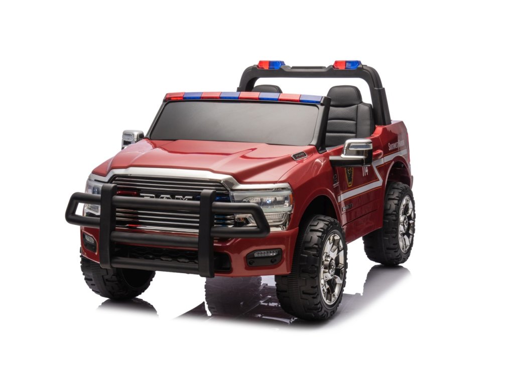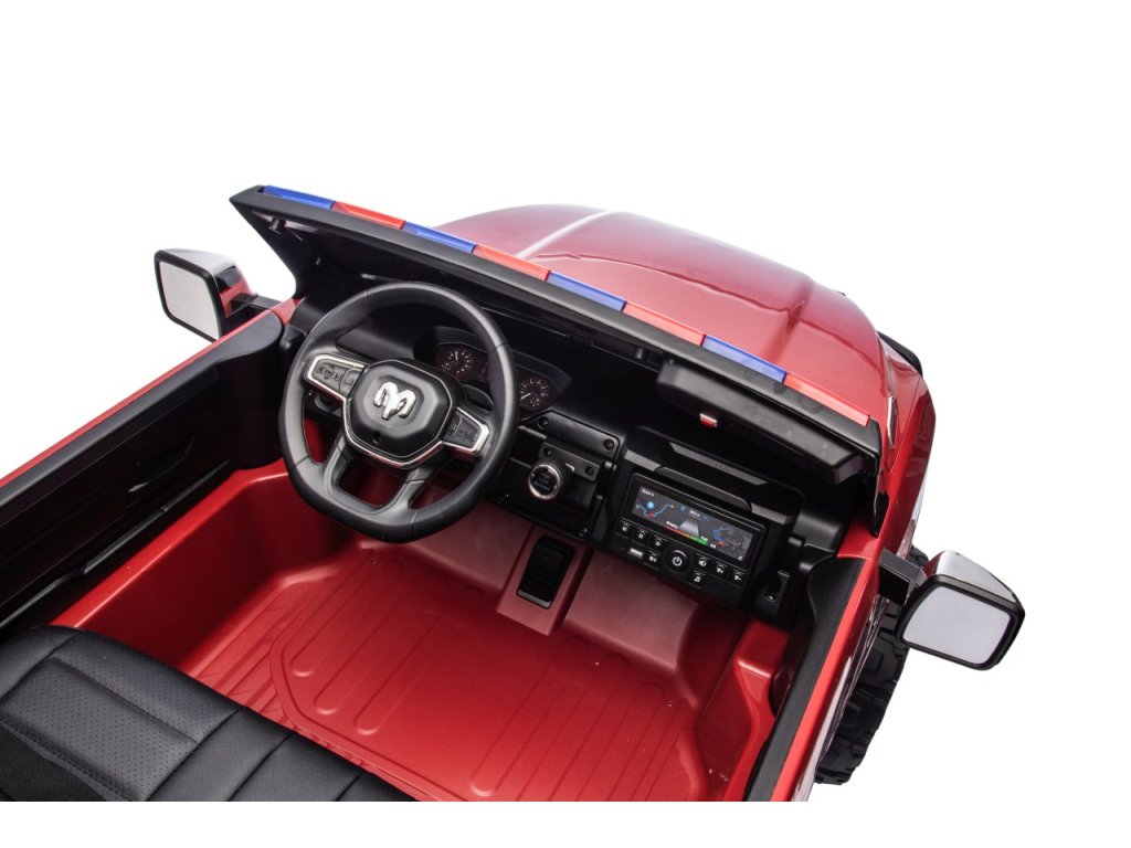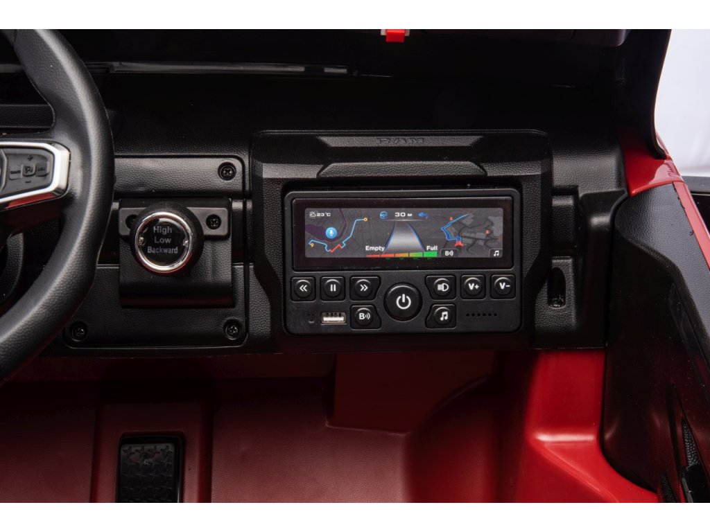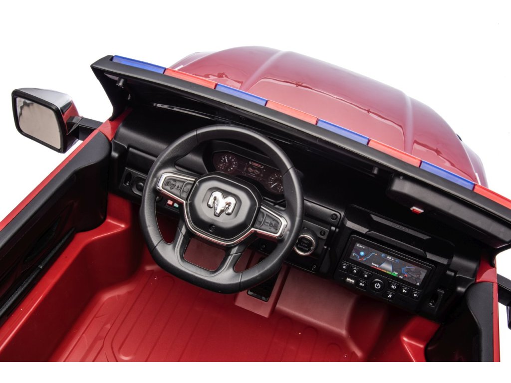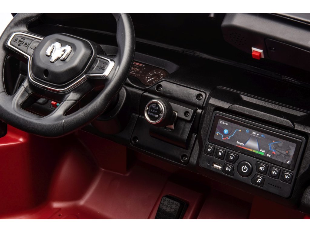Elektrické auto RAM 3500 je robustní a stylové dětské vozidlo, které nabídne dětem zábavu i bezpečnost. S dvěma výkonnými motory 200 W a baterií 24 V / 7 Ah poskytuje dostatečný výkon pro jízdu vpřed i vzad, navíc s plynulým rozjezdem. Součástí je dálkový ovladač 2,4 GHz s funkcí STOP a třemi rychlostmi pro bezpečnost rodičů. Auto má pěnová EVA kola o průměru 30 cm, která zajišťují tichou a komfortní jízdu i na nerovném povrchu. Přední i horní LED světla, zvukové efekty a připojení Bluetooth, MP3 i USB zaručují zábavu na maximum. Otevírací dveře s pojistkou, černé sedadlo z ekokůže (50×23×30 cm) a velký zadní kufr (54×23×18 cm) přispívají ke komfortu.