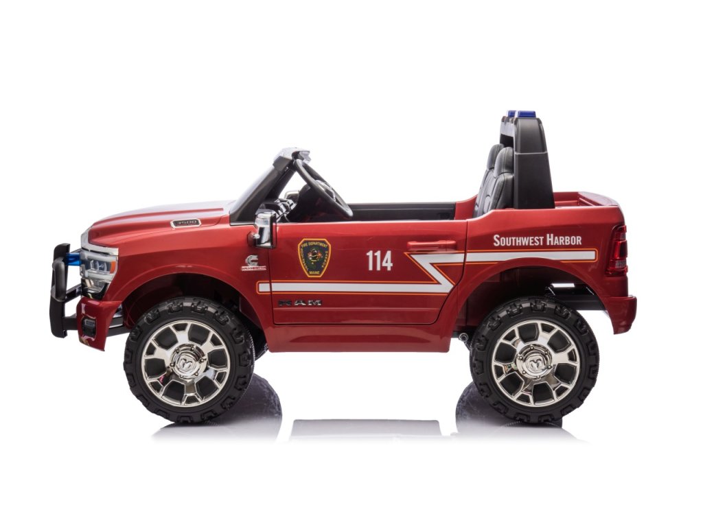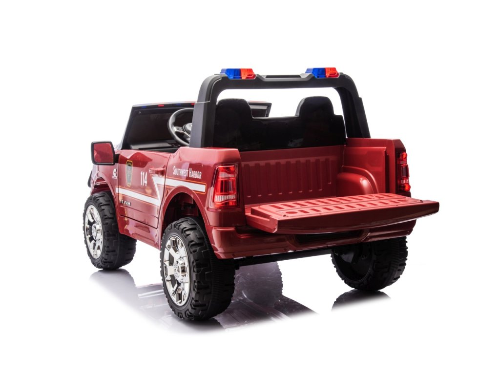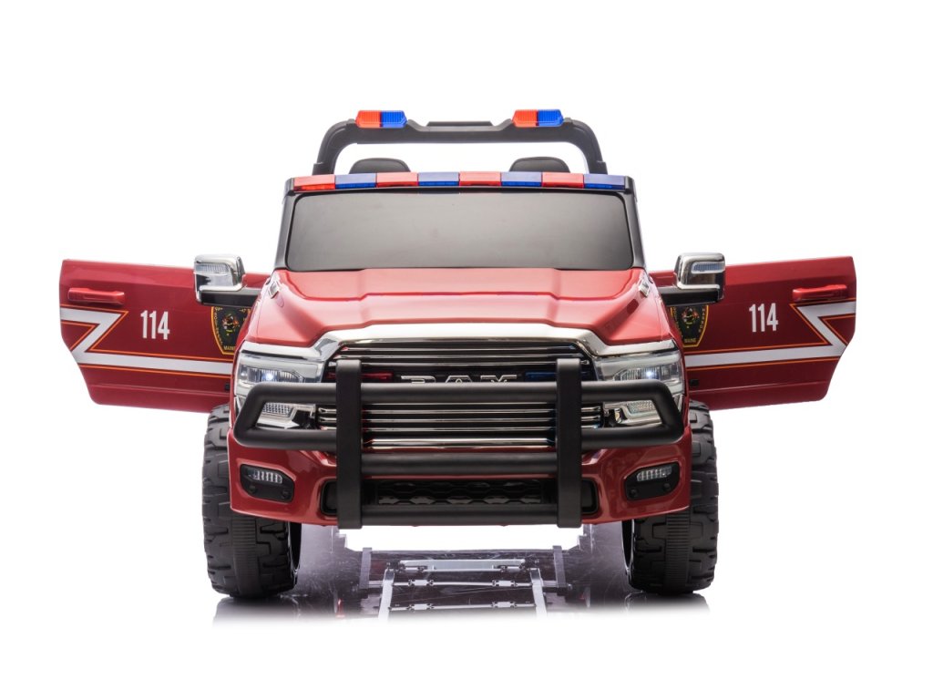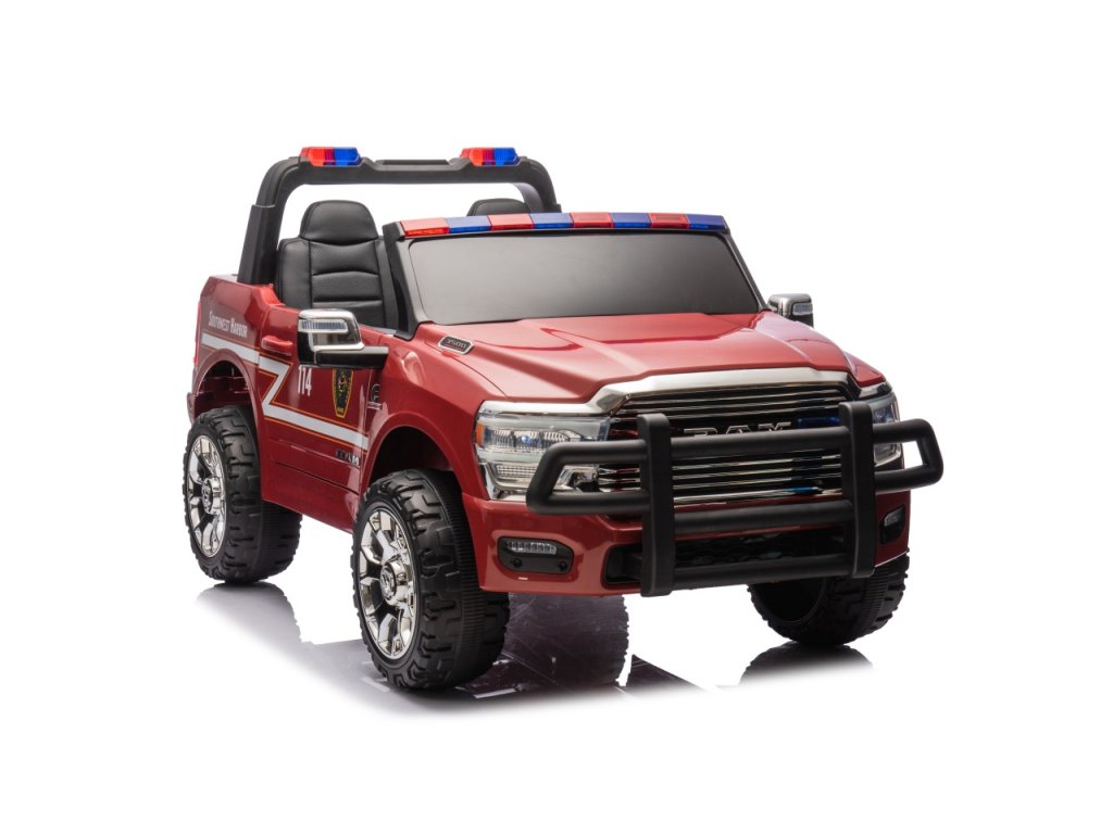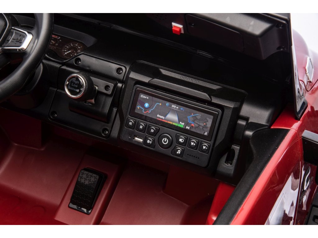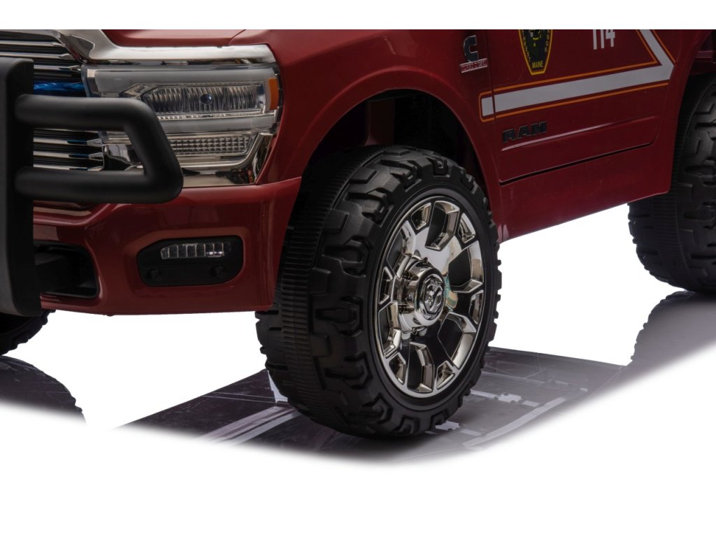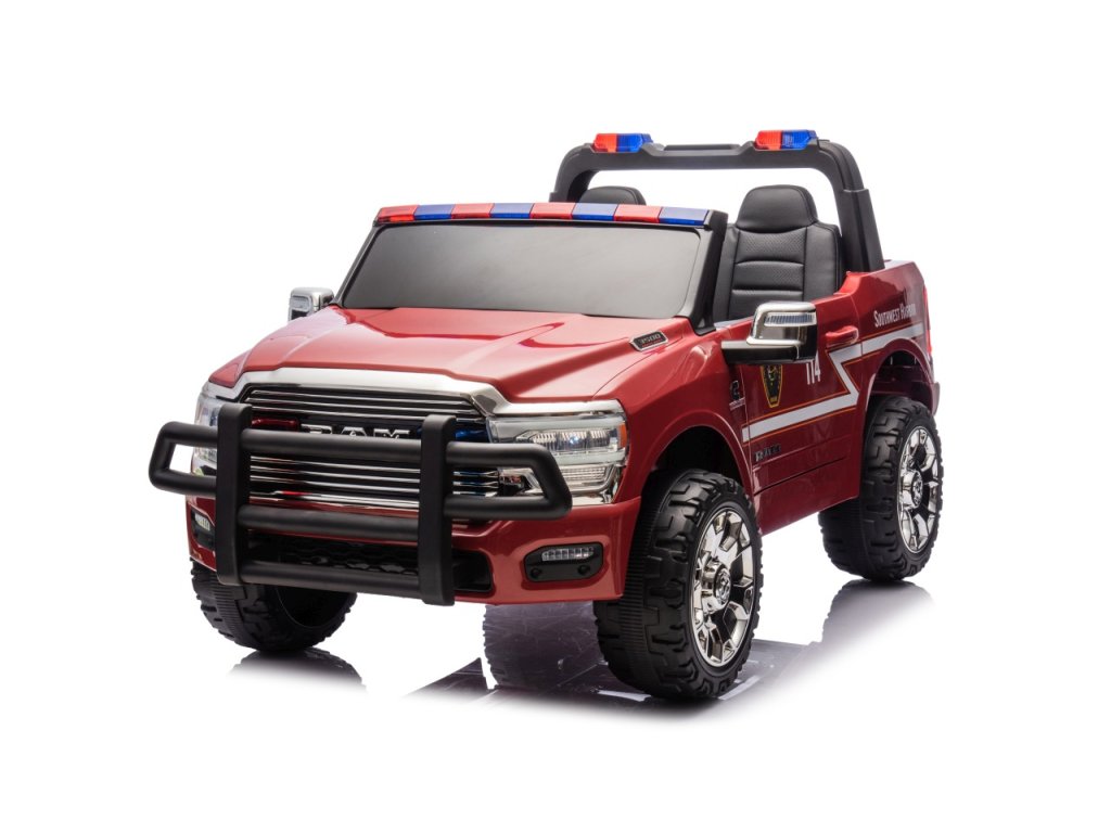 Elektrické auto RAM 3500 je robustní a stylové dětské vozidlo, které nabídne dětem zábavu i bezpečnost. S dvěma výkonnými motory 200 W a baterií 24 V / 7 Ah poskytuje dostatečný výkon pro jízdu vpřed i vzad, navíc s plynulým rozjezdem. Součástí je dálkový ovladač 2,4 GHz s funkcí STOP a třemi rychlostmi pro bezpečnost rodičů. Auto má pěnová EVA kola o průměru 30 cm, která zajišťují tichou a komfortní jízdu i na nerovném povrchu. Přední i horní LED světla, zvukové efekty a připojení Bluetooth, MP3 i USB zaručují zábavu na maximum. Otevírací dveře s pojistkou, černé sedadlo z ekokůže (50×23×30 cm) a velký zadní kufr (54×23×18 cm) přispívají ke komfortu.
