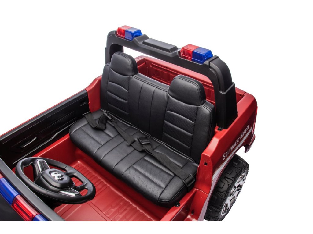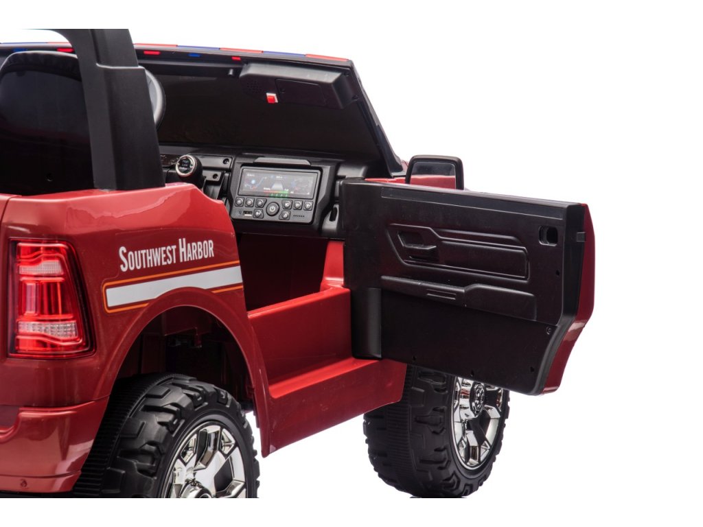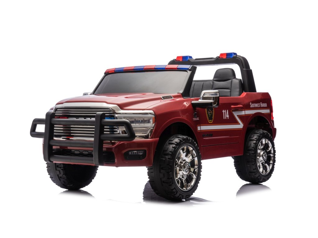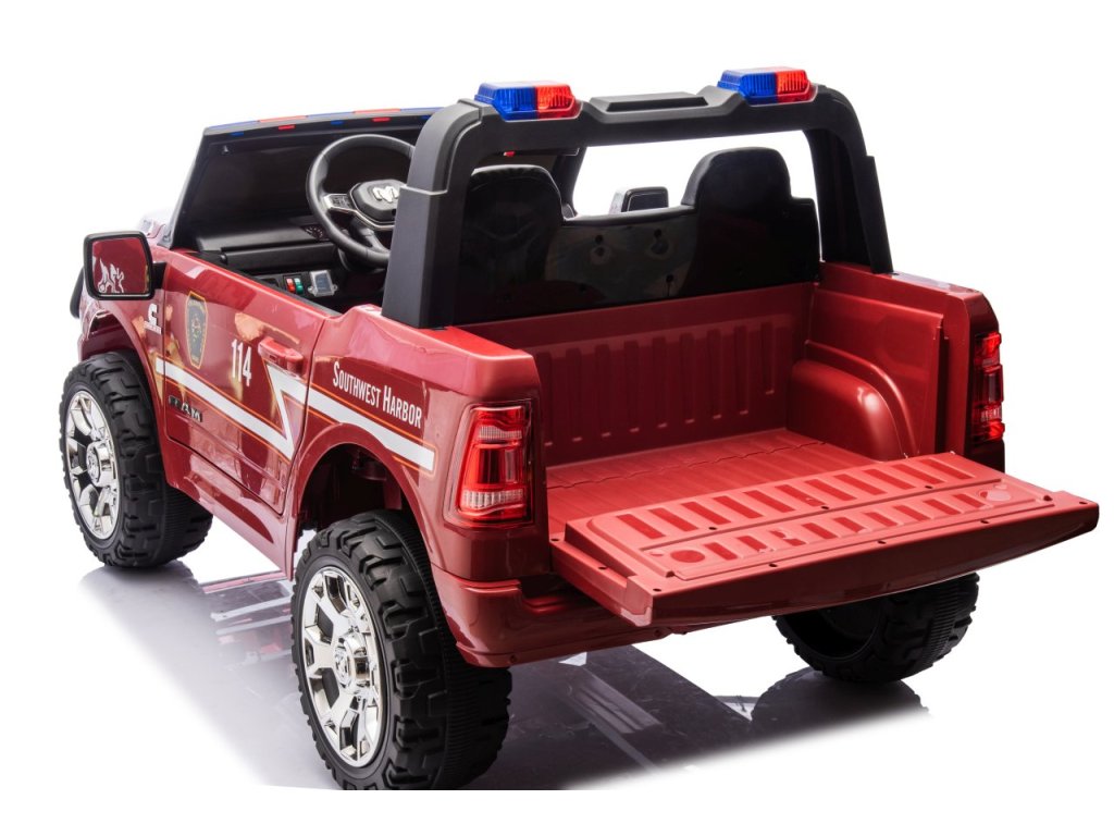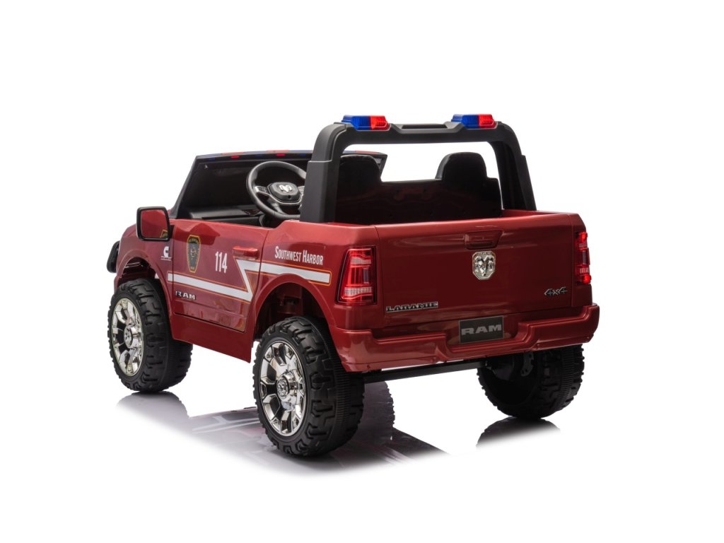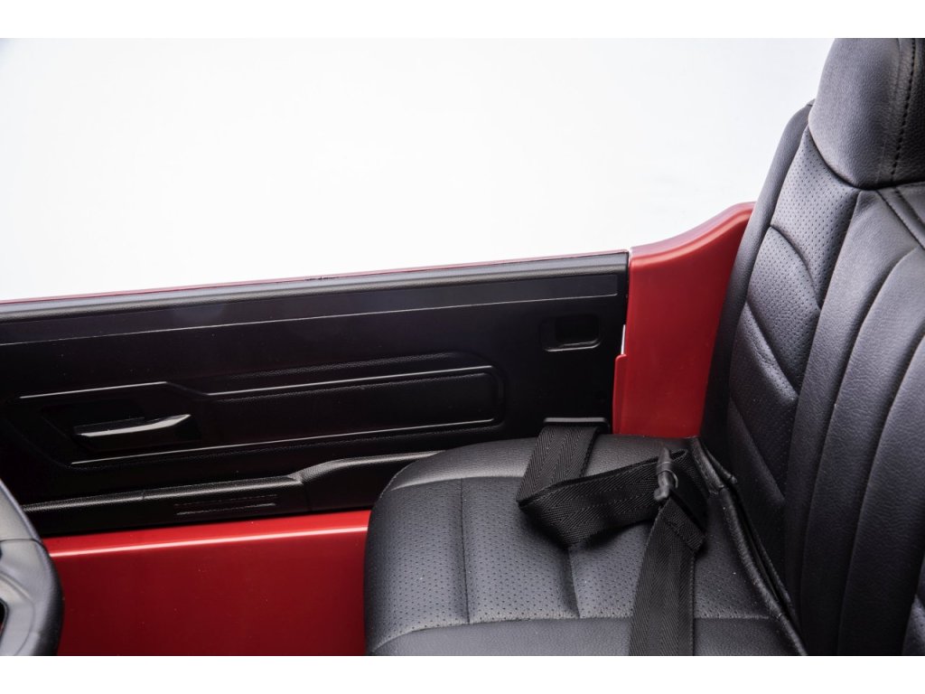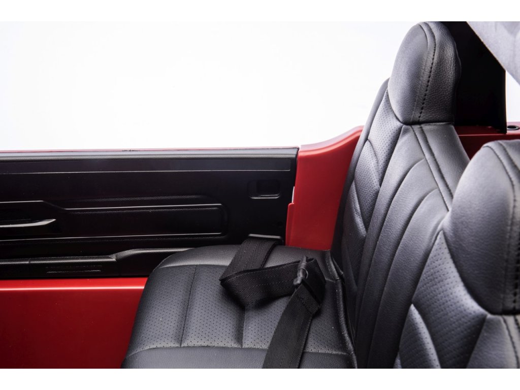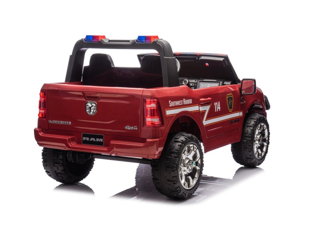 Elektrické auto RAM 3500 je robustní a stylové dětské vozidlo, které nabídne dětem zábavu i bezpečnost. S dvěma výkonnými motory 200 W a baterií 24 V / 7 Ah poskytuje dostatečný výkon pro jízdu vpřed i vzad, navíc s plynulým rozjezdem. Součástí je dálkový ovladač 2,4 GHz s funkcí STOP a třemi rychlostmi pro bezpečnost rodičů. Auto má pěnová EVA kola o průměru 30 cm, která zajišťují tichou a komfortní jízdu i na nerovném povrchu. Přední i horní LED světla, zvukové efekty a připojení Bluetooth, MP3 i USB zaručují zábavu na maximum. Otevírací dveře s pojistkou, černé sedadlo z ekokůže (50×23×30 cm) a velký zadní kufr (54×23×18 cm) přispívají ke komfortu.