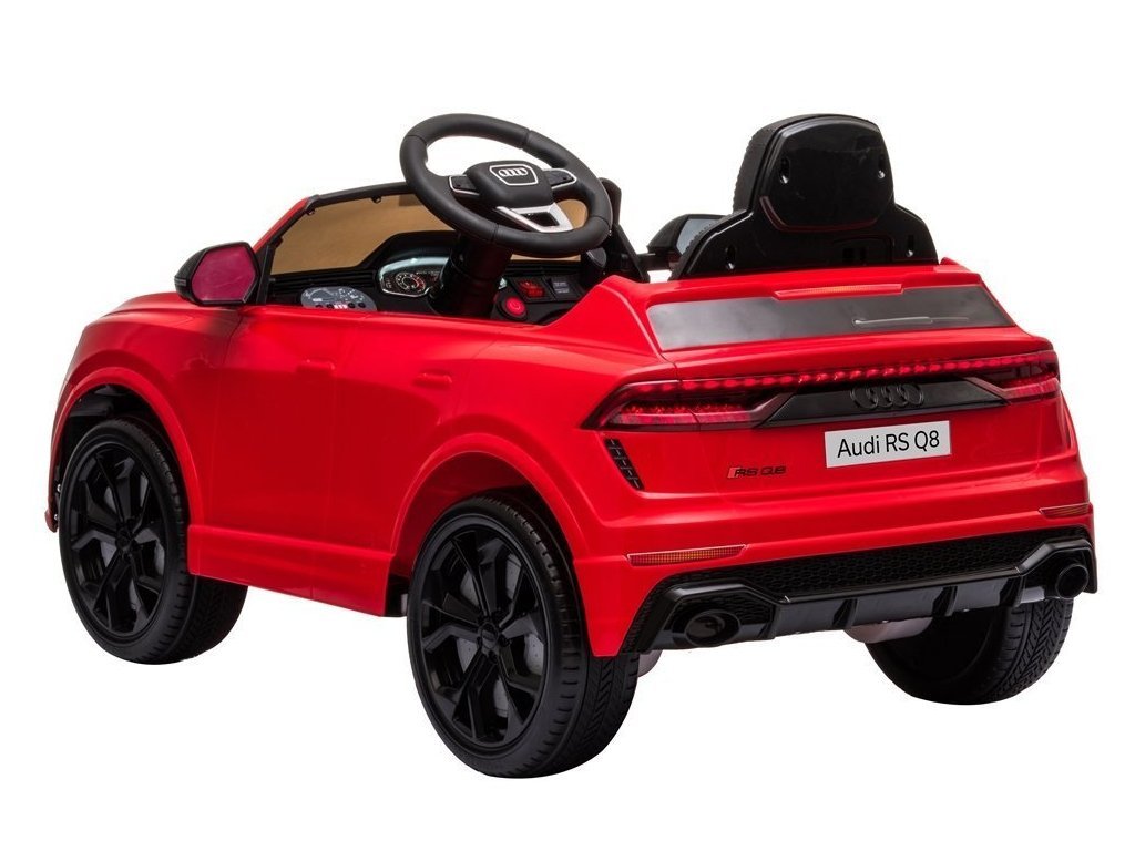 Dětské elektrické autíčko Audi RS Q8 na dálkové ovládání 2,4 GHz. Vozidlo má pěnová EVA kola, přední a zadní LED světla.