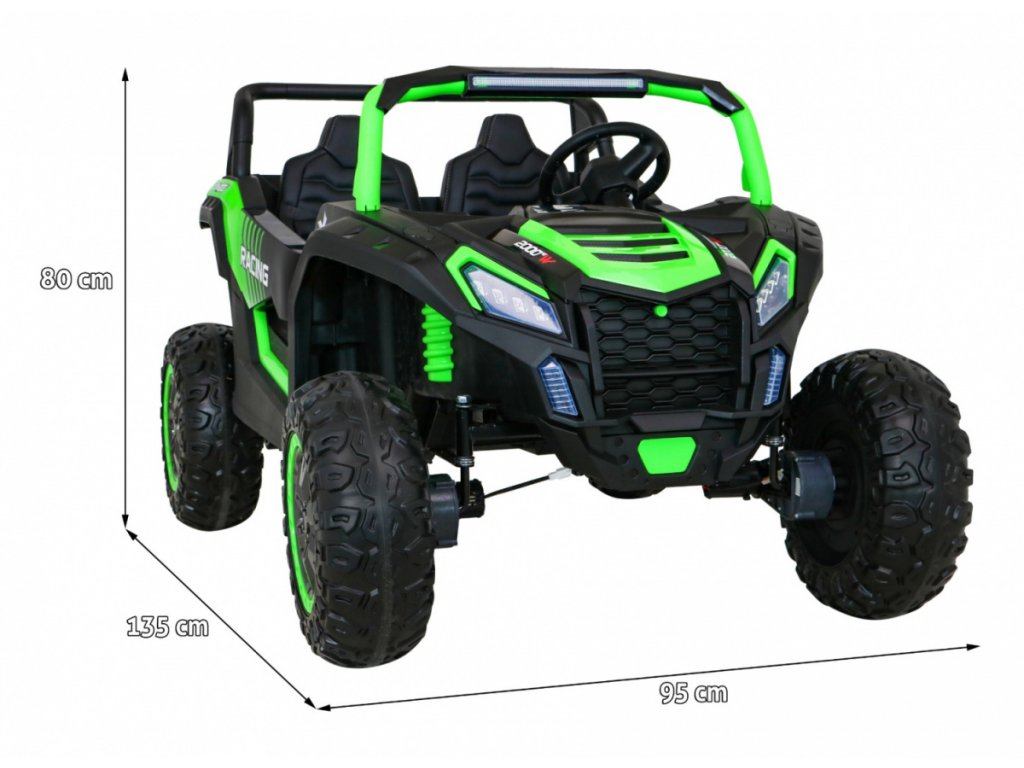 Elektrické autíčko Buggy ATV Racing 4x4 s dálkovým ovládáním 2,4 GHza čtyřmi velice výkonnými motory 200W (800W) je dostupné puze v našem internetovém obchodě a za nejlepší cenu. Na dálkovém ovládání je tlačítko STOP, pro bezpečné zastavení vozidla a 3 rychlosti. Toto parádní vozítko je určeno především dětem, které už trochu umí ovládat elektrická vozítka, jelikož jeho výkon jej předurčuje do těžšího terénu. Vozítko bude ideálním pomocníkem pro Vaše děti a stane se jistě jejich nejoblíbenějším autem na dlouhé roky.