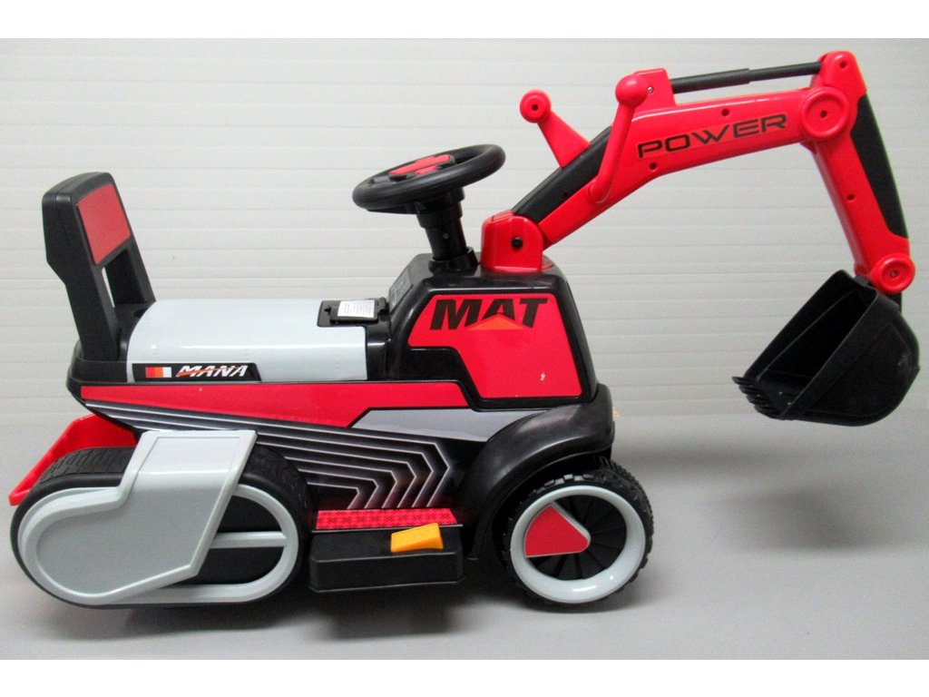 Dětský elektrický bagr ve třech barvách. Dítě řídí vozidlo samostatně, sedí za volantem. Vozidlo je obecně určeno pro venkovní použití, ale jeho ergonomický design umožňuje jeho použití i ve větších místnostech, jako je terasa nebo obývací pokoj. Doporučený věk uživatele 1,5-5 let. Hudba řzená dětmi. Přední svítící LED světla. Vozidlo není vybaveno dálkovým ovládáním.