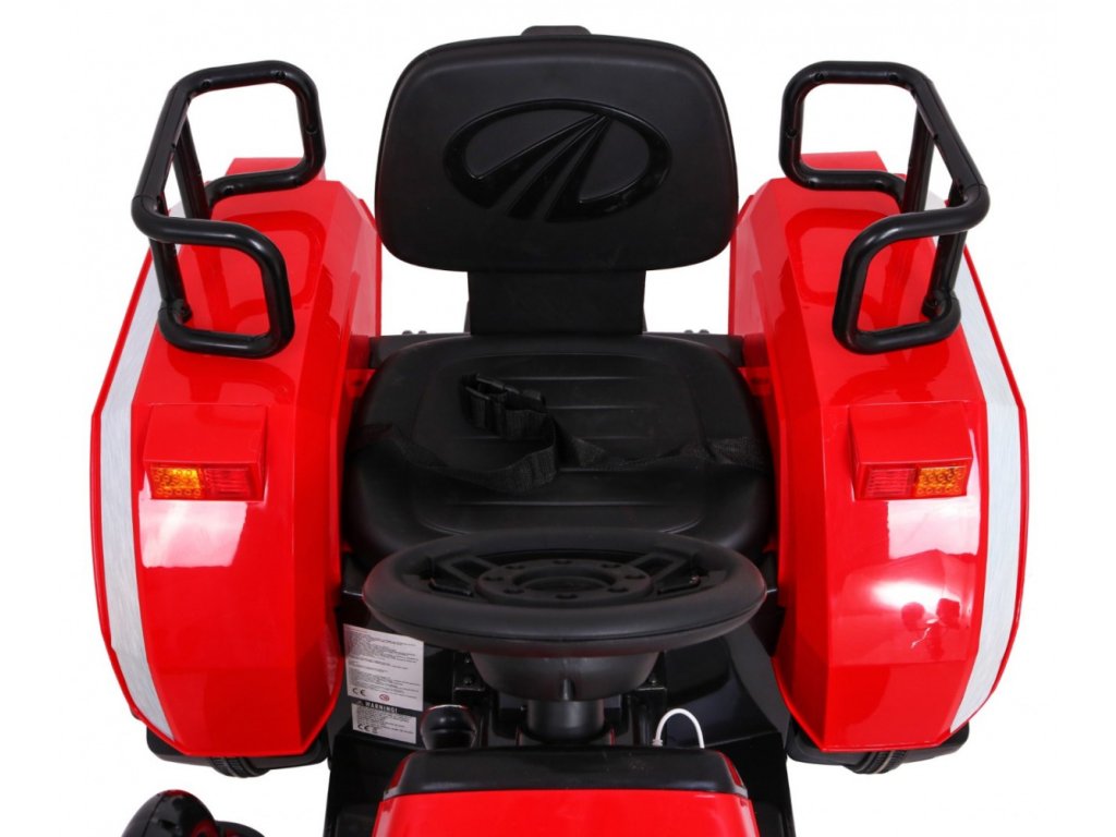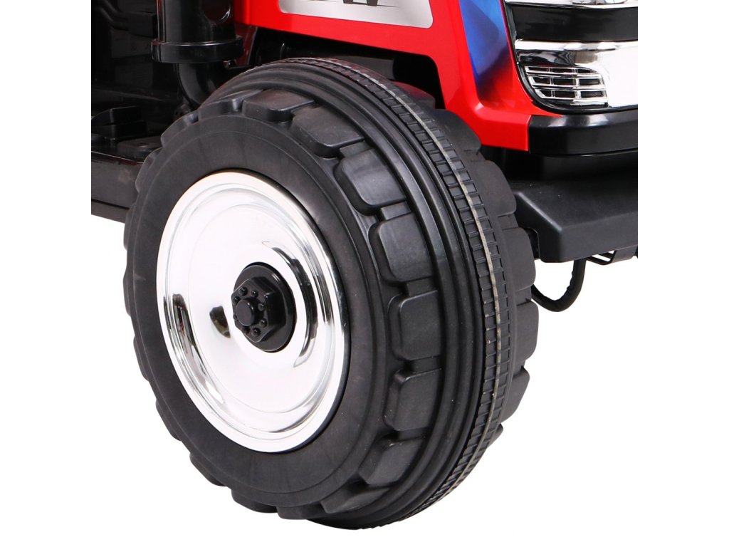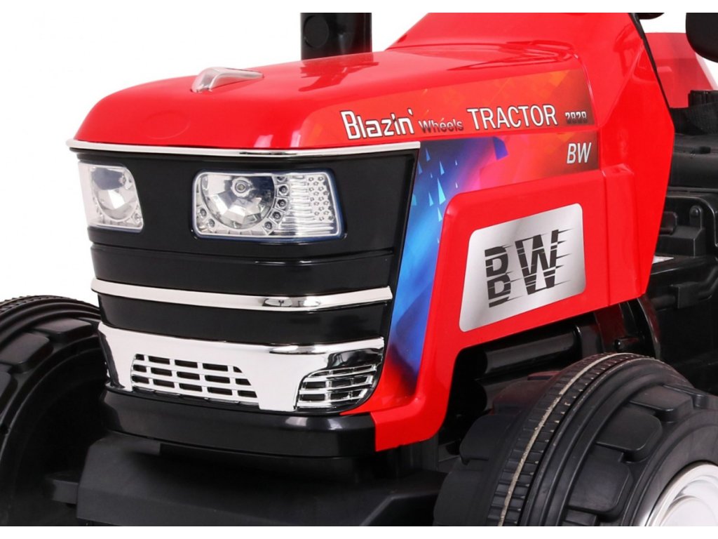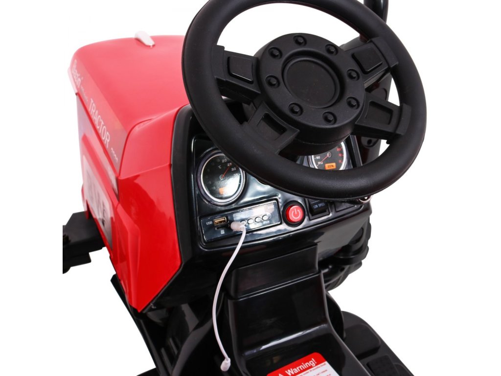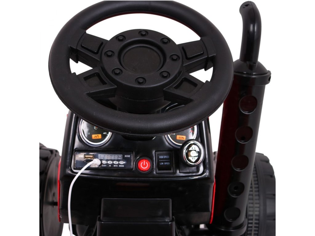 Dětský elektrický traktor na dálkové ovládání 2,4GHz. Na dálkovém ovládání je možnost zvolit 3 rychlosti a tlačítko STOP pro bezpečné zastavení vozu.