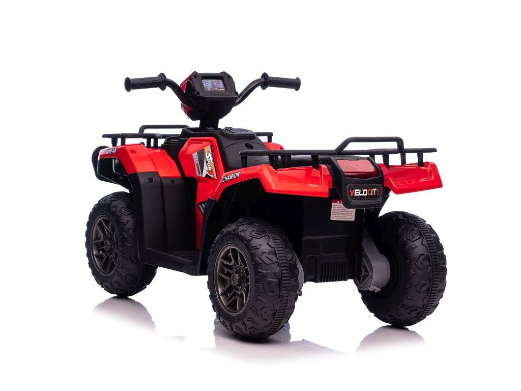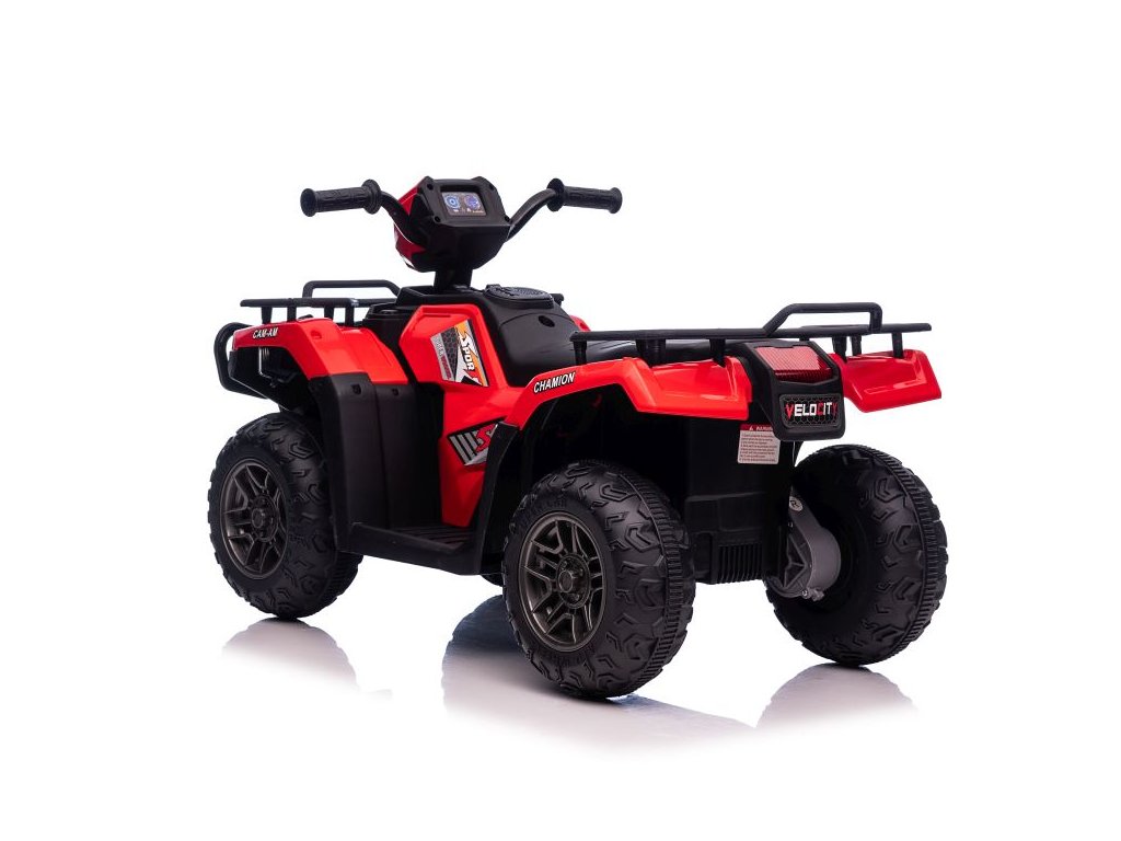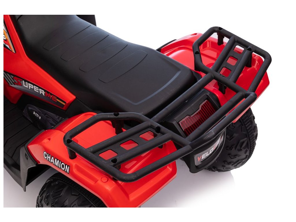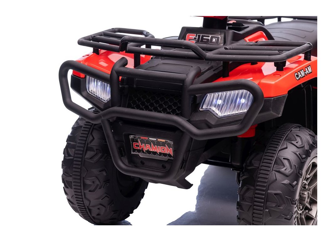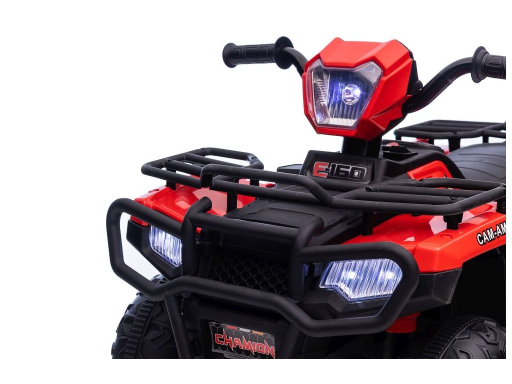 Dětská elektrická čtyřkolka je vybavena motorem 2x45W a baterií o výkonu 12V 4,5Ah. Čtyřkolka má zabudovaný hudební panel s MP3 a USB, přední LED světla. Čtyřkolka je vybavena plastovým sedadlem a plastovými koly.
