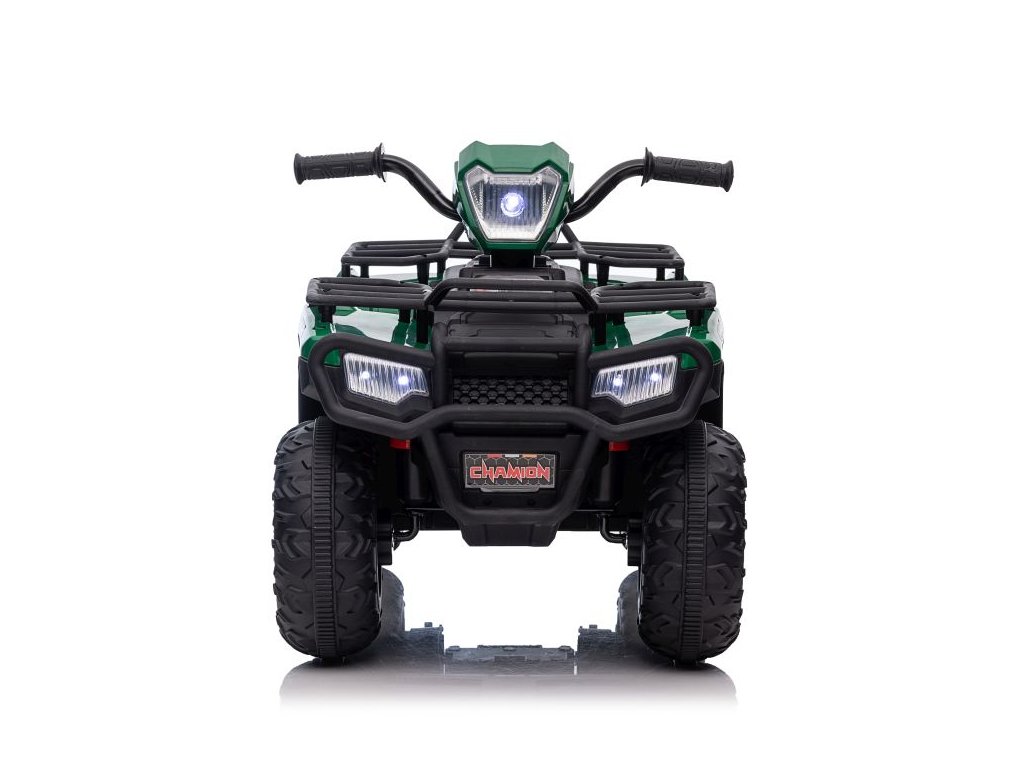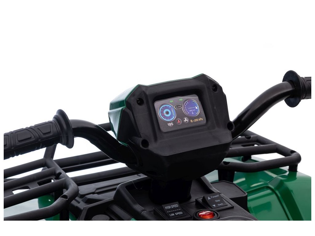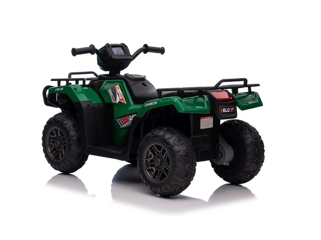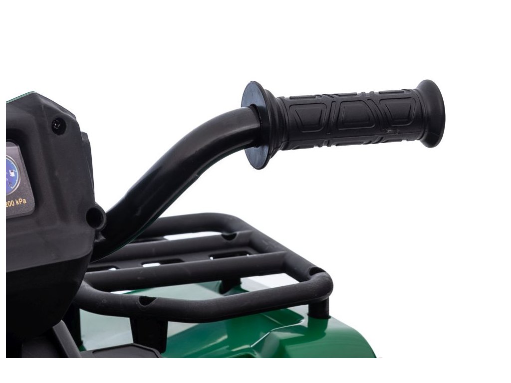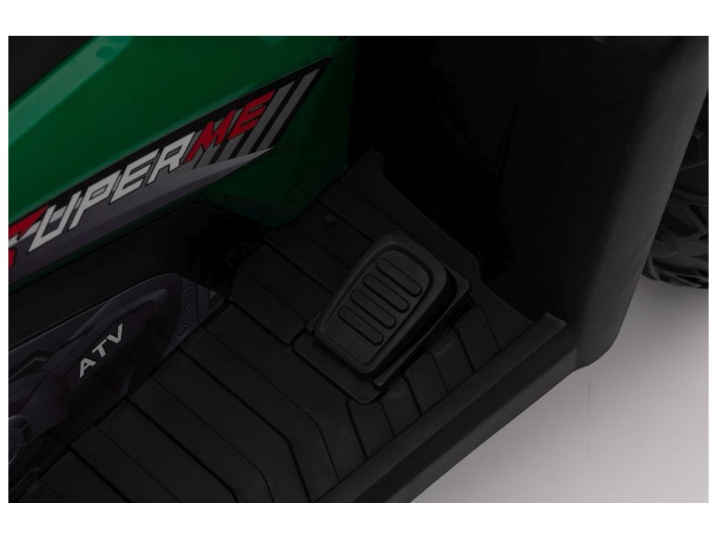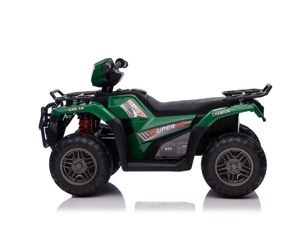 Dětská elektrická čtyřkolka je vybavena motorem 2x45W a baterií o výkonu 12V 4,5Ah. Čtyřkolka má zabudovaný hudební panel s MP3 a USB, přední LED světla. Čtyřkolka je vybavena plastovým sedadlem a plastovými koly.