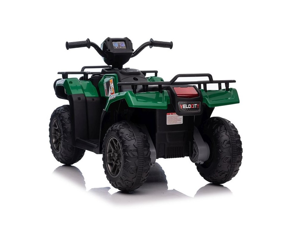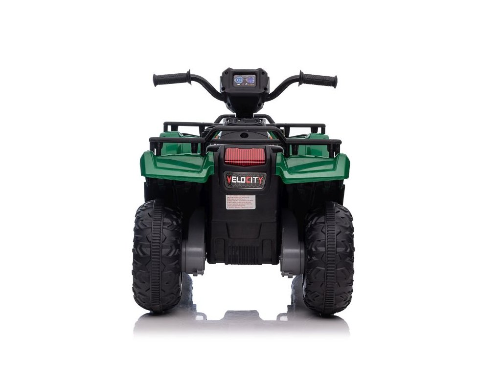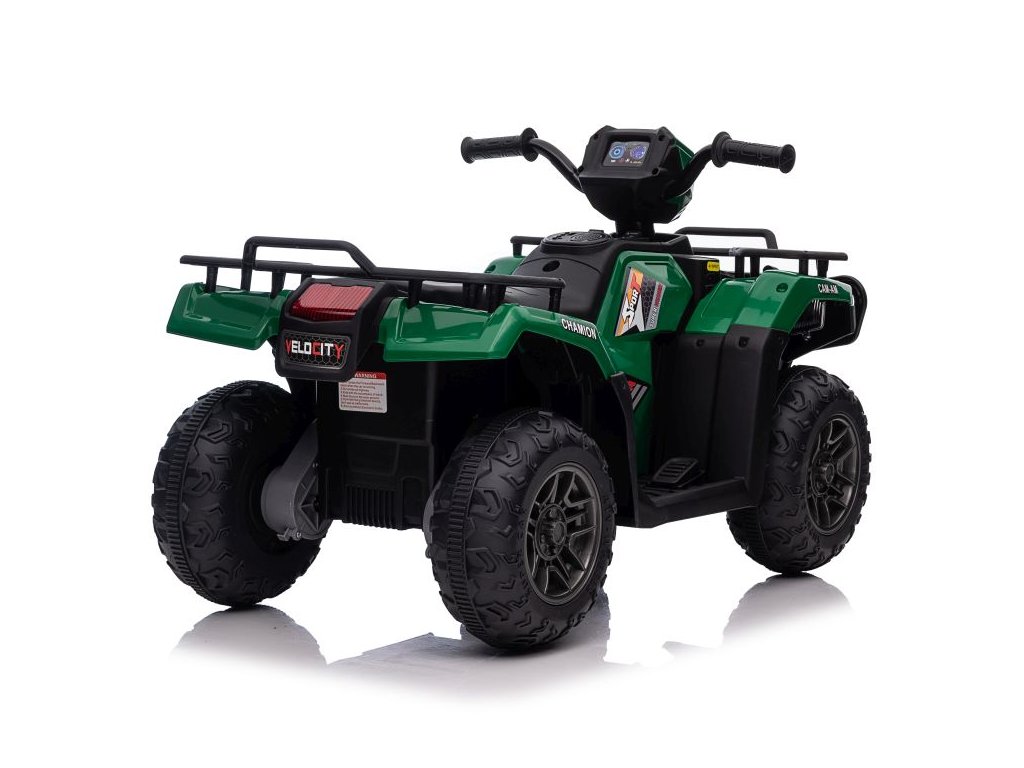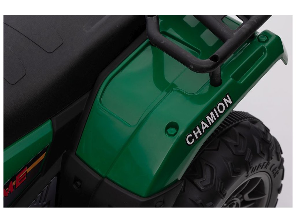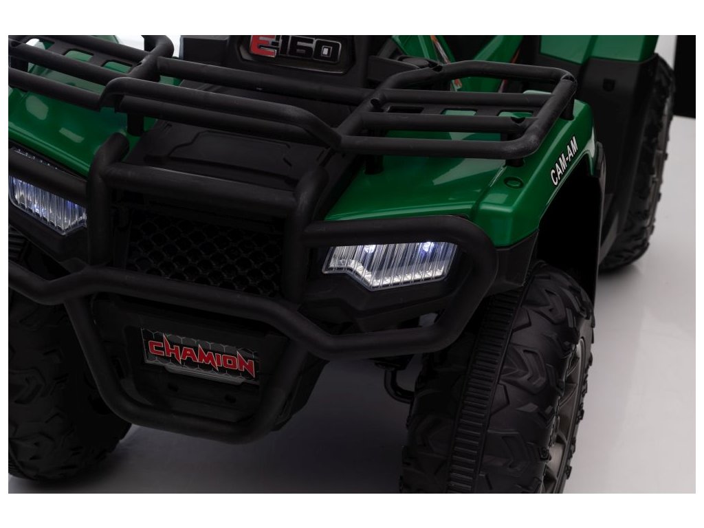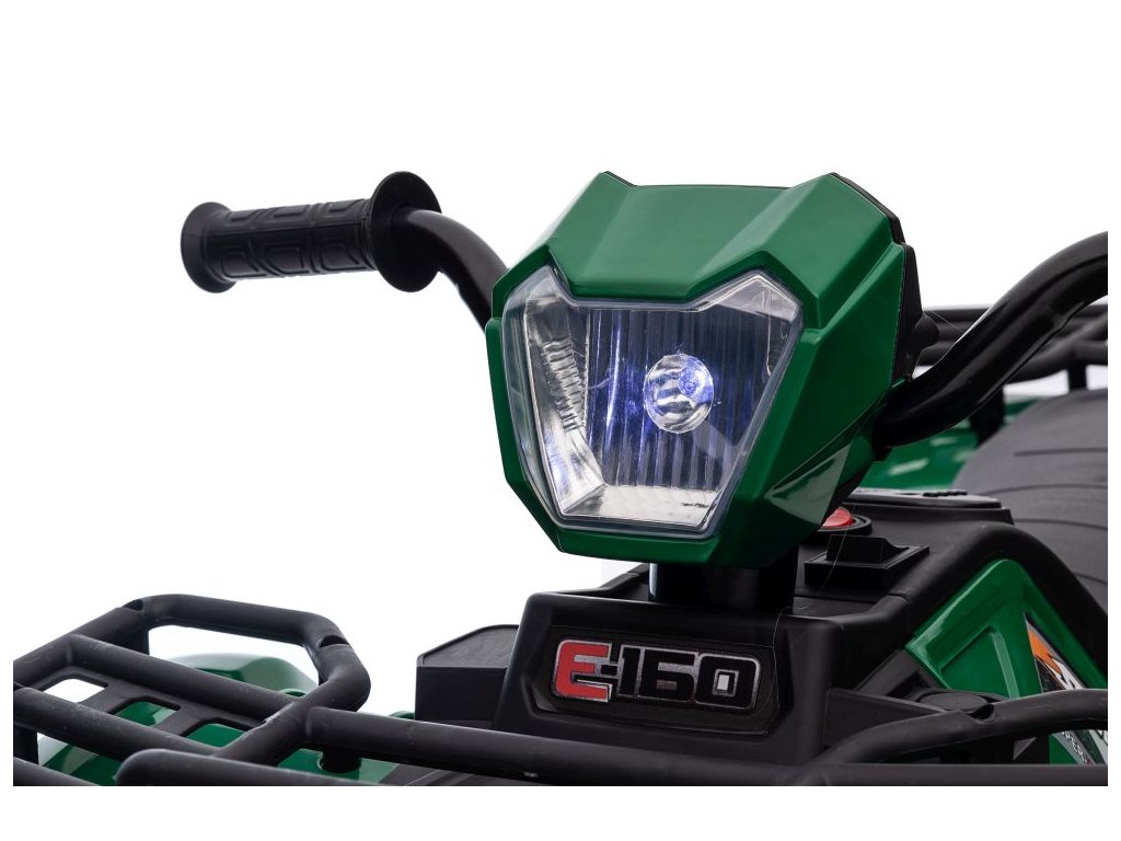 Dětská elektrická čtyřkolka je vybavena motorem 2x45W a baterií o výkonu 12V 4,5Ah. Čtyřkolka má zabudovaný hudební panel s MP3 a USB, přední LED světla. Čtyřkolka je vybavena plastovým sedadlem a plastovými koly.