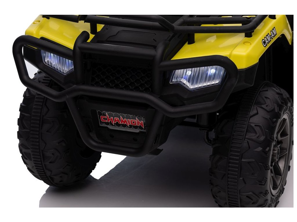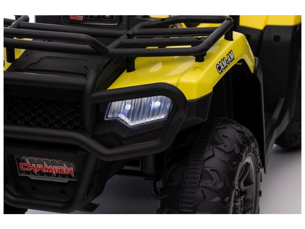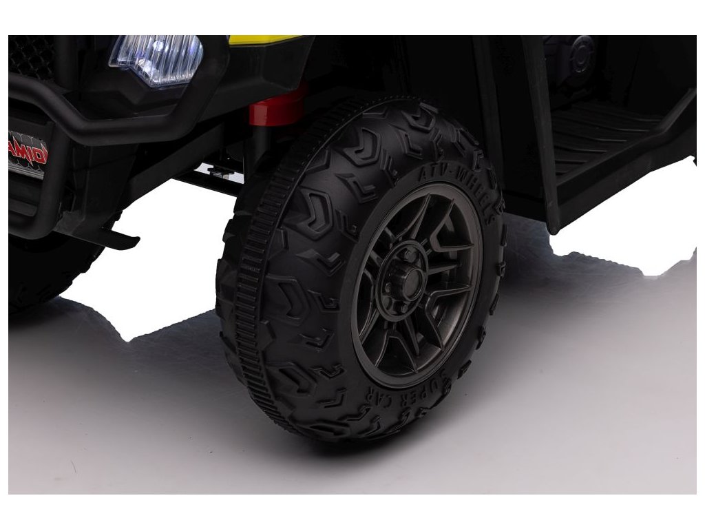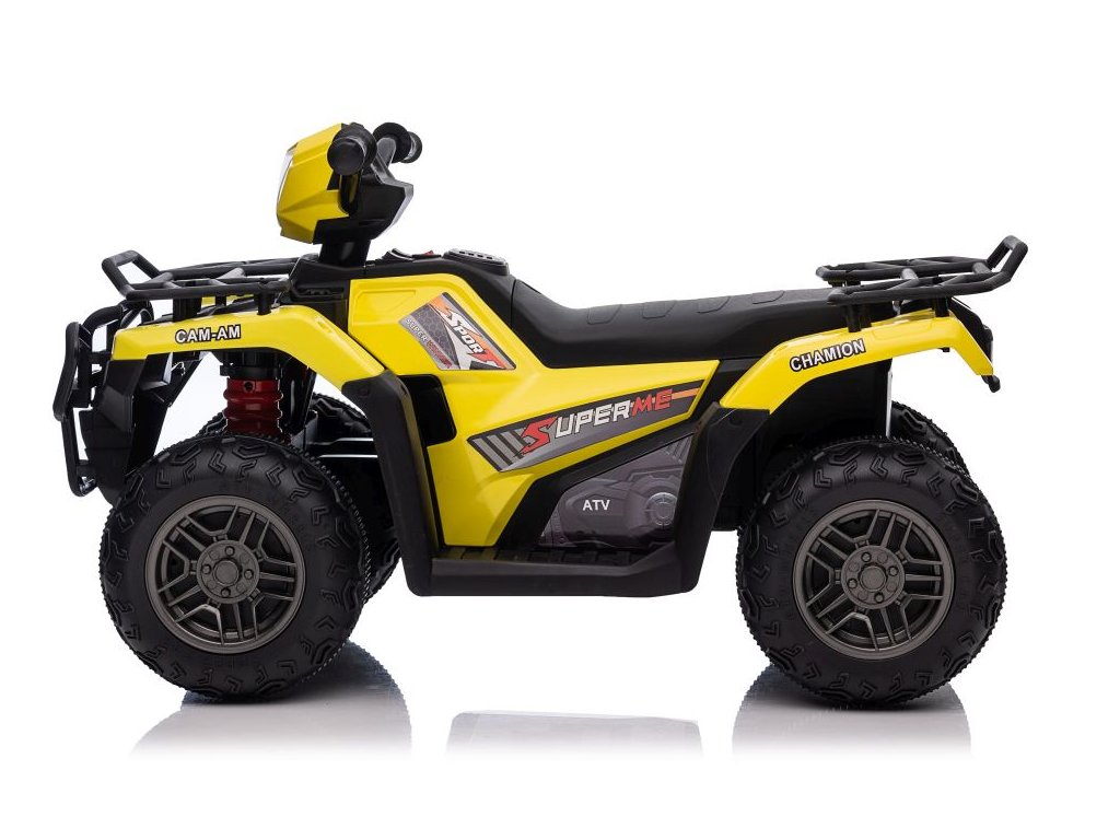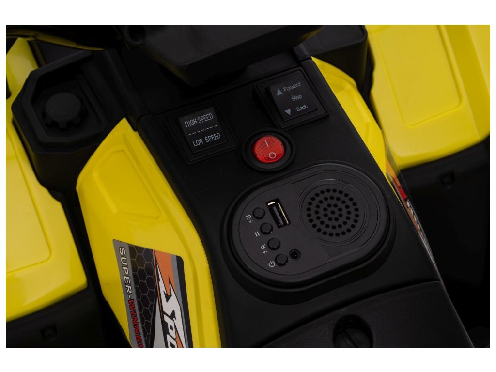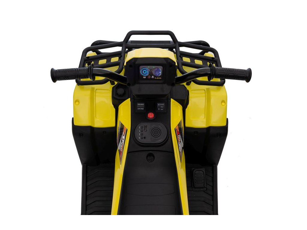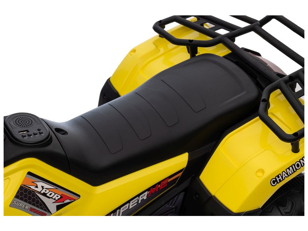 Dětská elektrická čtyřkolka je vybavena motorem 2x45W a baterií o výkonu 12V 4,5Ah. Čtyřkolka má zabudovaný hudební panel s MP3 a USB, přední LED světla. Čtyřkolka je vybavena plastovým sedadlem a plastovými koly.