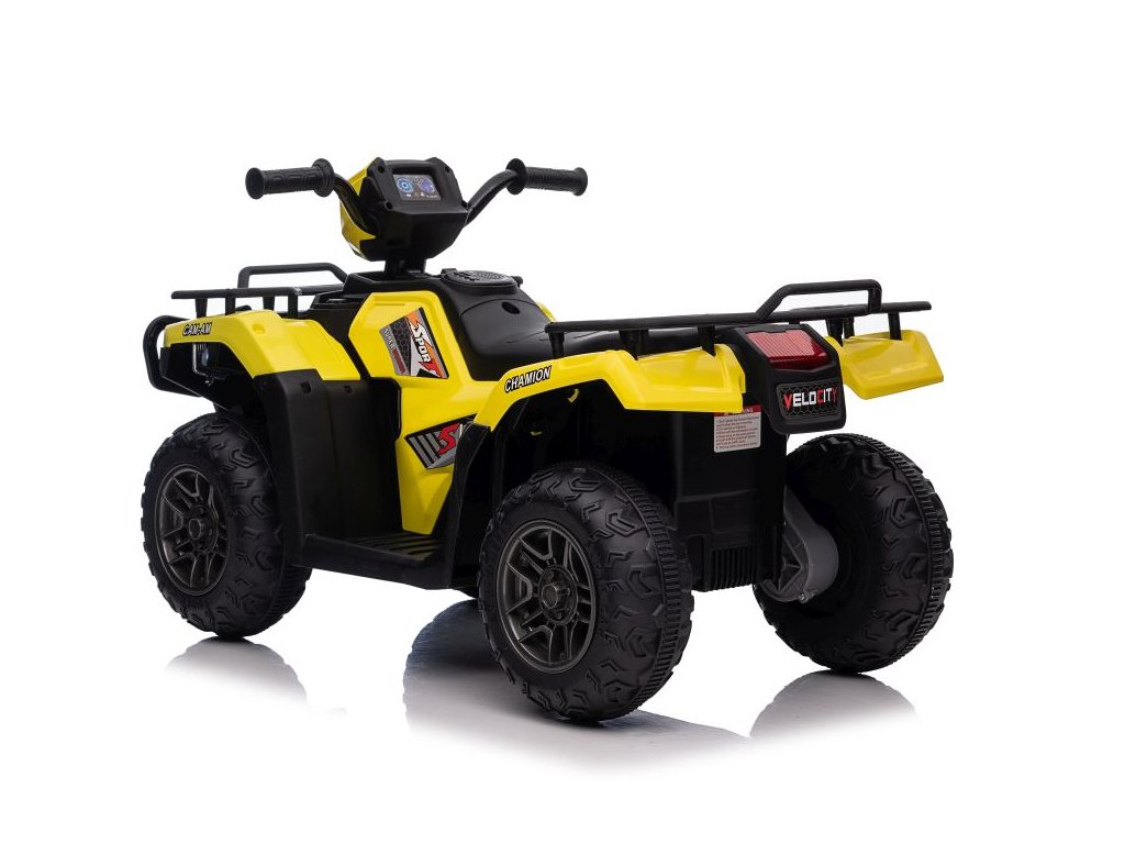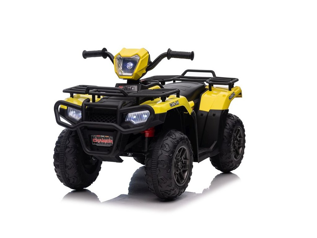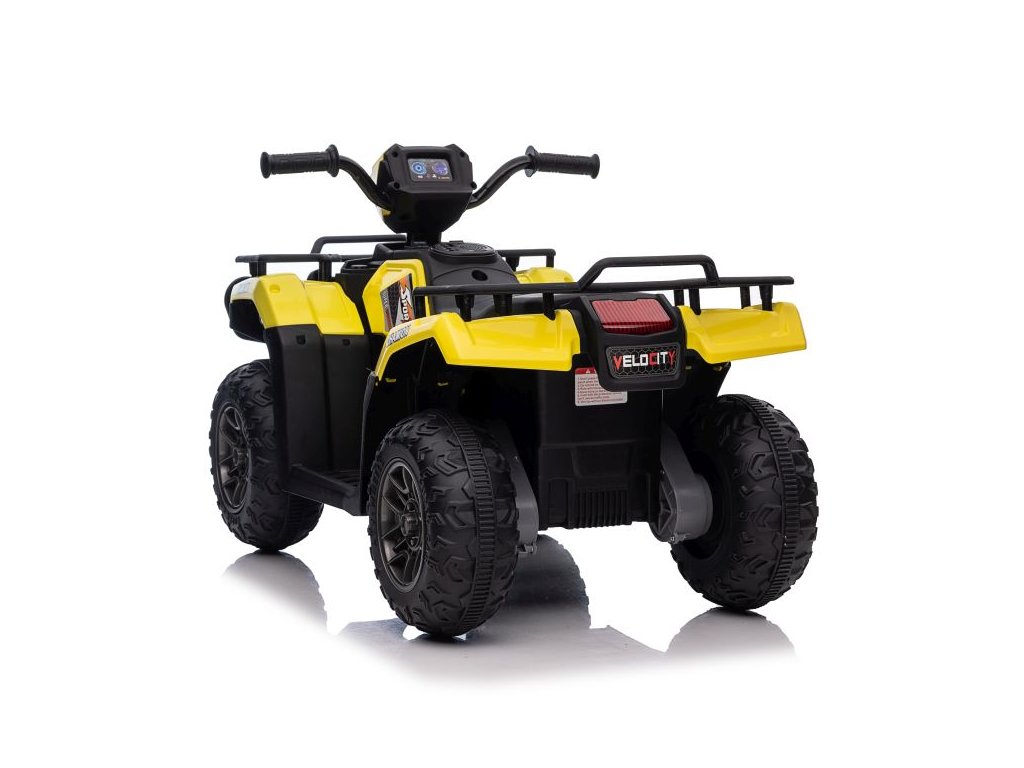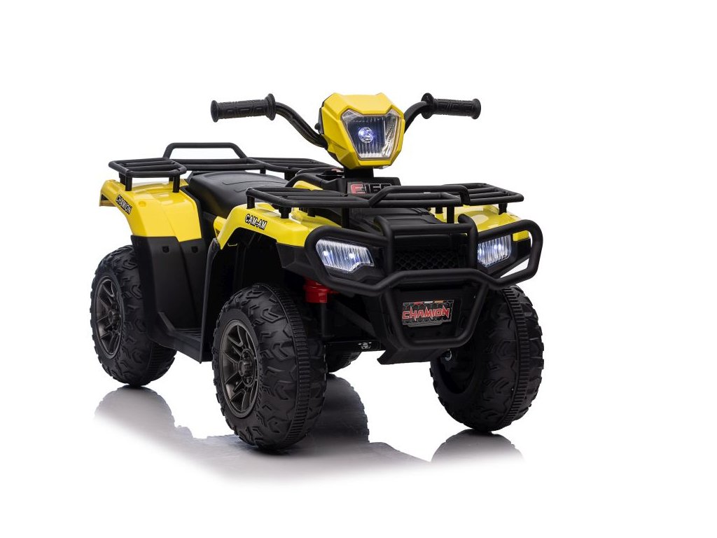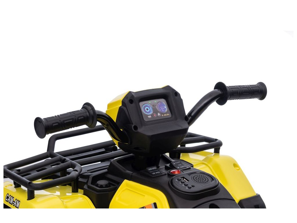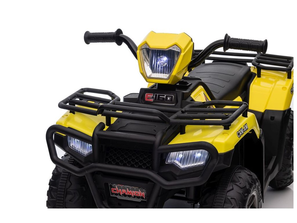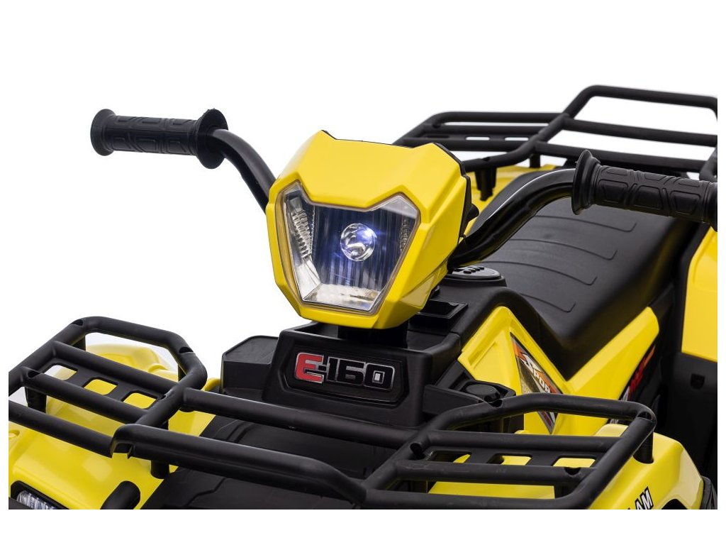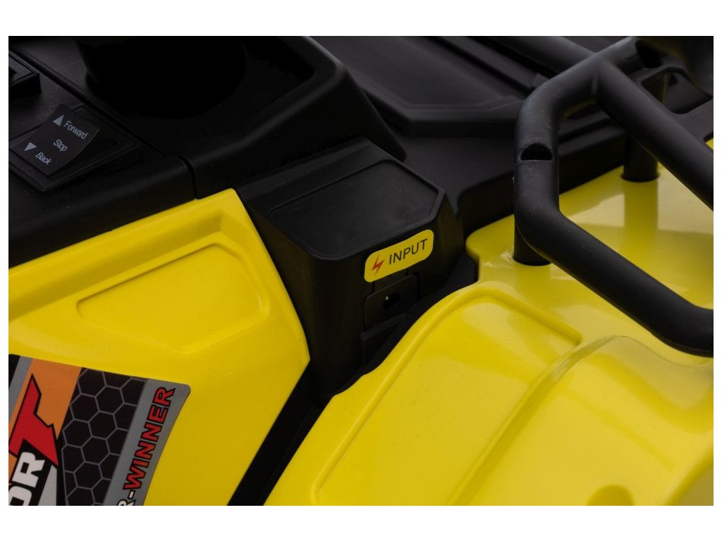Dětská elektrická čtyřkolka je vybavena motorem 2x45W a baterií o výkonu 12V 4,5Ah. Čtyřkolka má zabudovaný hudební panel s MP3 a USB, přední LED světla. Čtyřkolka je vybavena plastovým sedadlem a plastovými koly.