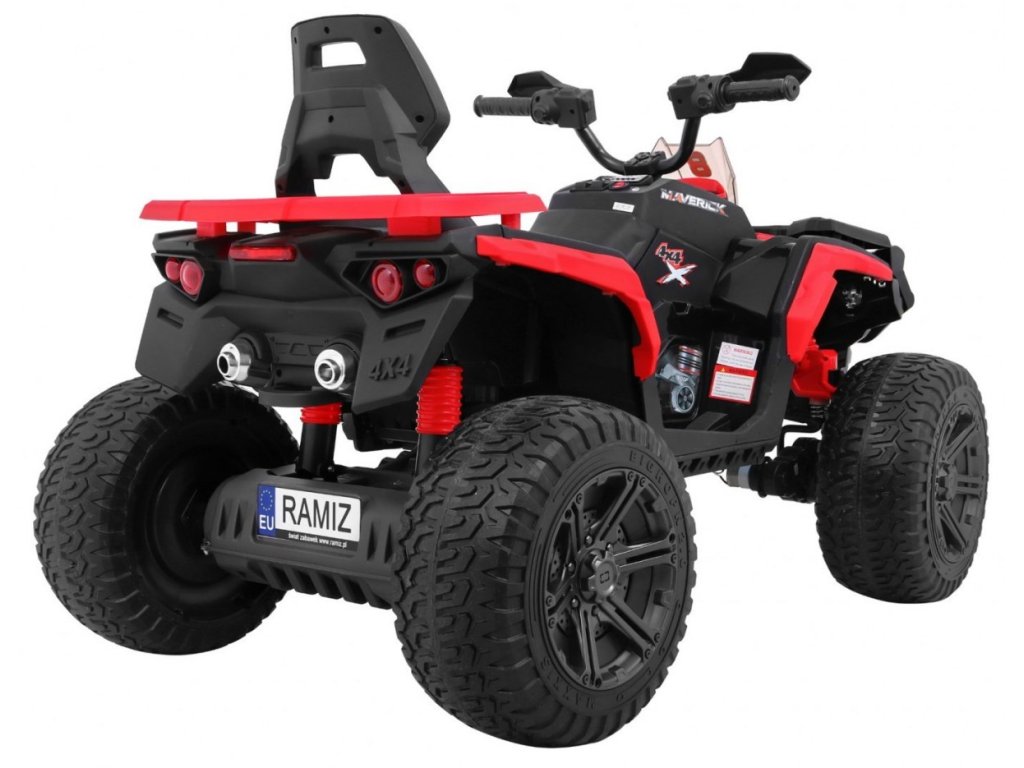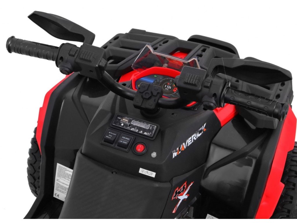Elektrická čtyřkolka Maverick je díky robustní konstrukce, mohutným kolům z měkké pěny EVA, náhonem 4x4 vhodná pro řádění v terénu. Jízda vpřed i vzad, 2 rychlostní stupně (pomalu / rychle). Čtyřkolka Maverick je vybavená LED osvětlením a mimo jiné i řadou senzačních zvukových efektů jako zvuk motoru, hudební panel s veselými písněmi. Pro rodiče je na autíčku úchyt pro transport. Novinkou u autíčka je volný start, což zaručuje plynulý rozjezd vozidla. To je velice důležité, aby děti neměly strach.