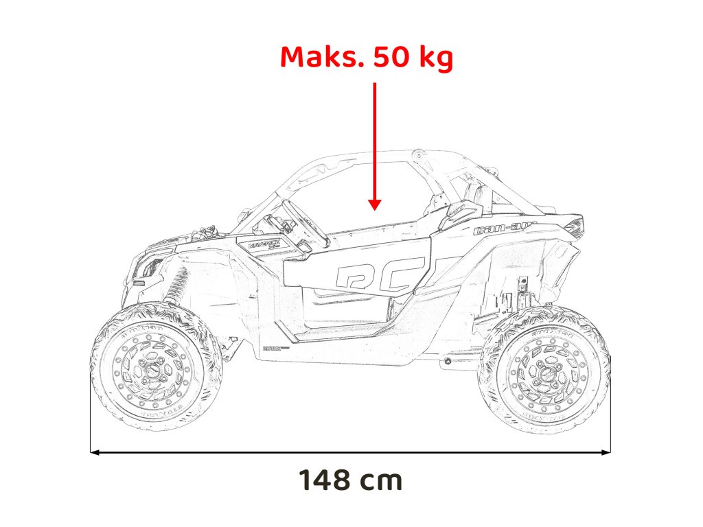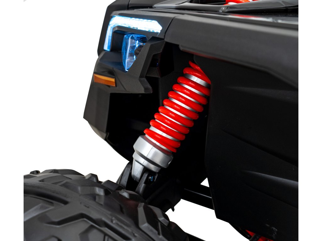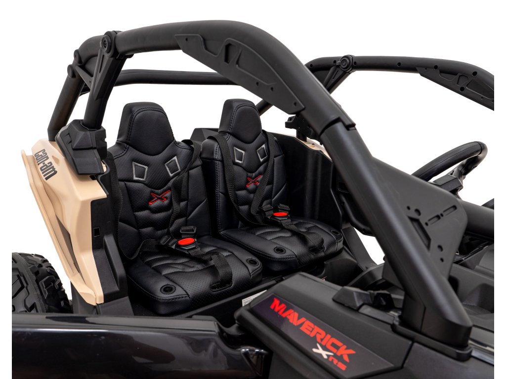 Terénní dvoumístná BUGGY Maverick Can-am je absolutní letošní novinkou pro každého malého řidiče. Sportovní vozidlo pro dvě osoby s pohodlným koženým sedadlem a odpružením, které vás doveze kamkoli potřebujete. Pohon zajišťují 4 motory, tlumiče a měkká EVA pěnová kola umožní pohodlnou jízdu v terénu. Dvoumístný terénní vůz poháněný 4 x motorem (4 x 24V - 200W) + baterie (2 x 24V/7Ah) + dálkový ovladač s 2,4 HGz.