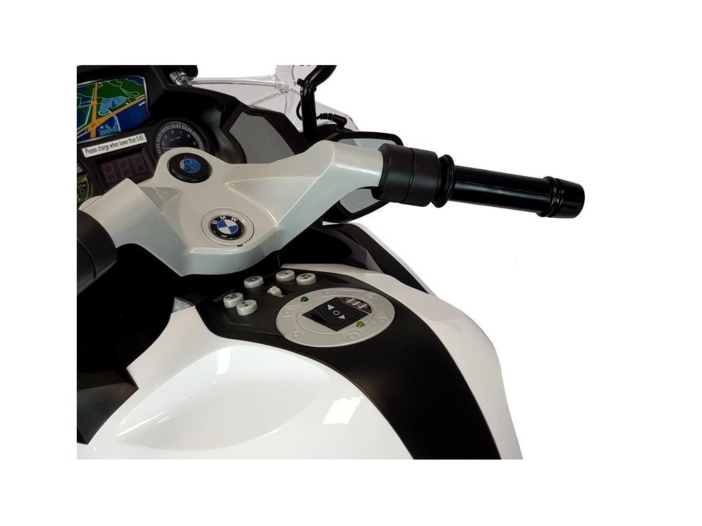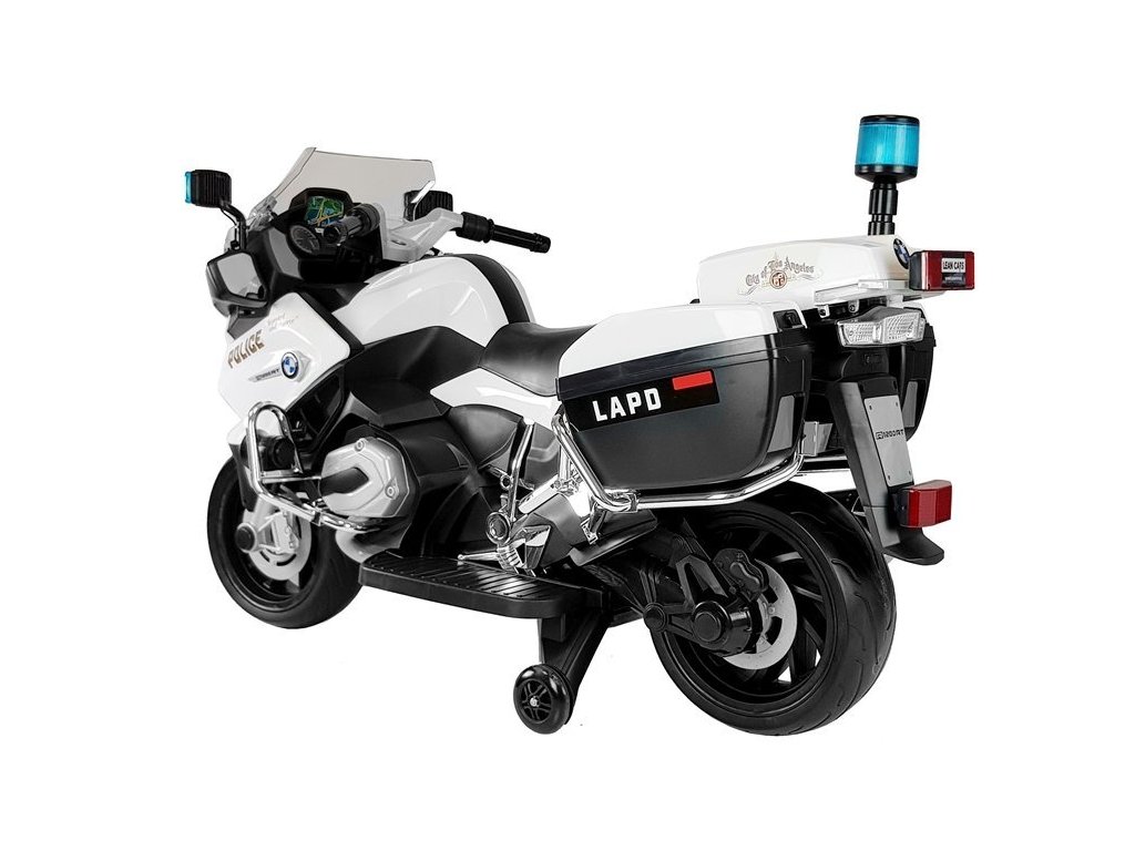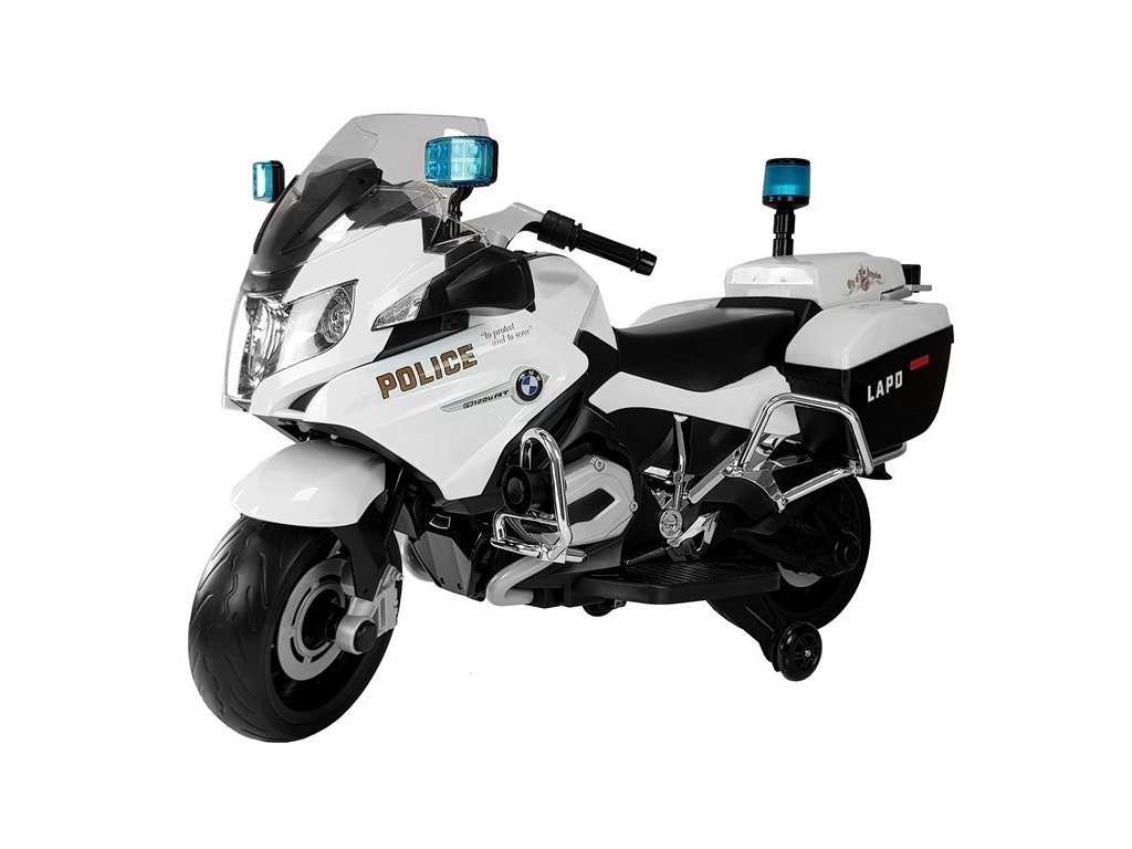 Dětská elektrická motorka BMW v designu Policie se startuje pomocí klíče. Motorka má dva policejní majáky na řídítkách a jeden je umístěn v zadní části motorky. Motorka má zvukový panel s 5ti zvukovými tlačítky, které obsahují melodie, zvuky a sirénu. Součástí balení jsou pomocná kolečka.
