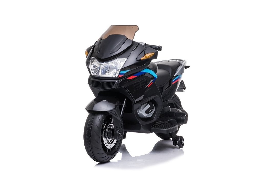 S dvěma silnými motory 45 W a 12V7 Ah gelovým akumulátorem dosahuje rychlosti 3–7 km/h, což je perfektní pro bezpečné a vzrušující projížďky. Malí jezdci si osvojí samostatné odhadování rychlosti a vzdálenosti, zatímco si užijí pocit svobody. Sportovní design s imitací chromových prvků a realistickými dekoracemi dodává motorce autentický vzhled. Karoserie z odolného ABS plastu zajišťuje dlouhou životnost. Pro maximální stabilitu a snadné ovládání jsou součástí praktická postranní kolečka, která pomohou dětem udržet rovnováhu.