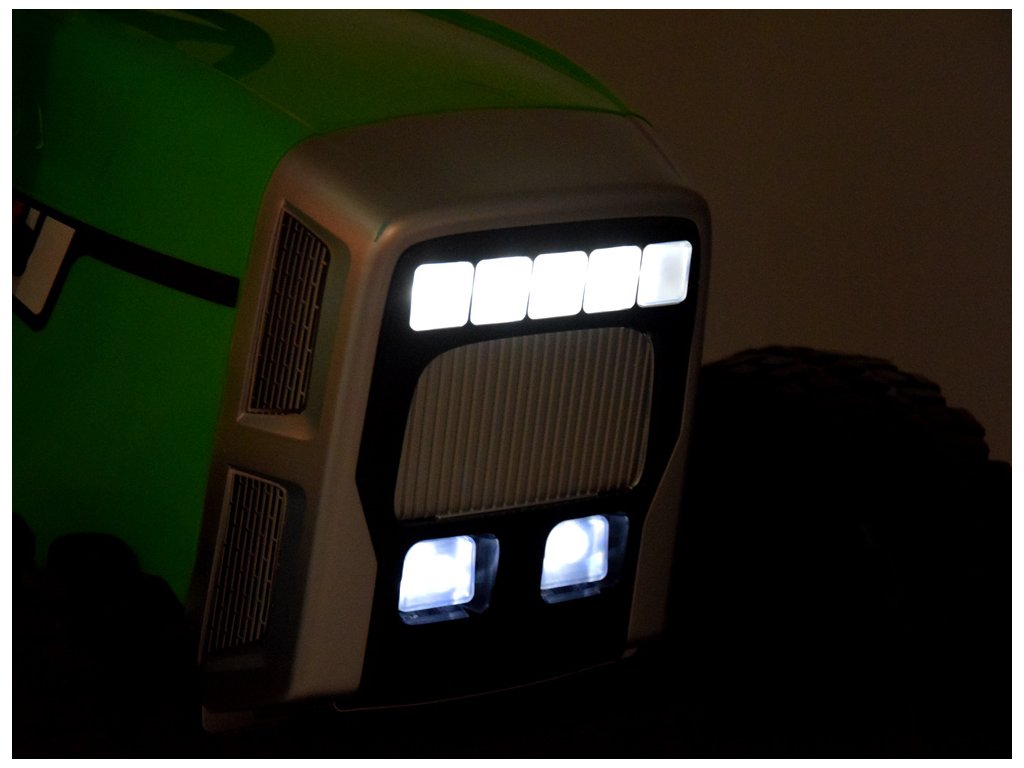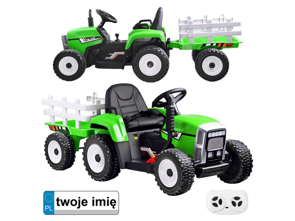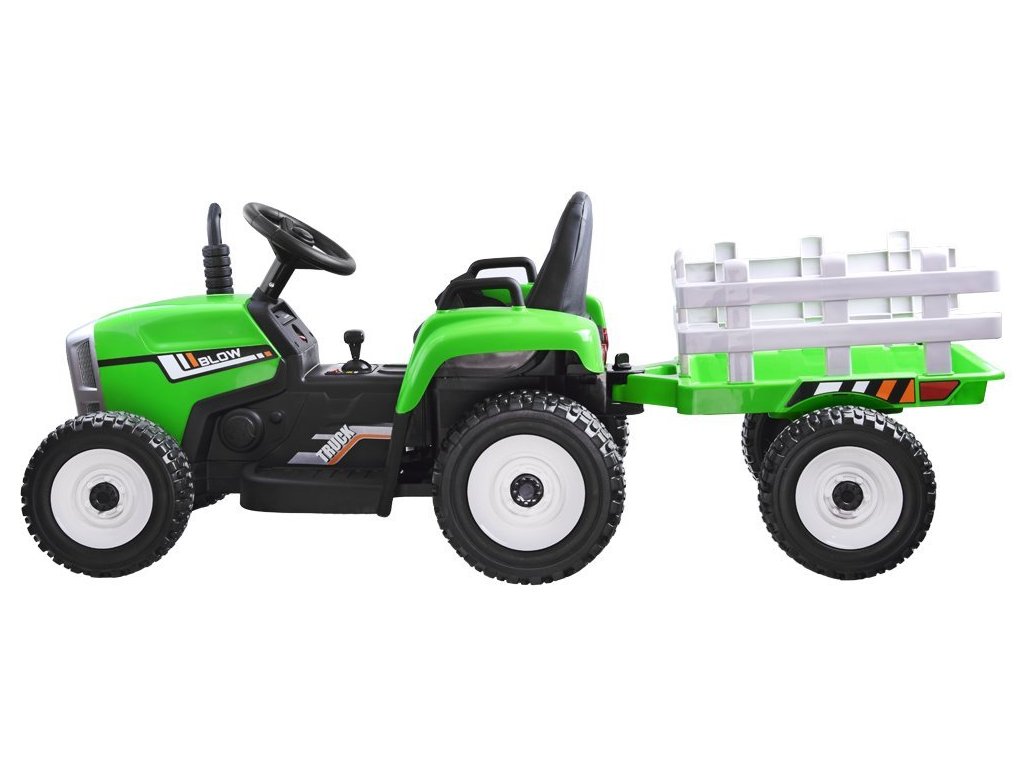 Fantastický traktor s přívěsem poskytne spoustu zábavy každému malému řidiči. Traktor se zvukovými a světelnými efekty a hudebním panelem se bude hodit na každou farmu. Traktor má pohodlné sedadlo potažené ekokůží, páku pro změnu převodů a směru jízdy a vypínač světel. Pomalý rozjezd v traktůrku zajistí pohodlné startování stroje. Dva výkonné motory a baterie zajistí, že se dostanete kamkoli.