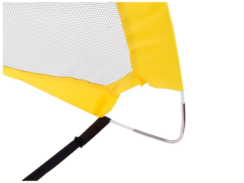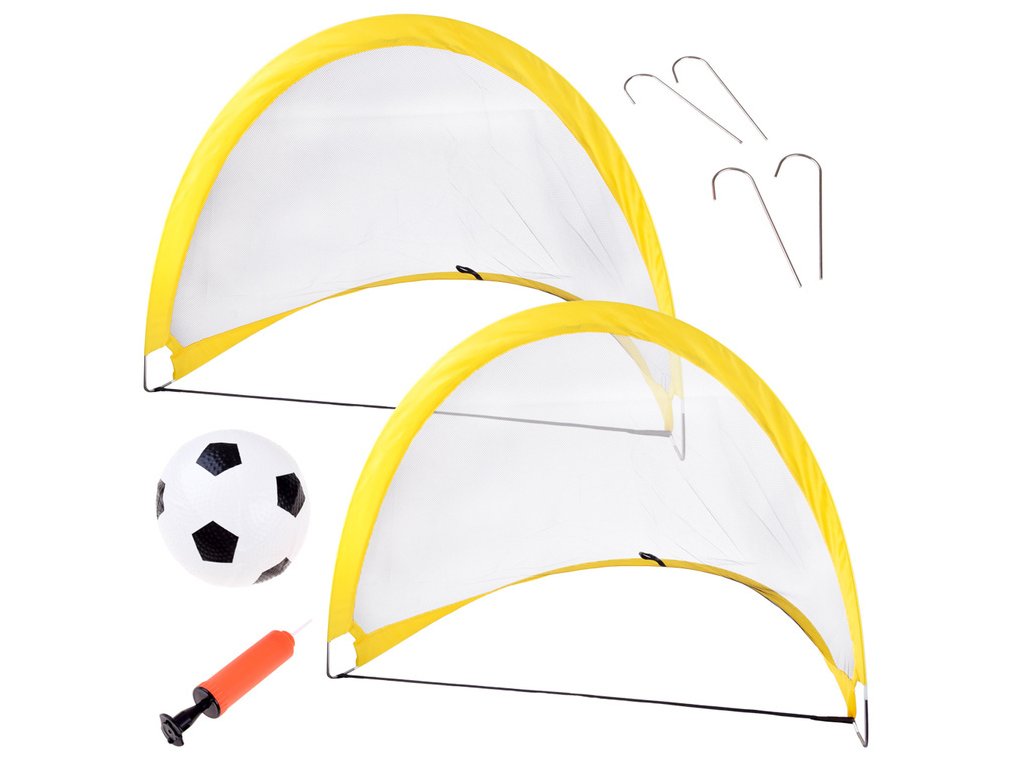 Každá sada obsahuje dvě pružné fotbalové branky v atraktivní žluté barvě s černou sítí, které se automaticky rozloží. S rozměry 117 x 84 x 84 cm poskytují dostatečný prostor pro přesné střely. Pro stabilitu jsou součástí balení i 4 kolíky k upevnění branek k zemi. Navíc obdržíte nafukovací míč o průměru 18 cm a praktickou pumpičku, takže máte vše potřebné k okamžité hře. Celá sada je úhledně zabalena v praktickém pouzdře na zip, což zajišťuje snadnou přenosnost a skladování.