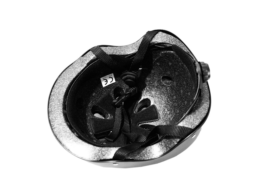 Skelet vyrobený z pevných a odolných materiálů chrání oblast hlavy proti případnému nárazu způsobeného pádem.