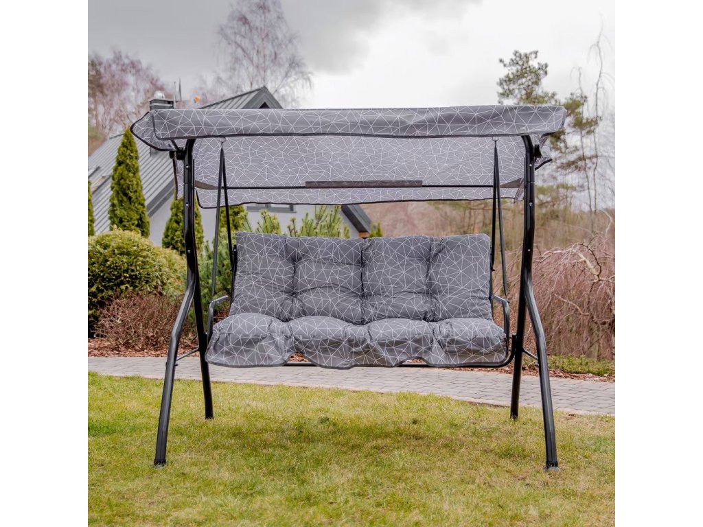 Třimístná zahradní houpačka Luna / Kate se sedáky a stříškou s různými motivy. Pevná, silná kontrukce houpačky je lakovaná práškovou metodou. Tato metoda činí rám odolným vůči vnějším faktorům a korozi. Nohy houpačky jsou zajištěny chodidly – stopky pro lepší stabilitu.