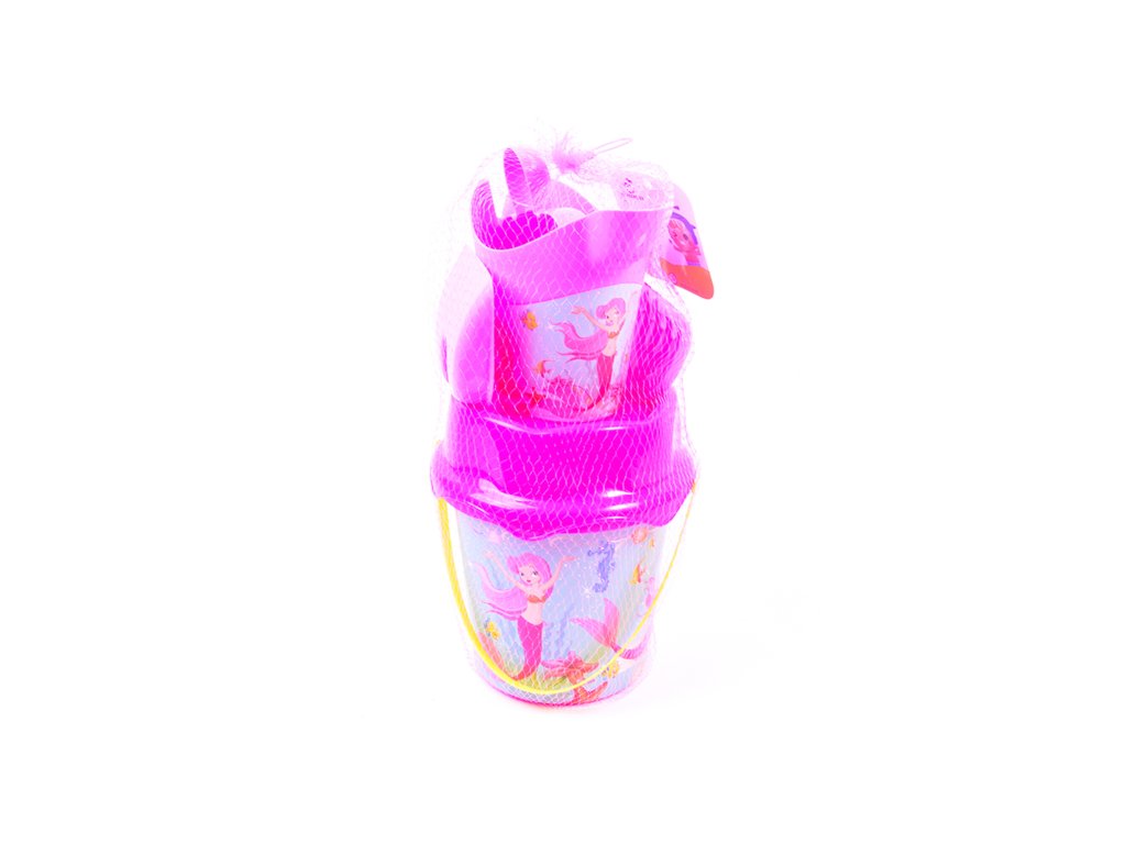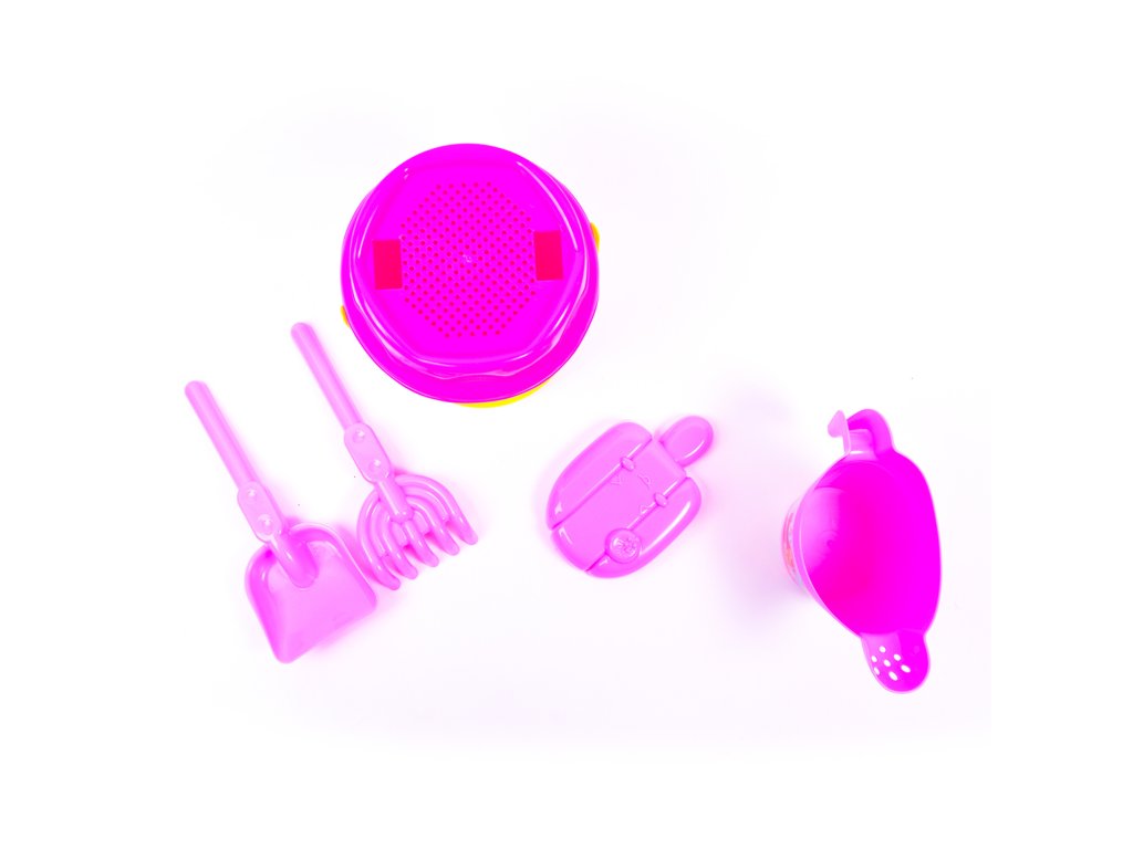 Sada obsahuje: Sítko, lopatku, hrábě, kyblík, konvičku a bábovičku.