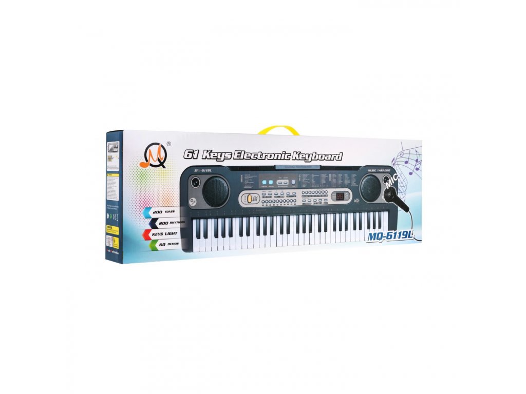 Dětský keyboard je pro všechny děti milující hudbu. Klavír má 61 kláves, displej a stojan na noty. Pro ještě větší zážitek je součástí mikrofon. Keyboard má 60 nahraných skladeb, díky čemuž muže dítě hrát a zároveň zpívat.