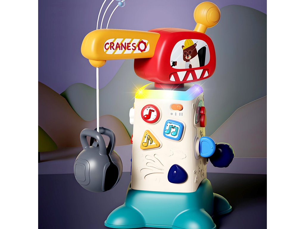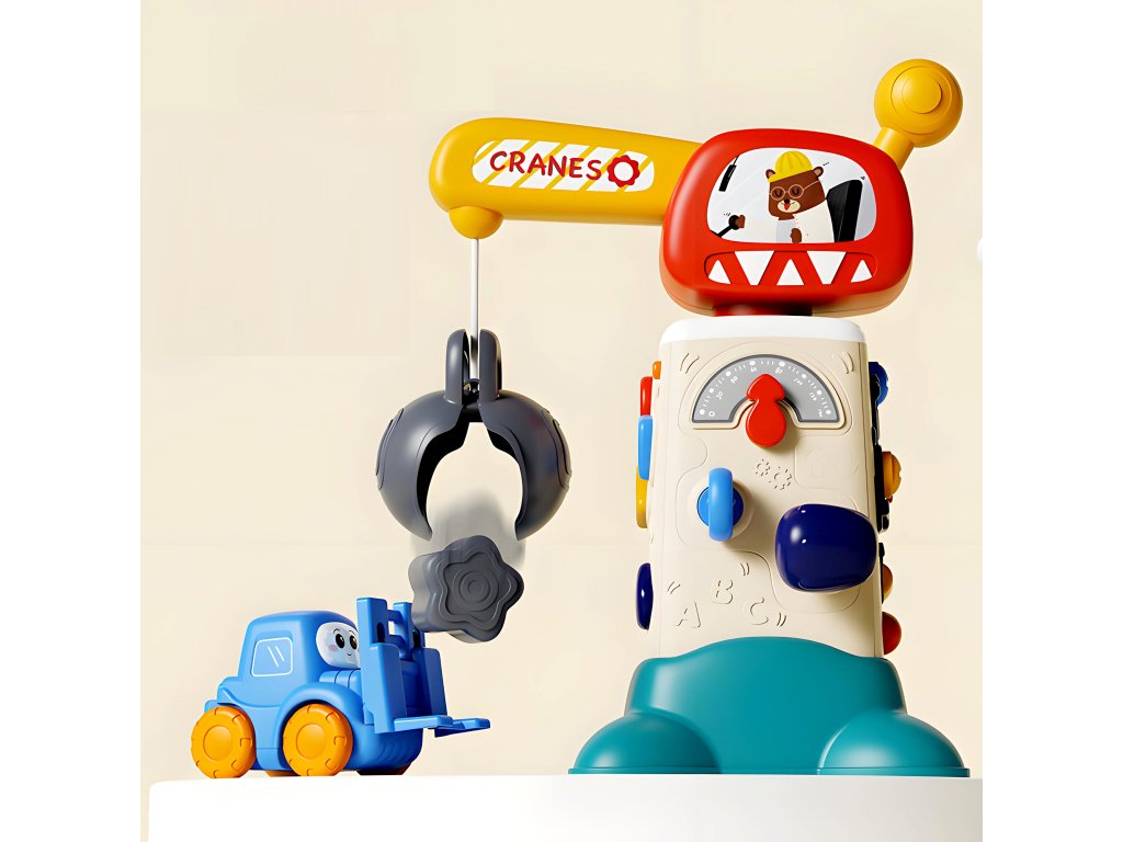 Interaktivní jeřáb je vybaven mnoha funkcemi, které podporují rozvoj dětí. Každá ze čtyř stran jeřábu nabízí jedinečné aktivity, které stimulují různé smysly a dovednosti.