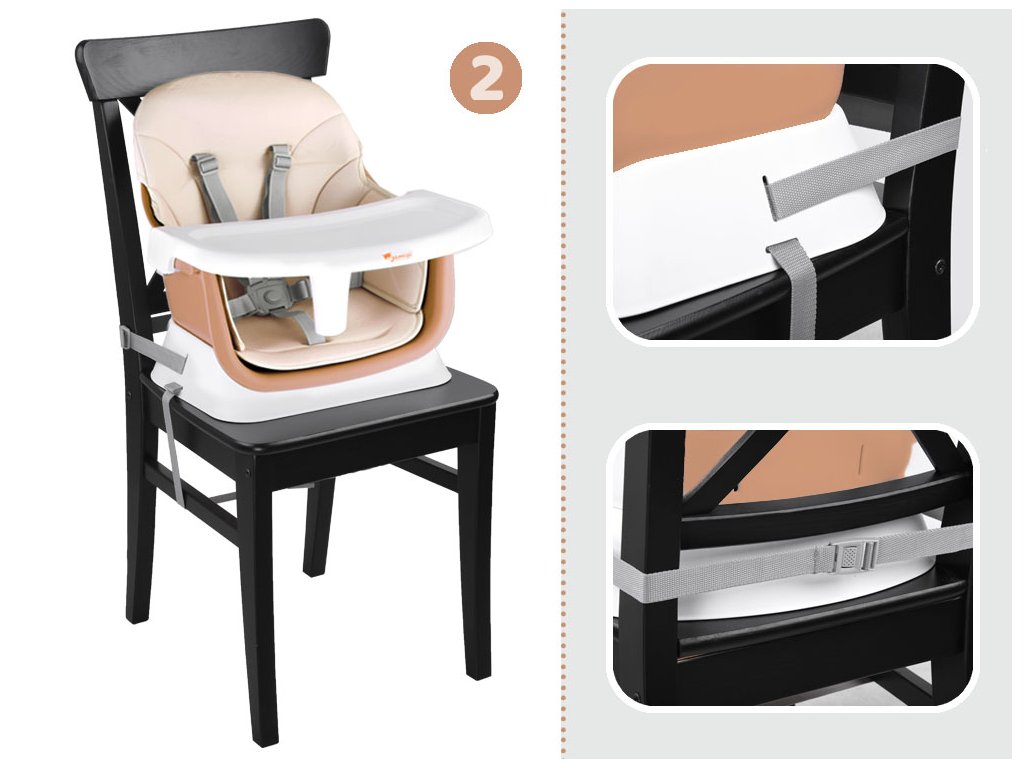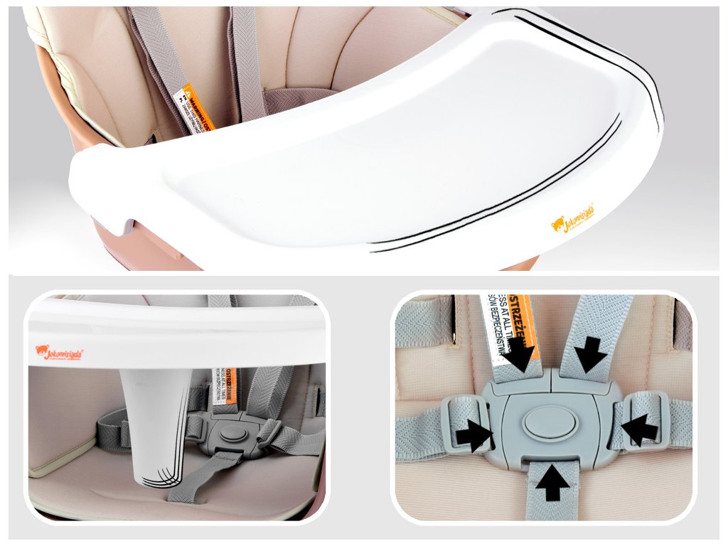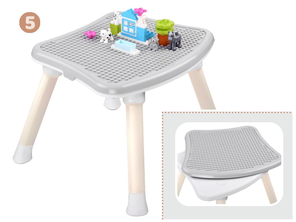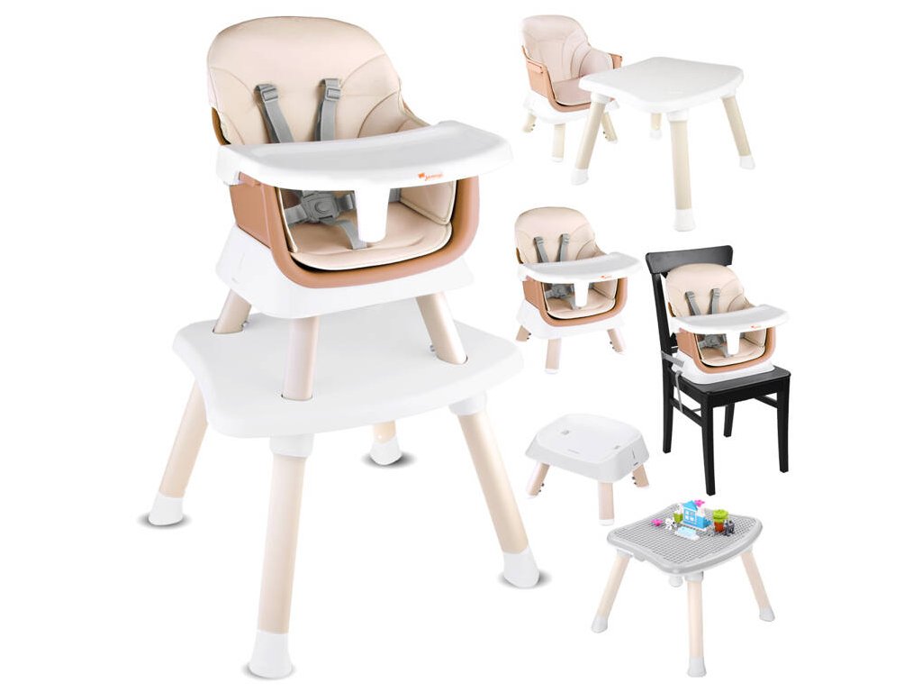 Dětská jídelní židlička 6v1 je ideální pro děti od 6 měsíců, které začaly samy sedět. Skládací židlička v moderním stylu se bude hodit do každého dětského, obývacího pokoje nebo kuchyně. Díky své možnosti použití v různých variantách se hodí jak k jídelnímu stolu, tak do dětského koutku na hraní. Pohodlné, správně profilované sedadlo s pětibodovými bezpečnostními pásy a zámkem proti sklouznutí ze židle. Čalounění použité k čalounění sedačky je prodyšné a ze snadno čistitelného materiálu, který je důležitý pro udržení čistoty nábytku. Židlička má vyjímatelný, snadno čistitelnou plochu ke krmení. Nohy židle mají protiskluzové podložky. Multifunkční židlička poroste s dítětem a snadno se přizpůsobí požadovaným potřebám v dané situaci.