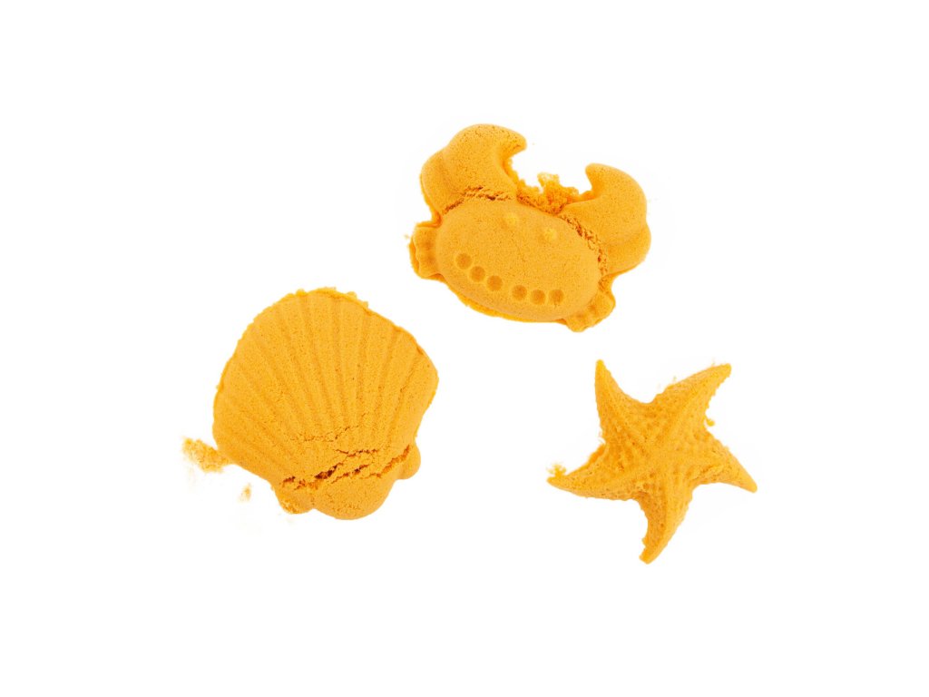 Kinetický písek je hebký, měkký, a velice příjemný na dotek. Je velice dobře tvarovatelný a pokud je stlačen, drží pevně svůj tvar, jako mokrý písek.