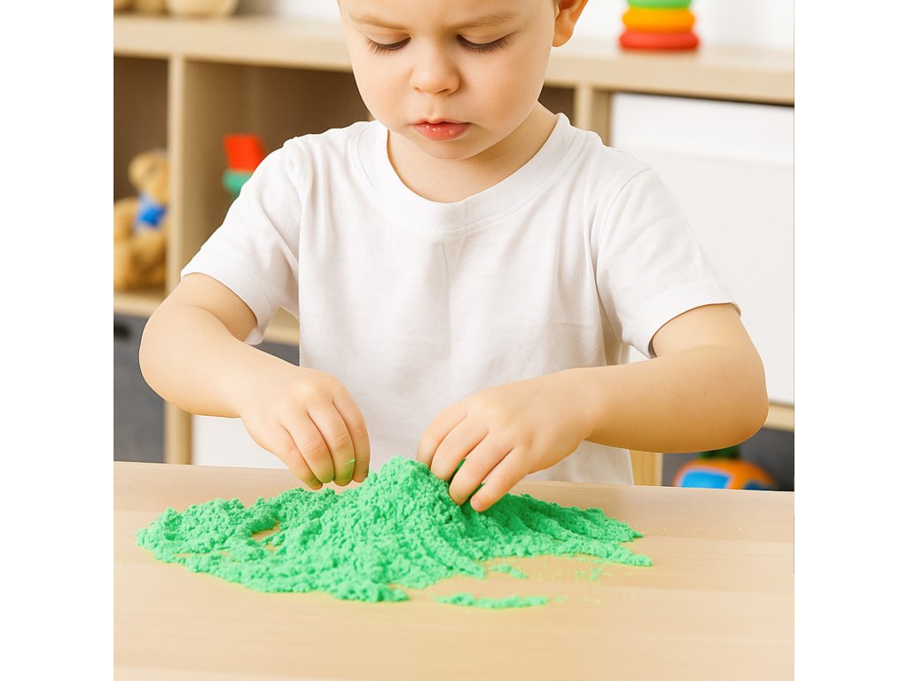 Kinetický písek spojuje vlastnosti písku a unikátní patentové technologie, nikdy nevysychá a neztrácí postupem času své vlastnosti.